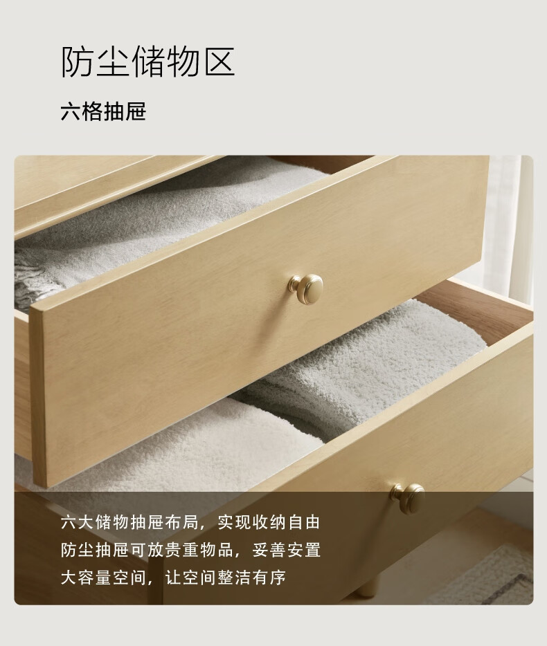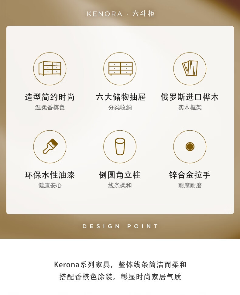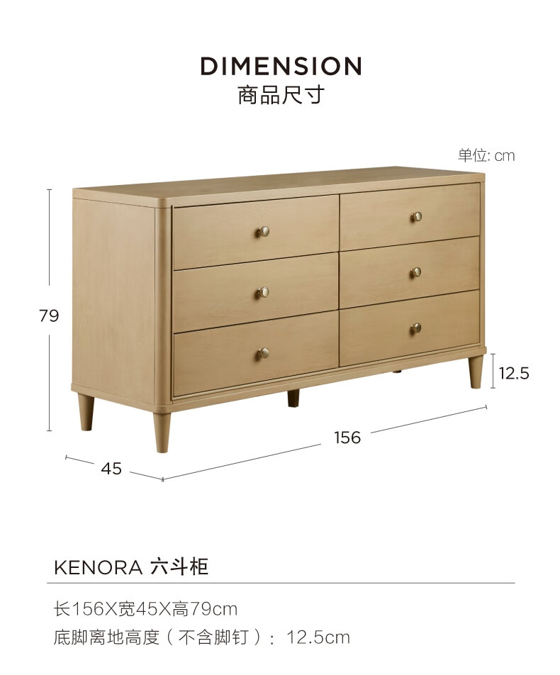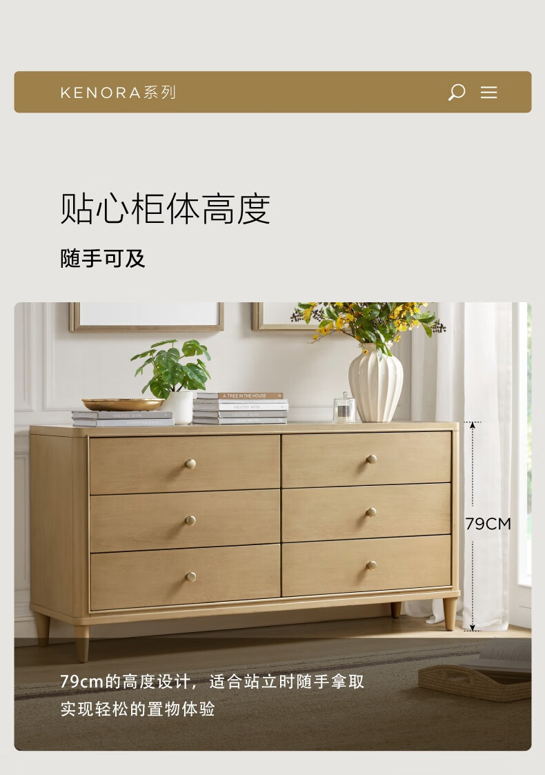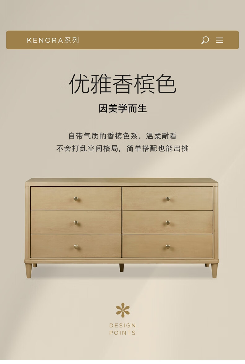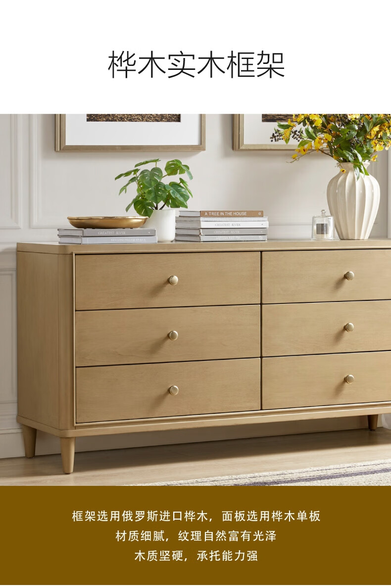 Harbor House【政府补贴】美式轻奢卧室六斗柜简约客厅典雅储物柜子整装收纳柜 Kenora 六斗柜 香槟色 长1560X宽450X高790mm