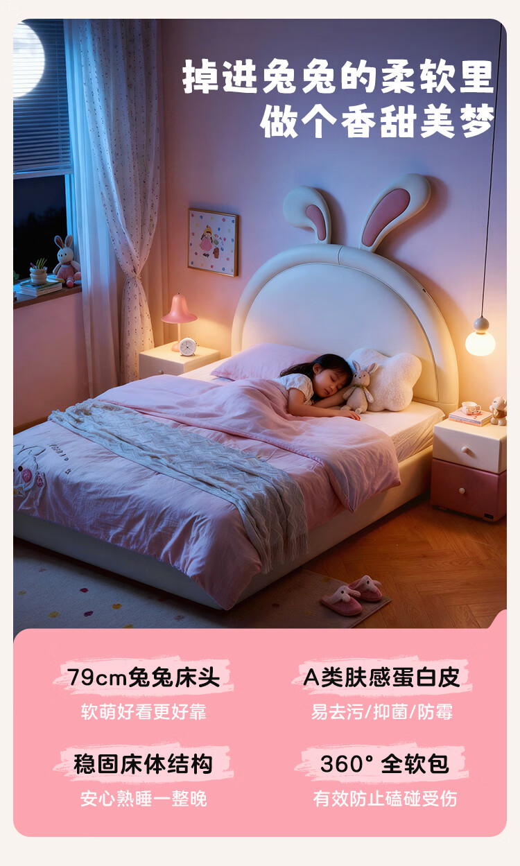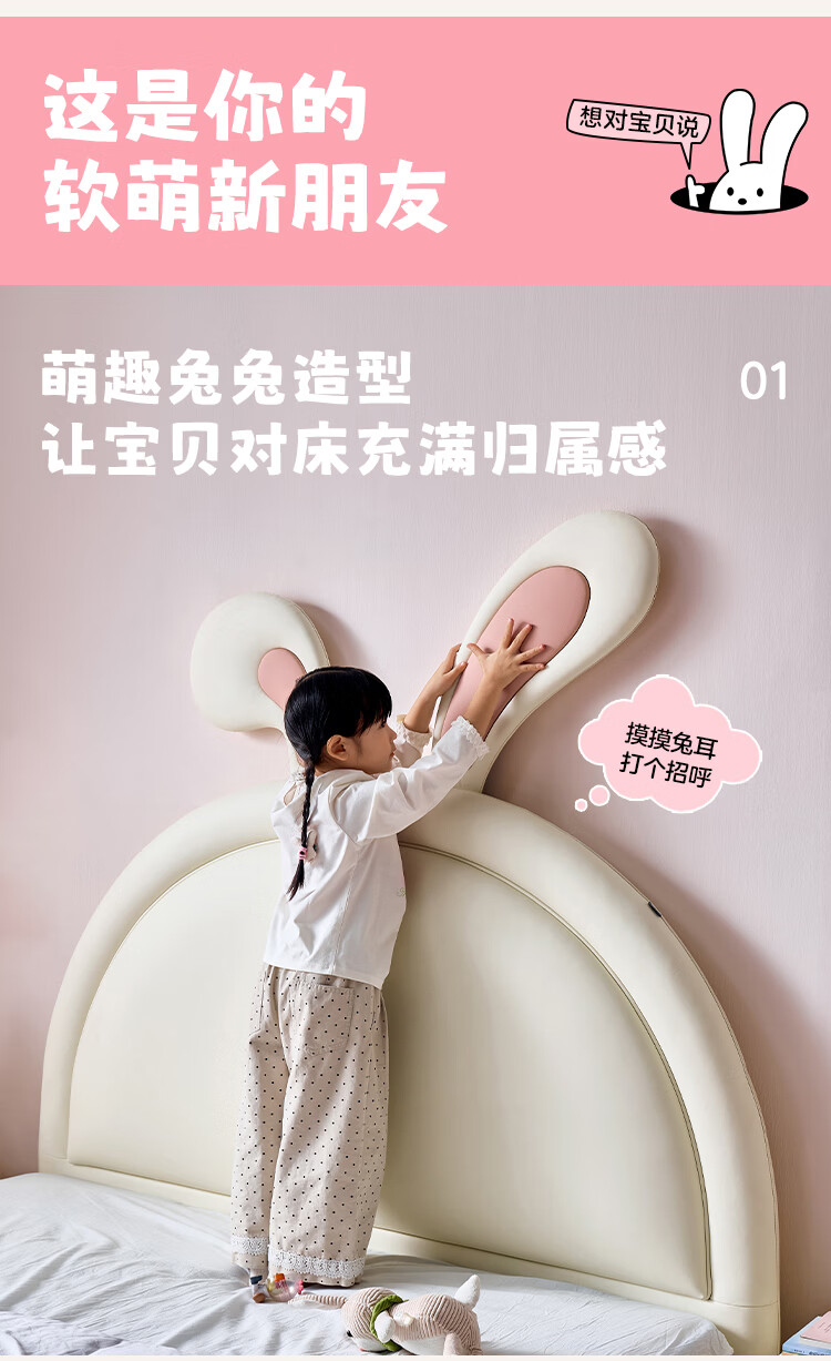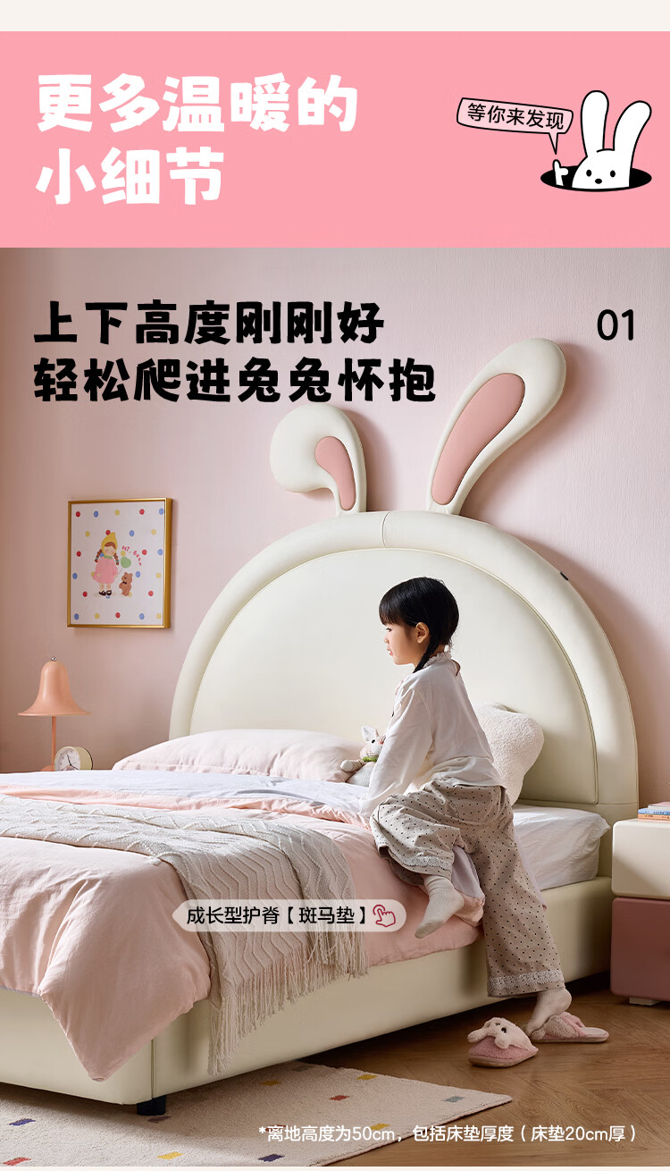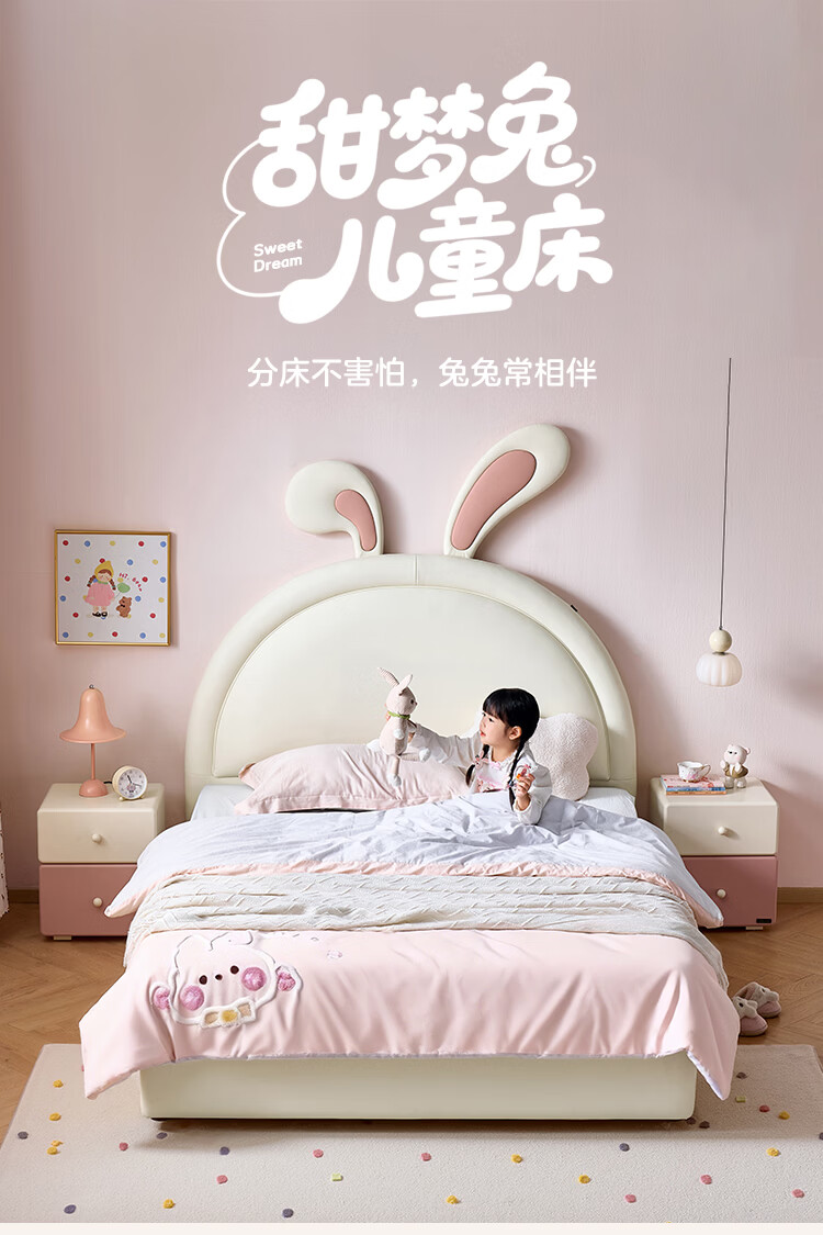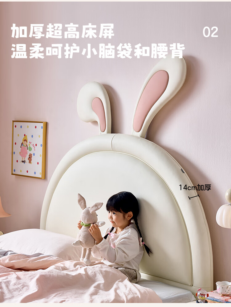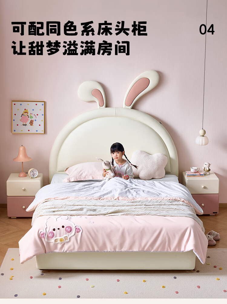 全友家居现代简约2026新款儿童床女孩公主床儿童房卡通兔子软包床家用 【米白丨A类肤感蛋白皮】 1.5米x2.0米 单床+床垫