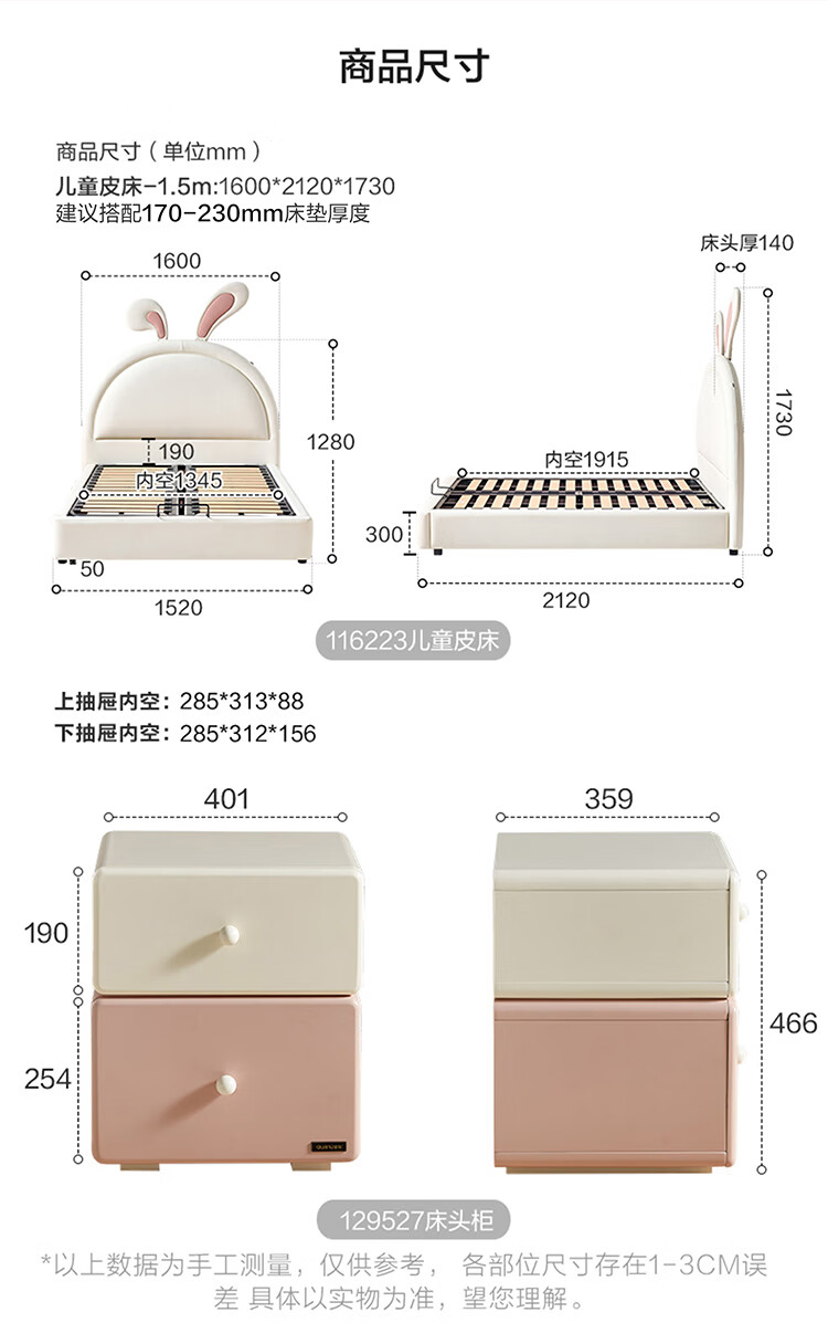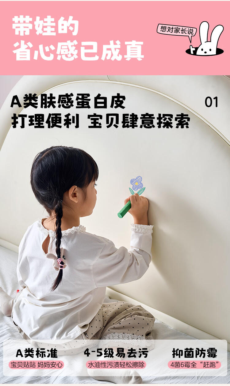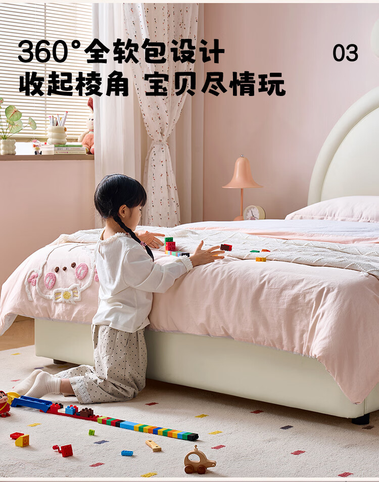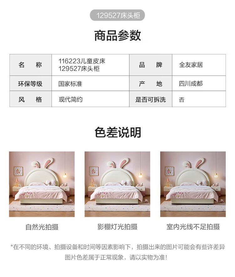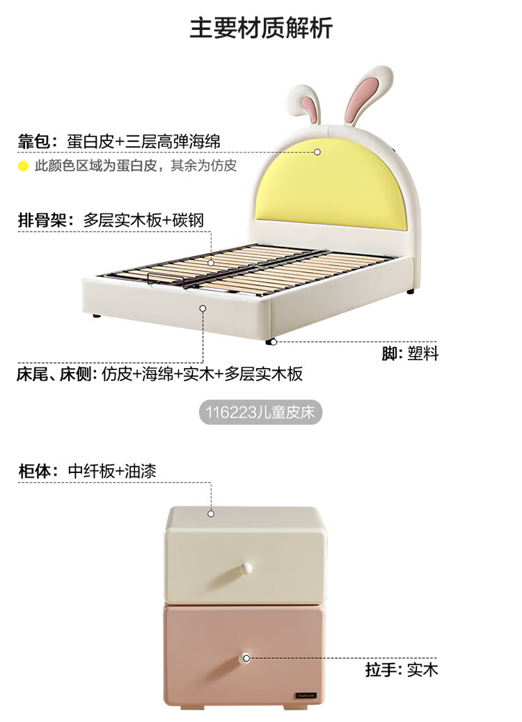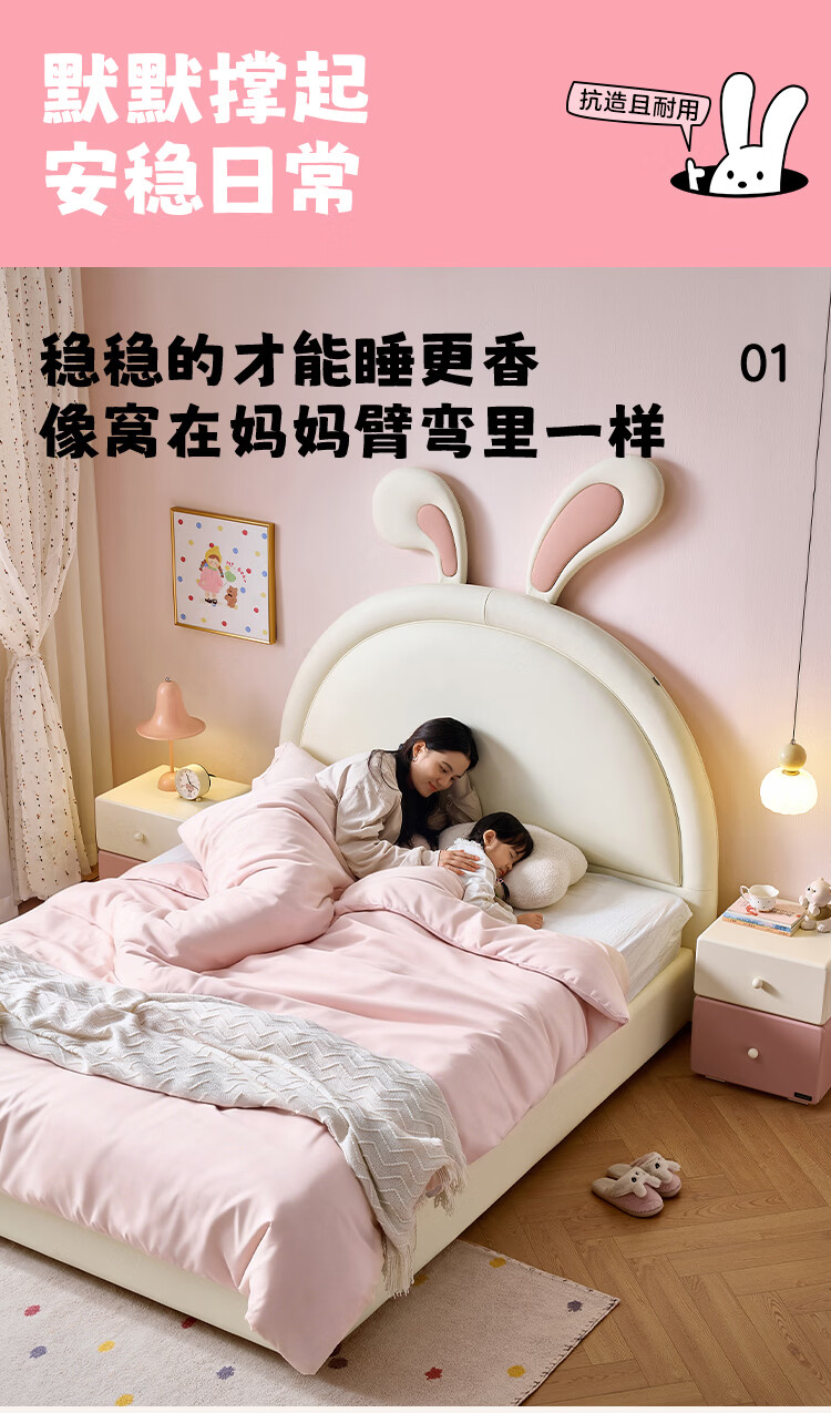 全友家居现代简约2026新款儿童床女孩公主床儿童房卡通兔子软包床家用 【米白丨A类肤感蛋白皮】 1.5米x2.0米 单床+床垫