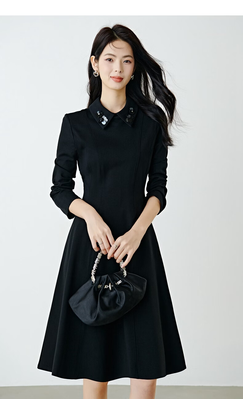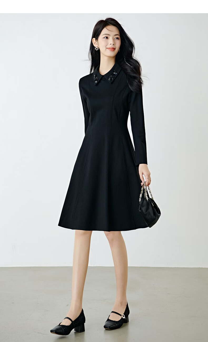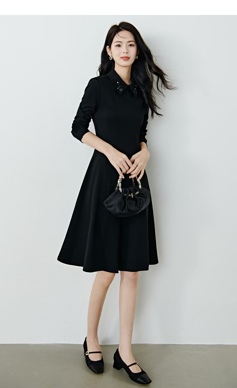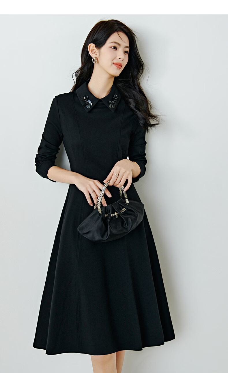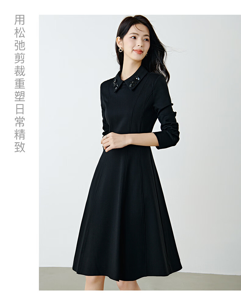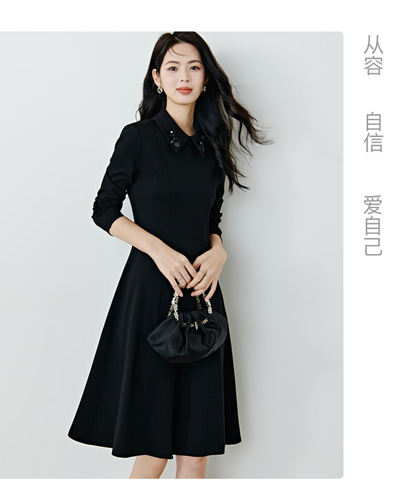 晚白【新品】2026春款时尚不易皱免烫礼服裙子修身显瘦职场通勤连衣裙 黑色 XL