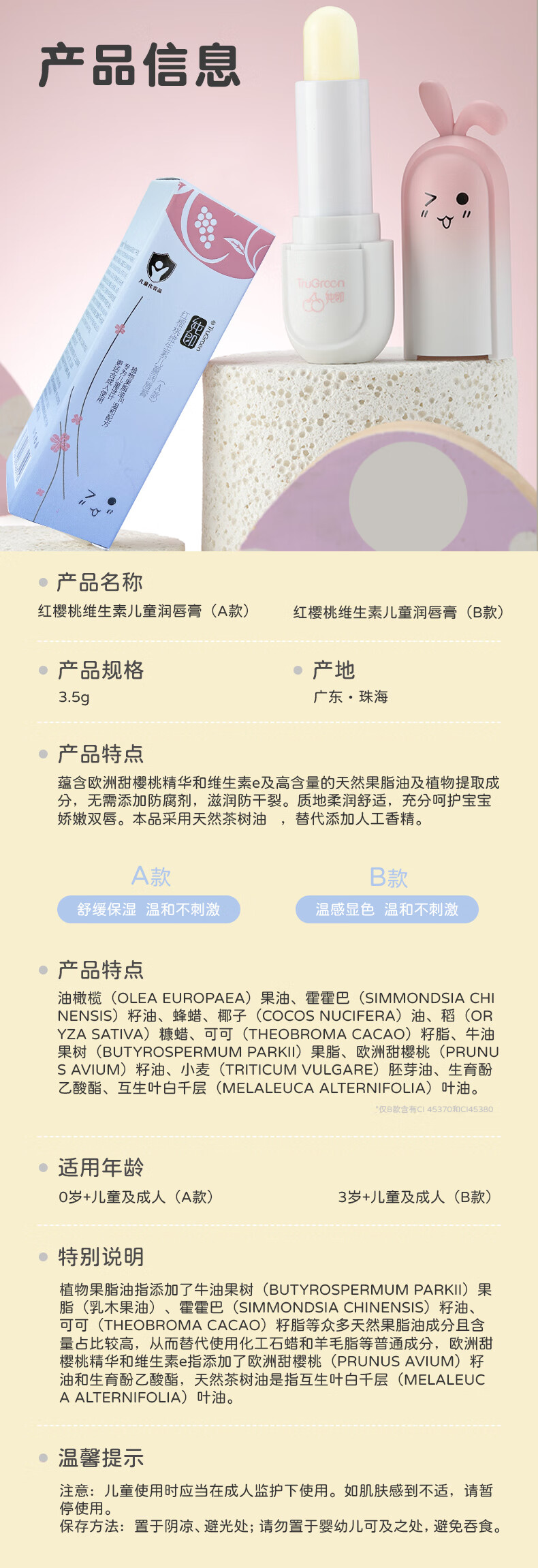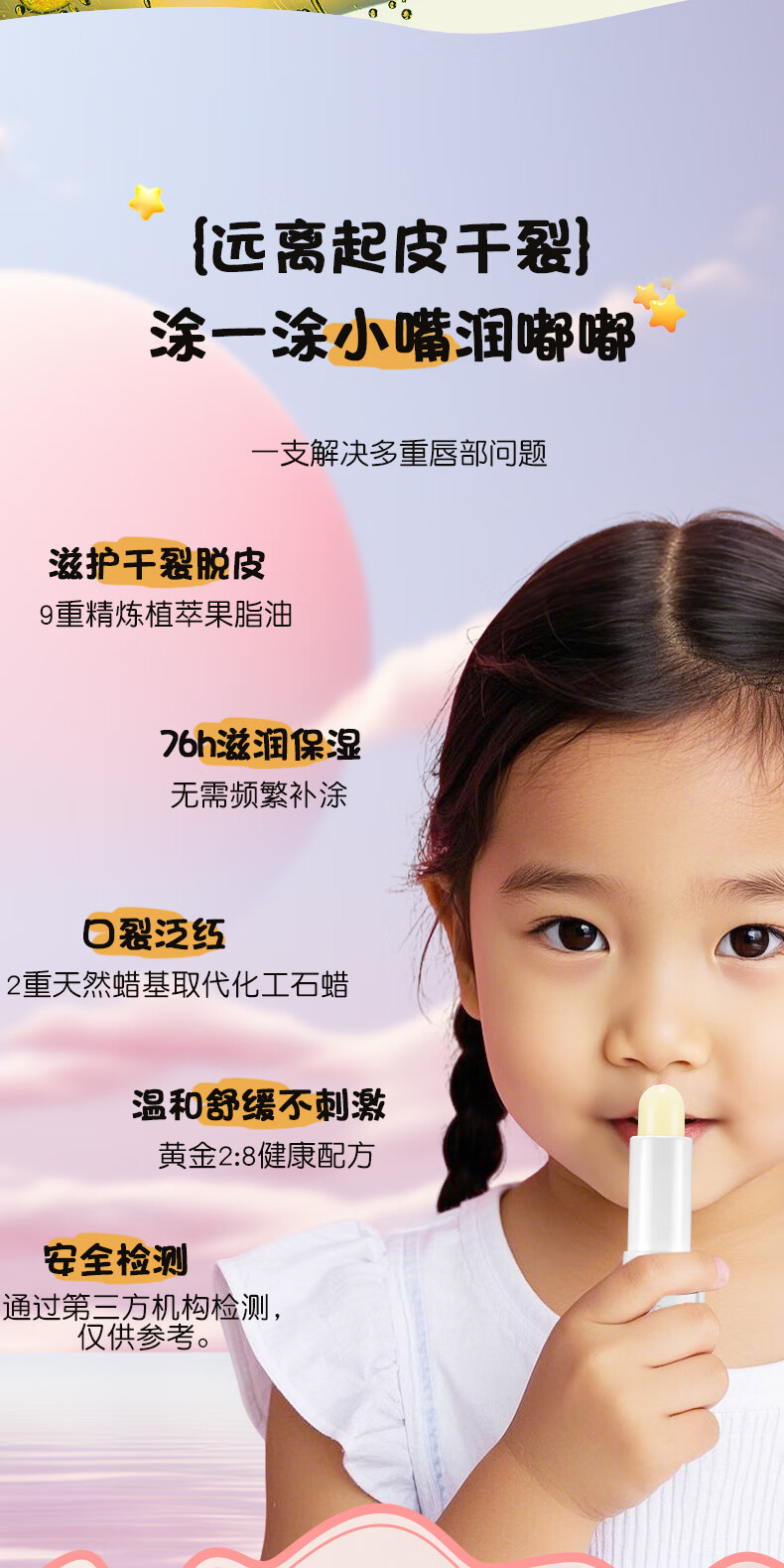纯即宝宝唇膏婴儿0-3-6-12-14岁儿童专用保湿滋润补水防干裂男孩学生