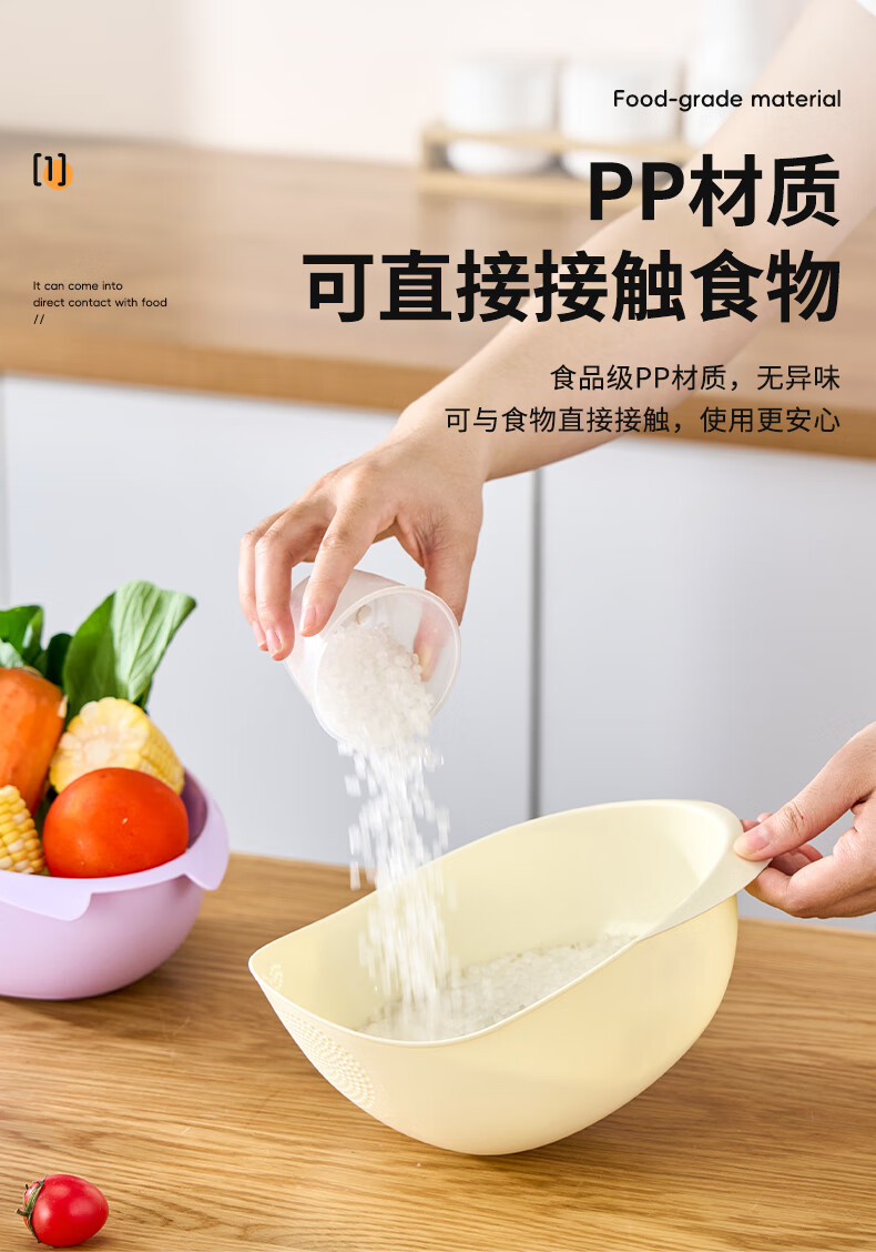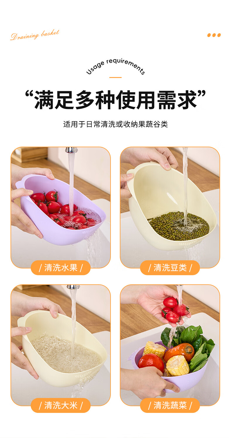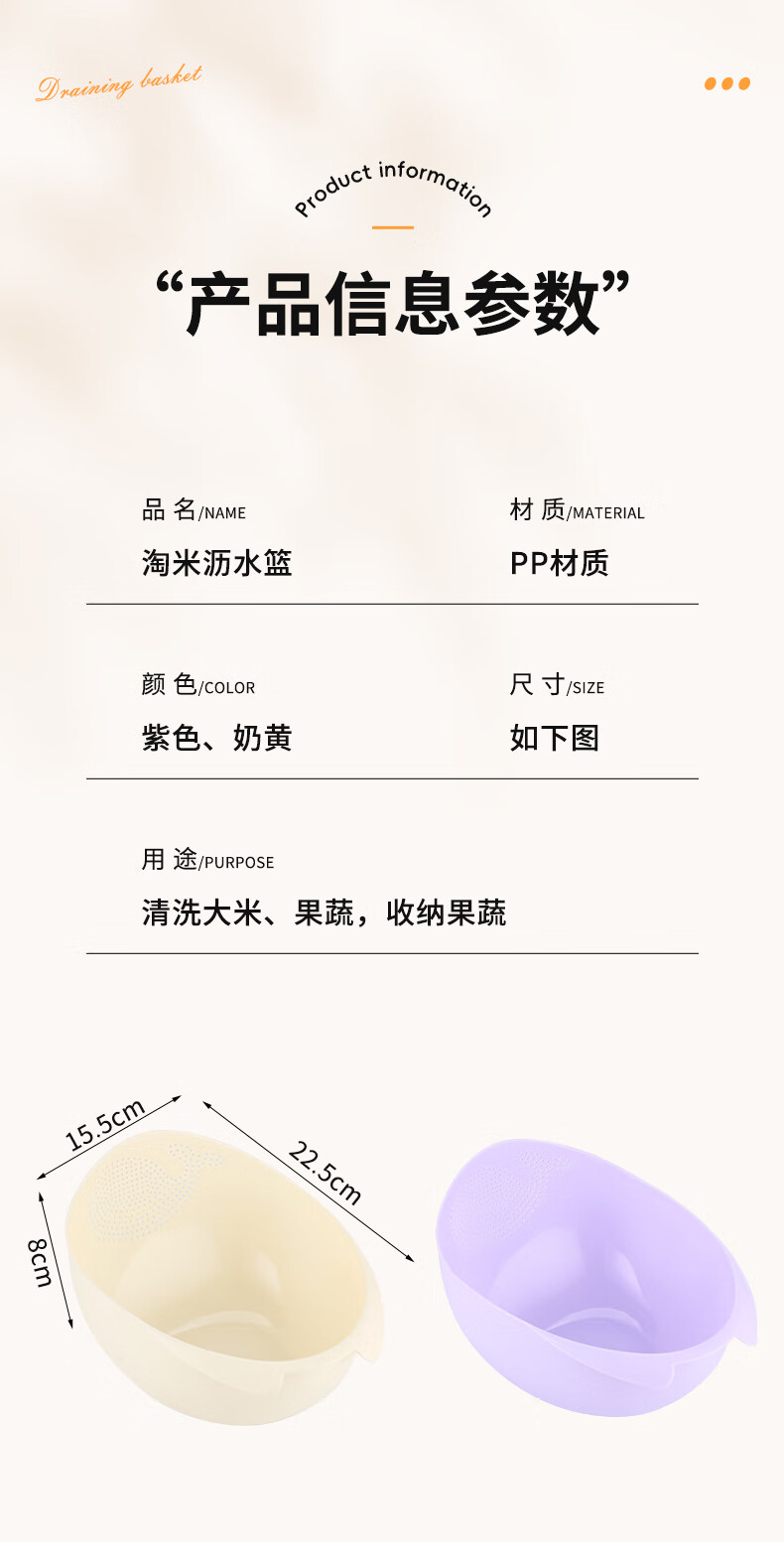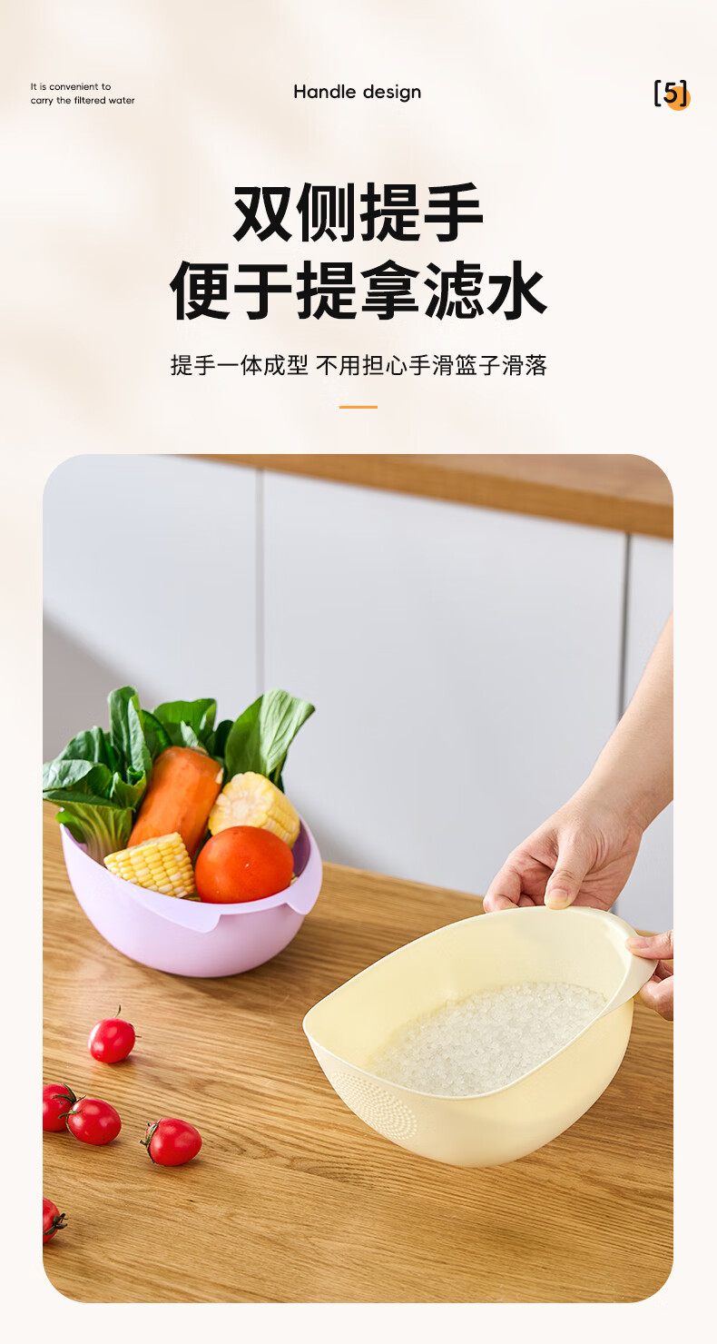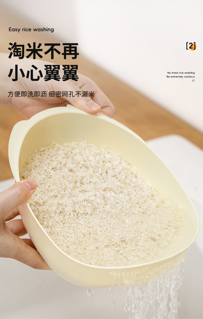 淘米神器多功能沥水篮淘米篮淘米筛洗米盆脸盆多功能洗蔬菜洗水果 鲸鱼奶白色中号1个【细孔沥水-淘米不漏】