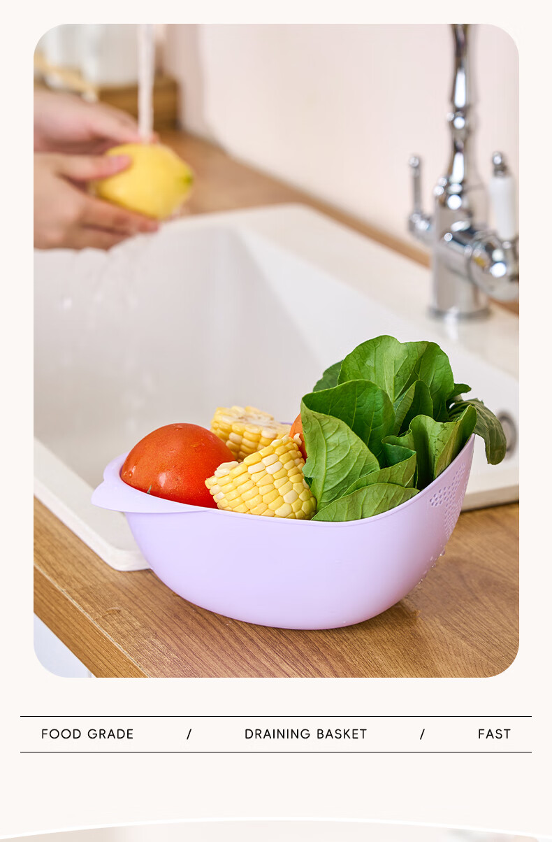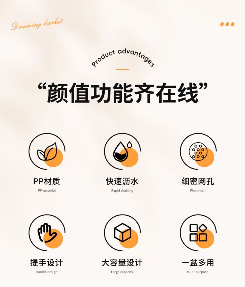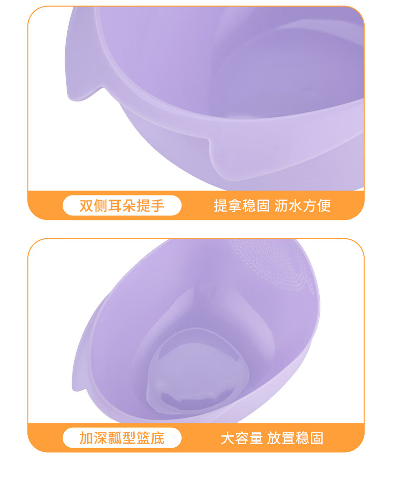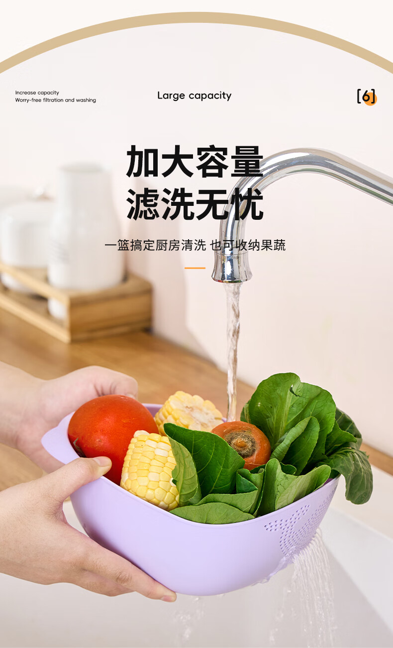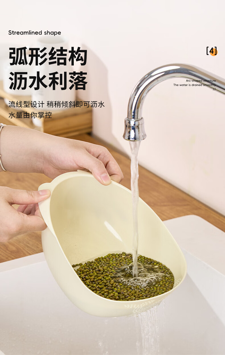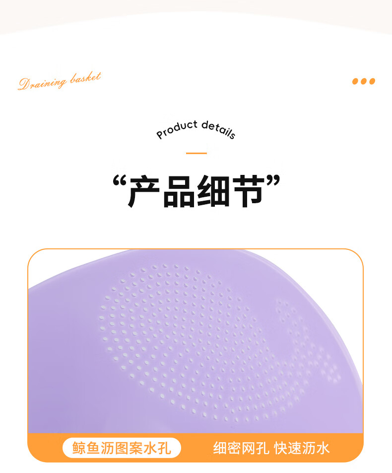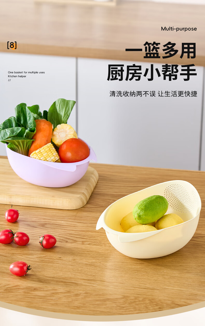 淘米神器多功能沥水篮淘米篮淘米筛洗米盆脸盆多功能洗蔬菜洗水果 鲸鱼奶白色中号1个【细孔沥水-淘米不漏】