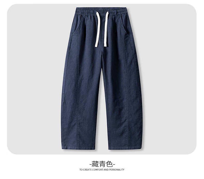 SHANSHAN杉杉休闲裤男春夏新款松紧腰男士弯刀裤休闲简约中青年长裤子 藏青色 L /175
