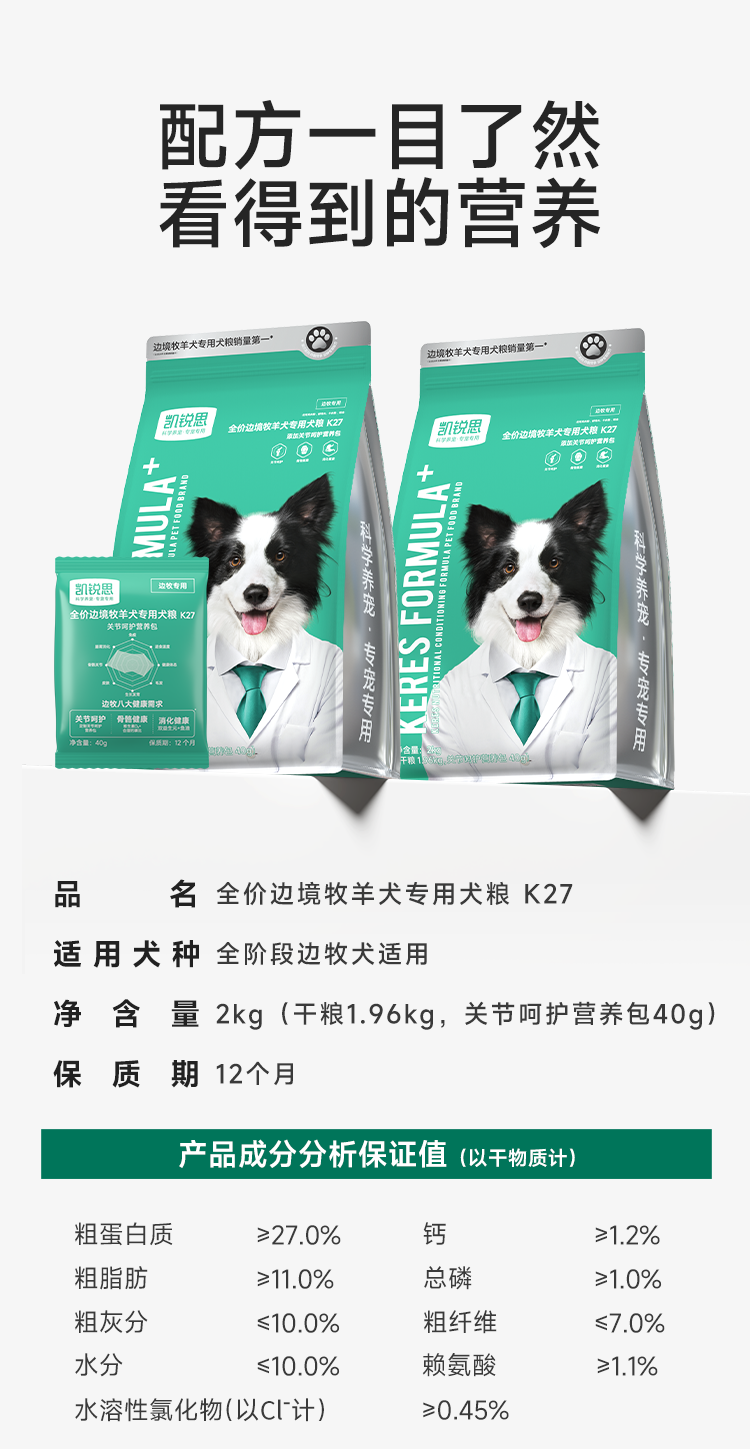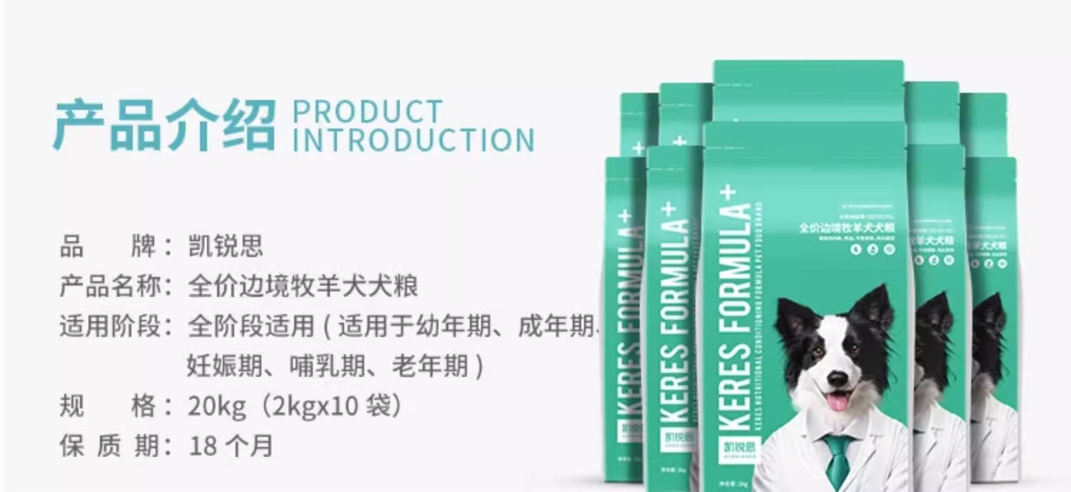 凯锐思狗粮边牧专用大型犬犬粮毛发亮丽骨骼强健蛋黄鱼油 【助力体态】边牧羊奶味20斤