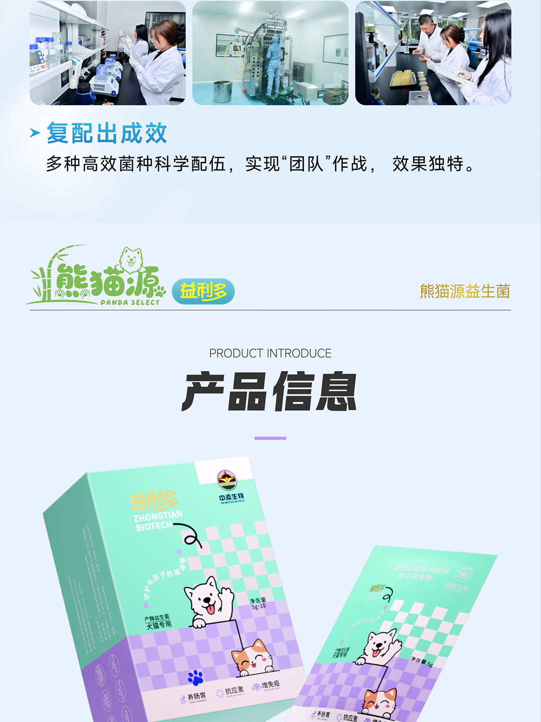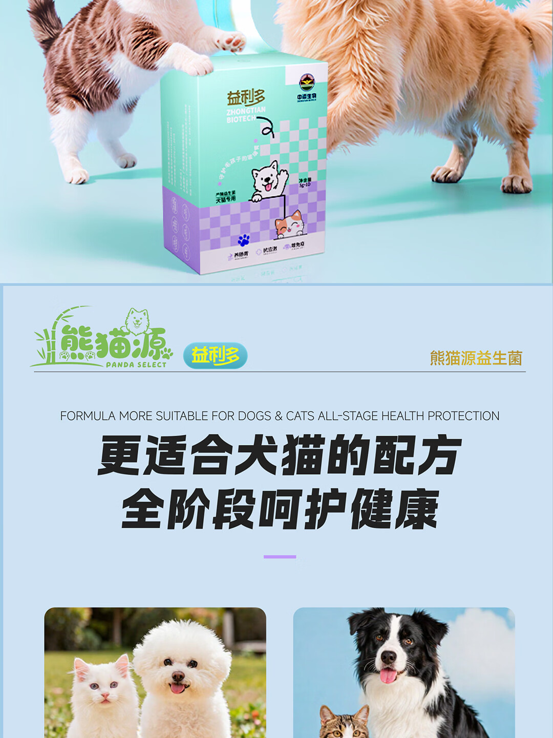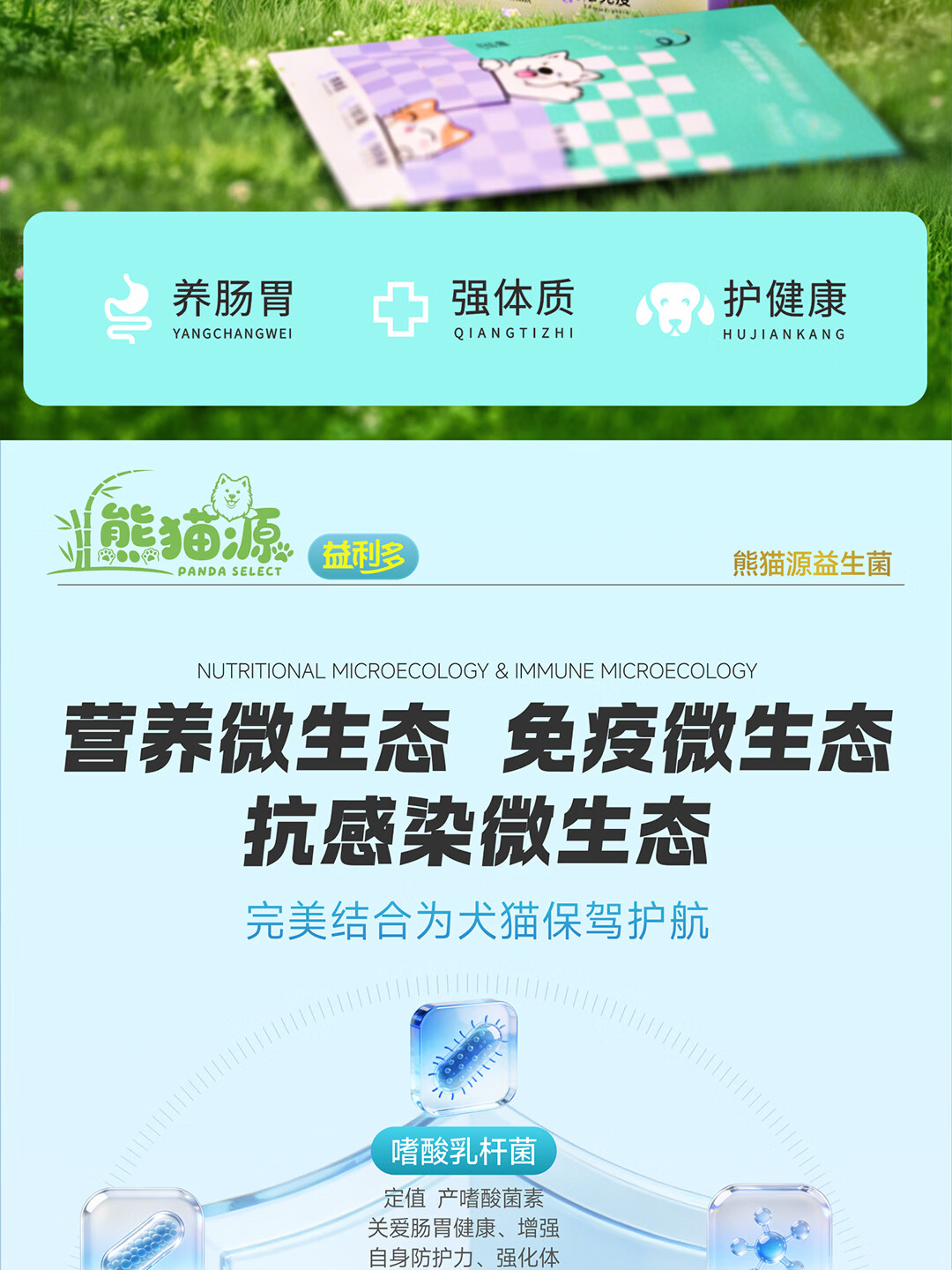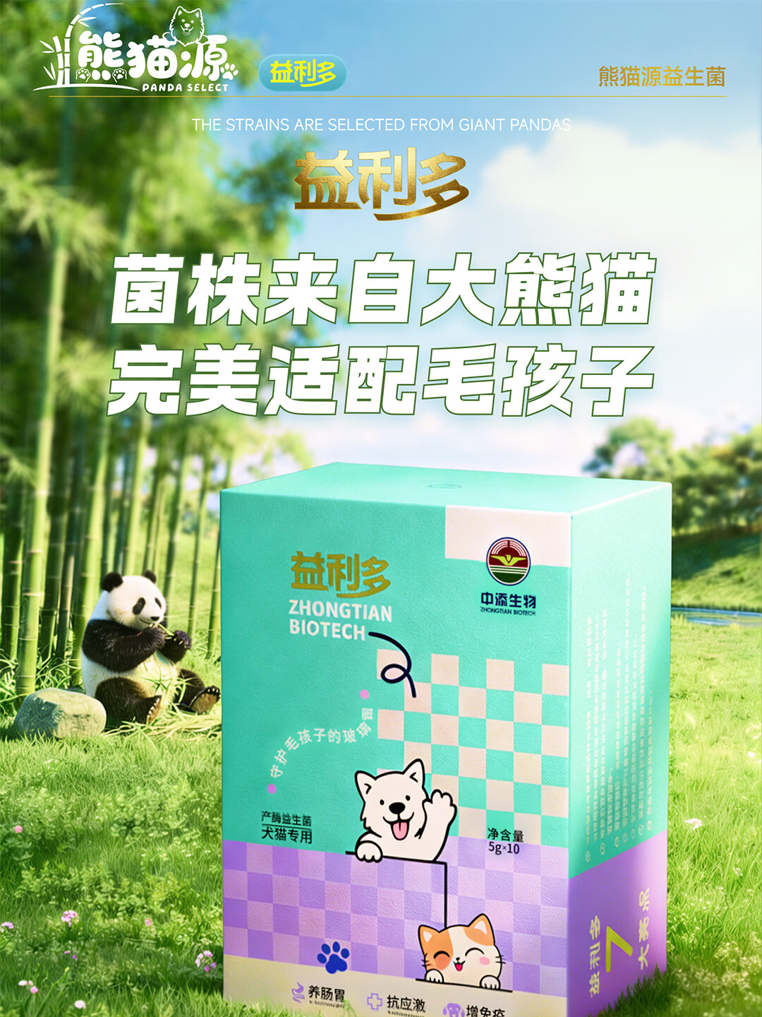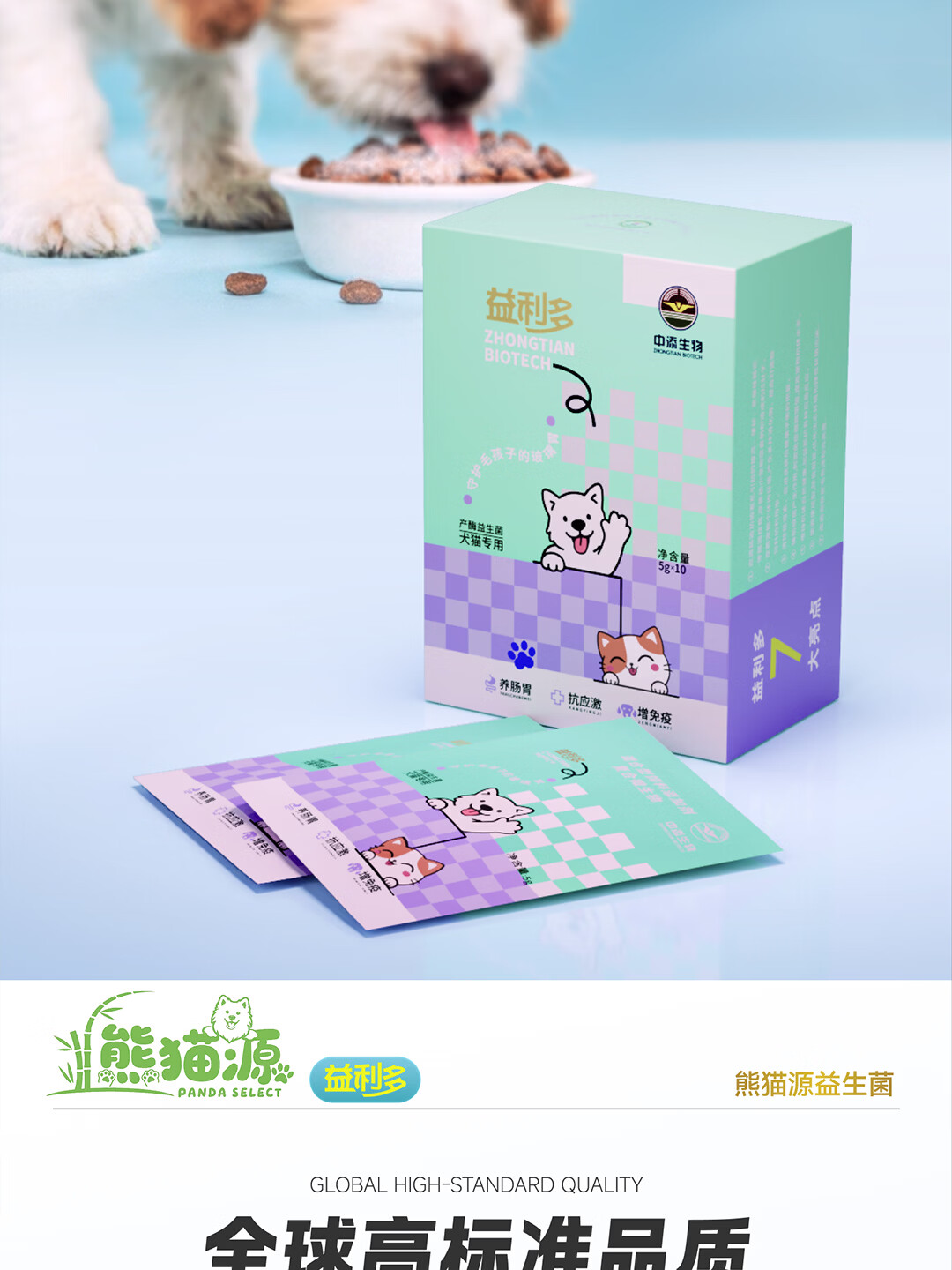 中添生物(ZHONGTIAN BIOTECH)熊猫源宠物猫咪狗狗活性益生菌幼犬幼猫调理肠胃呕吐拉稀软便用 绿色长盒 50g*5盒