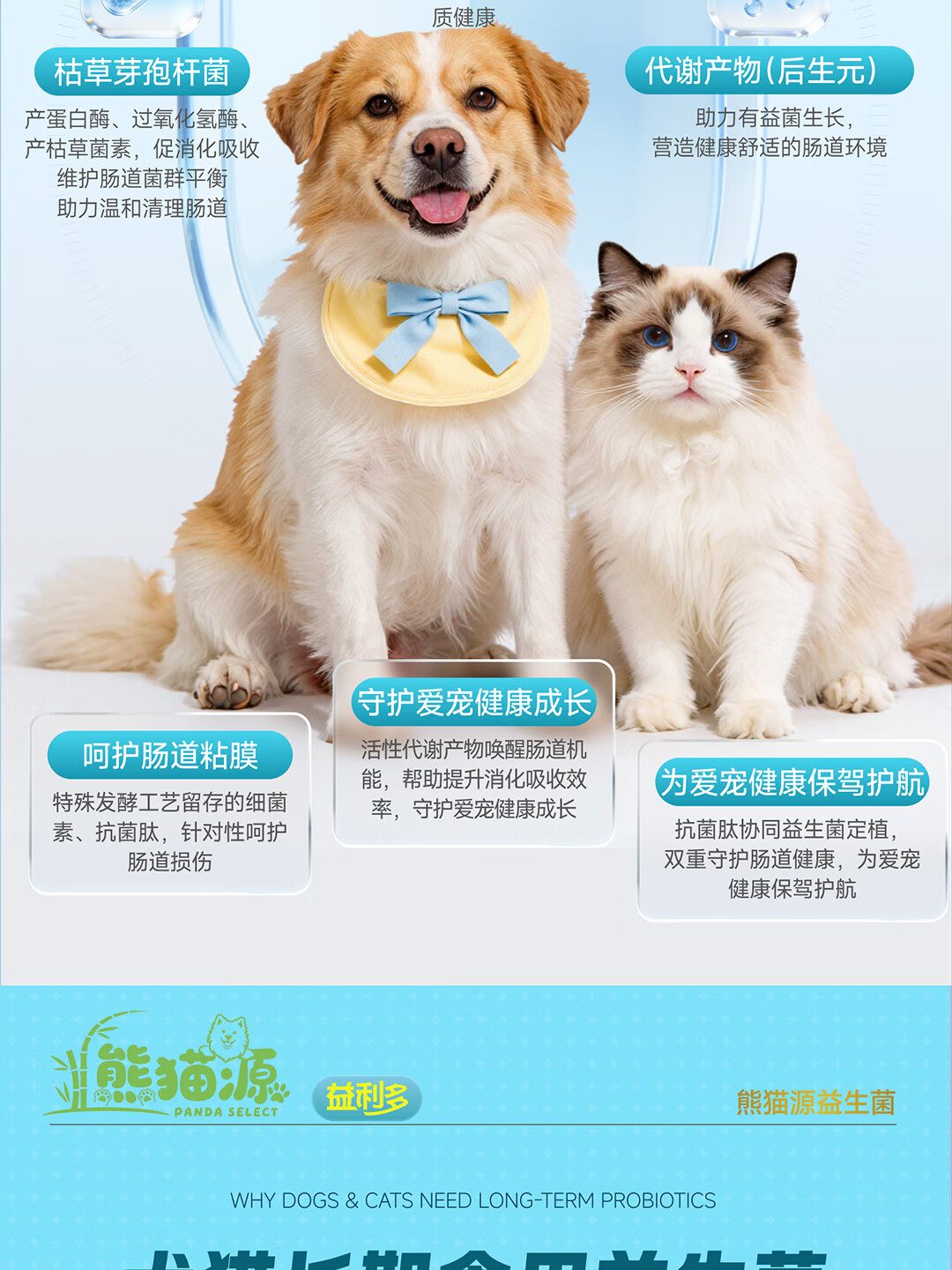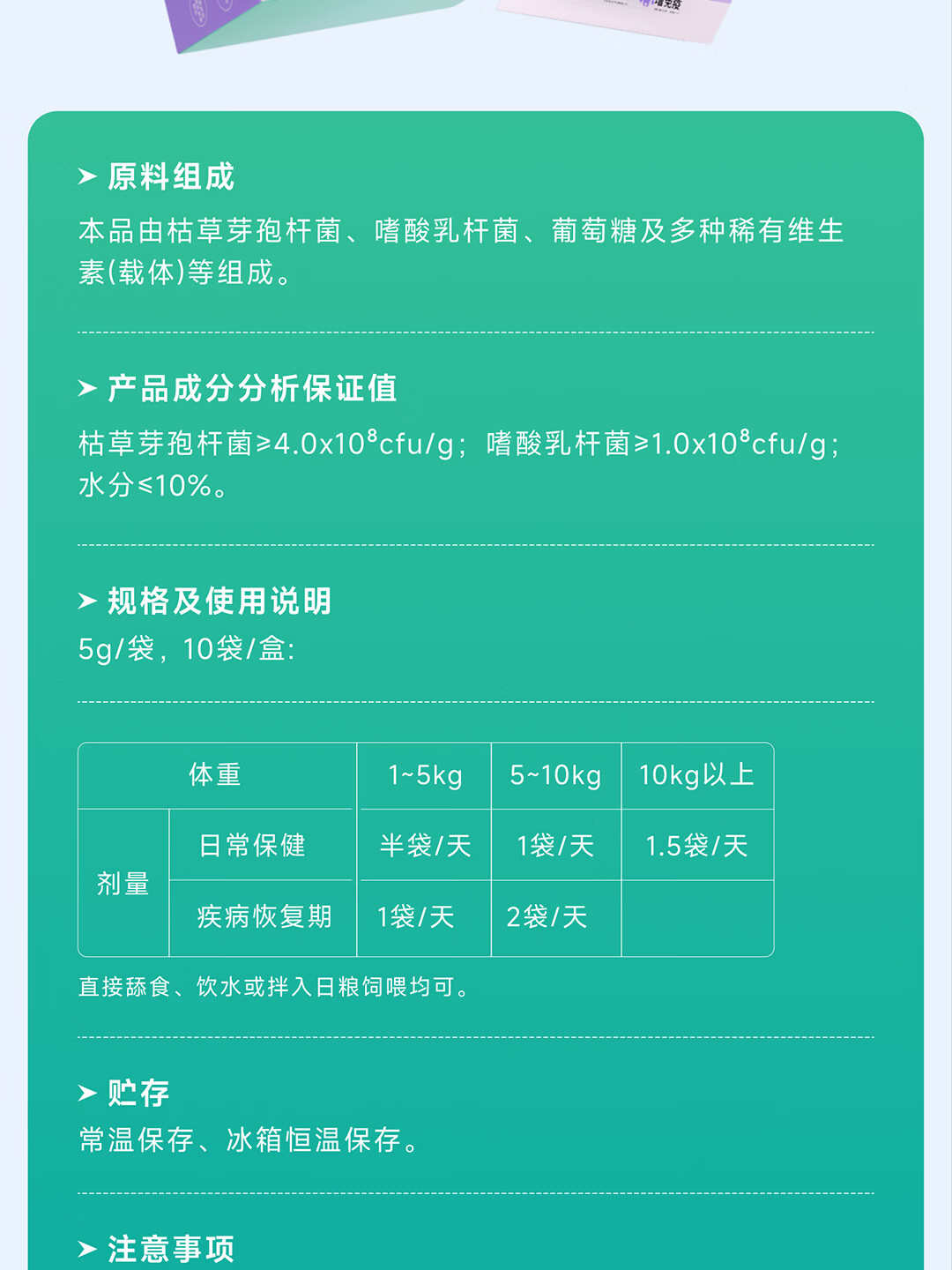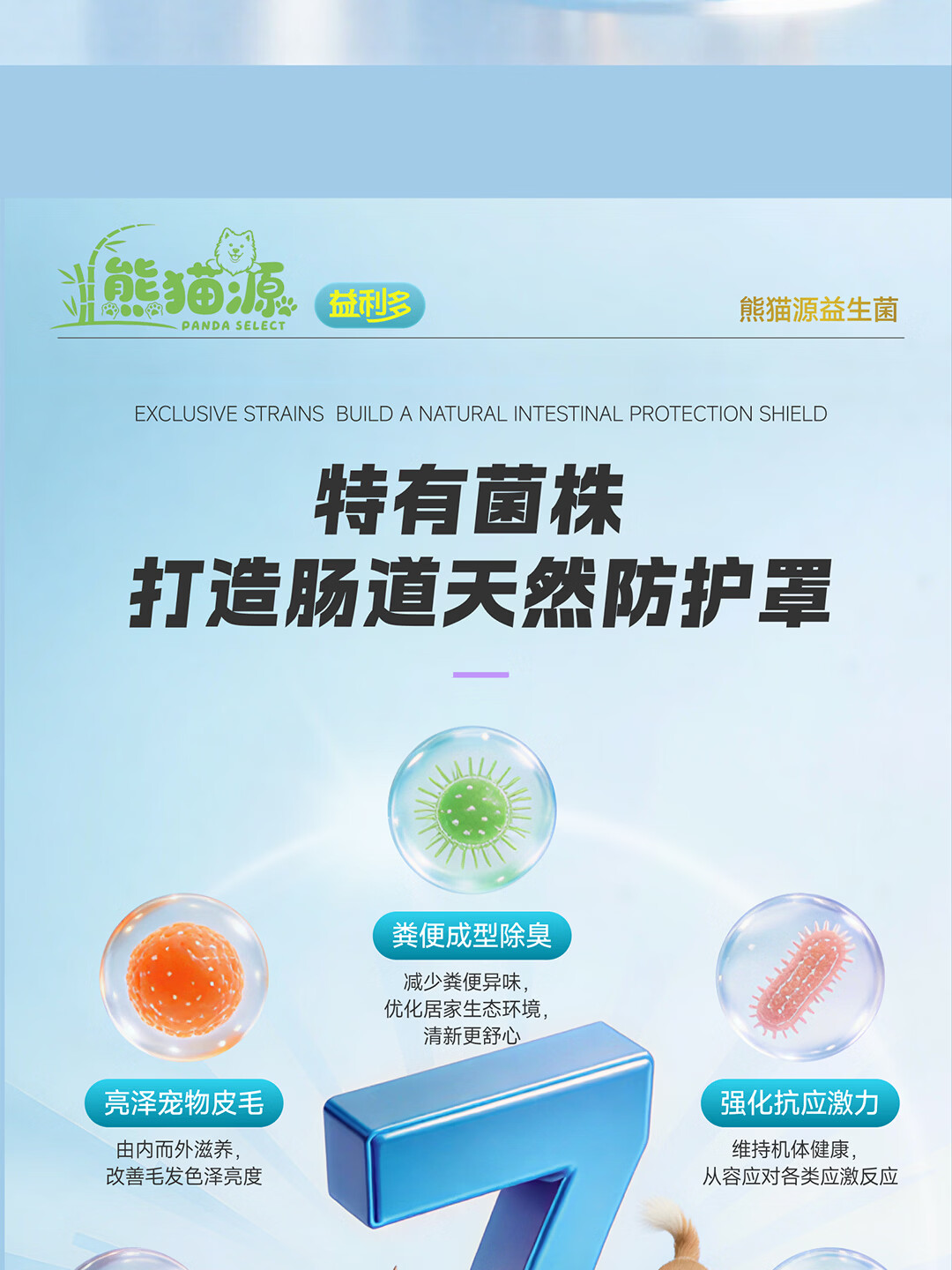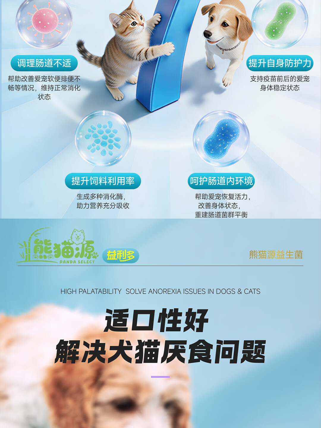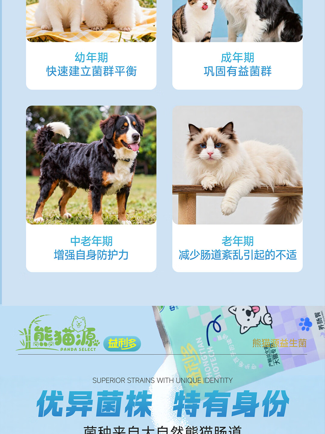 中添生物(ZHONGTIAN BIOTECH)熊猫源宠物猫咪狗狗活性益生菌幼犬幼猫调理肠胃呕吐拉稀软便用 绿色长盒 50g*5盒
