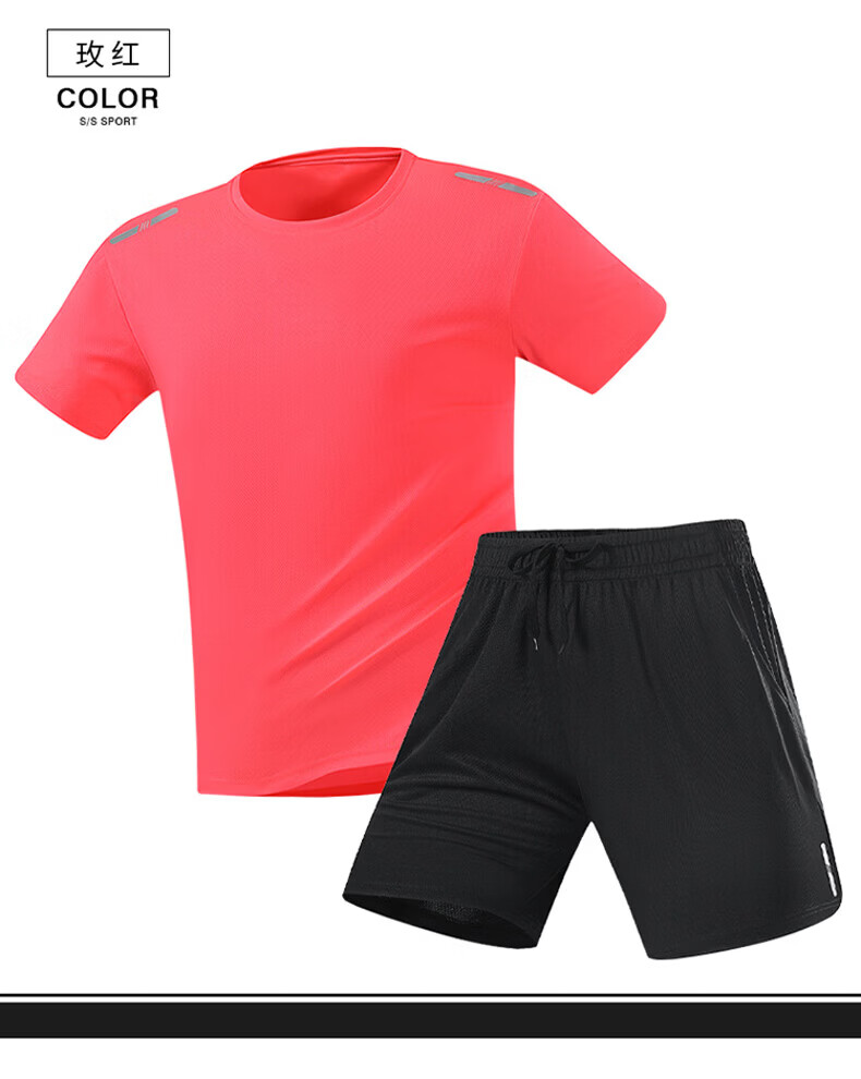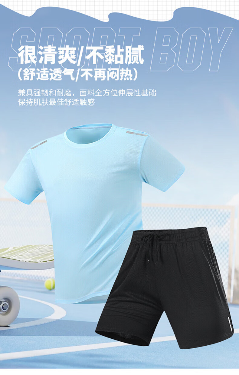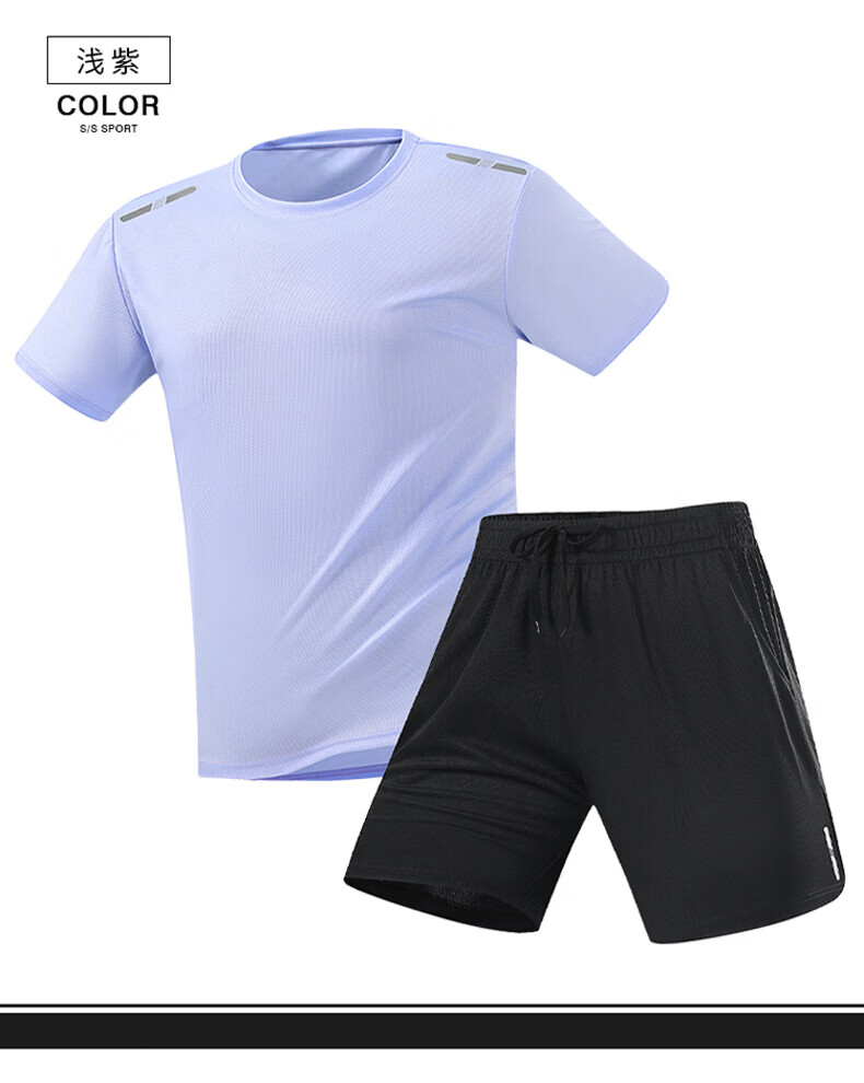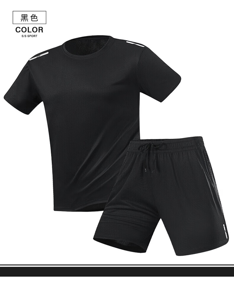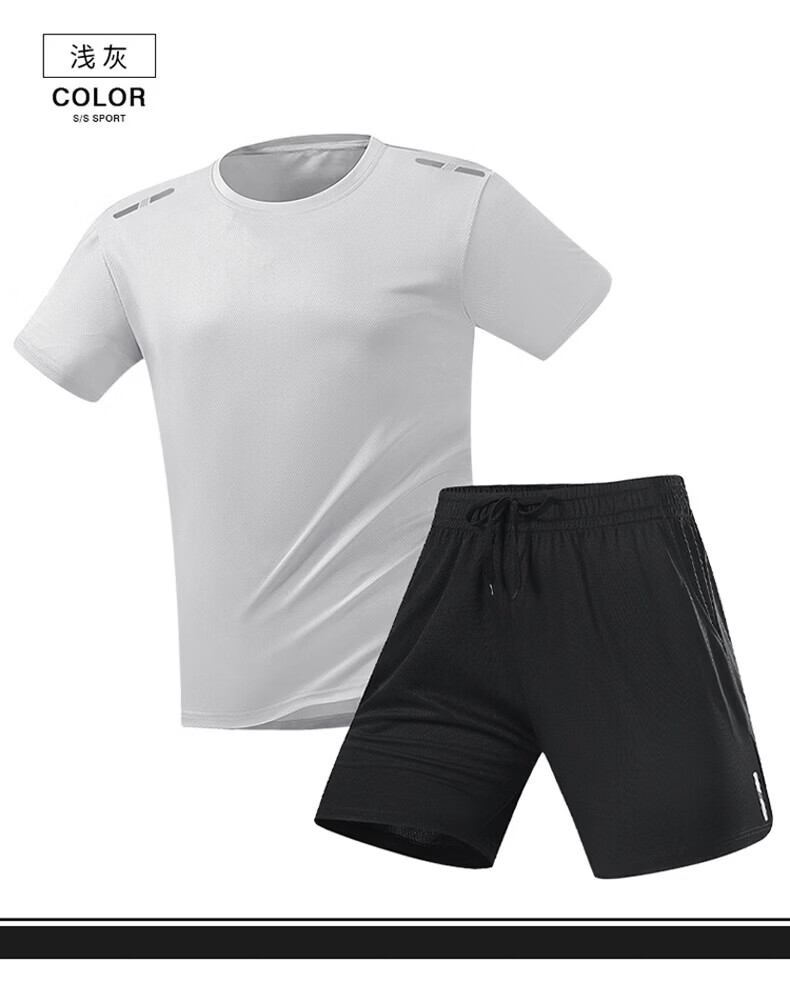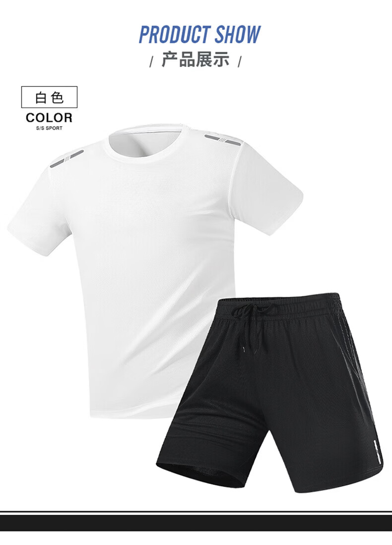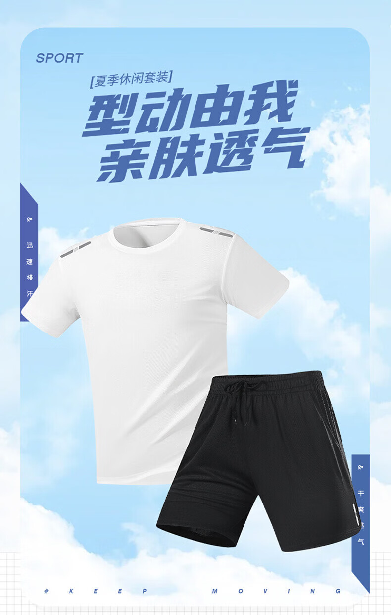 JEEP SPIRIT吉普男士冰丝速干套装夏季圆领t恤运动宽松短袖短裤两件短装 白色套装 M