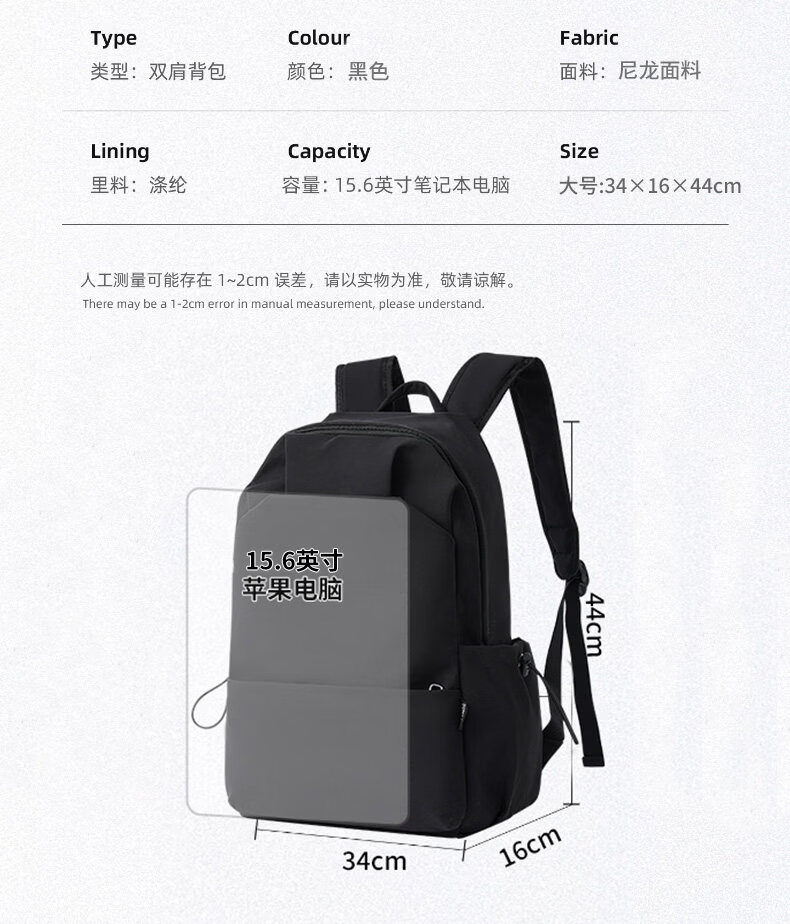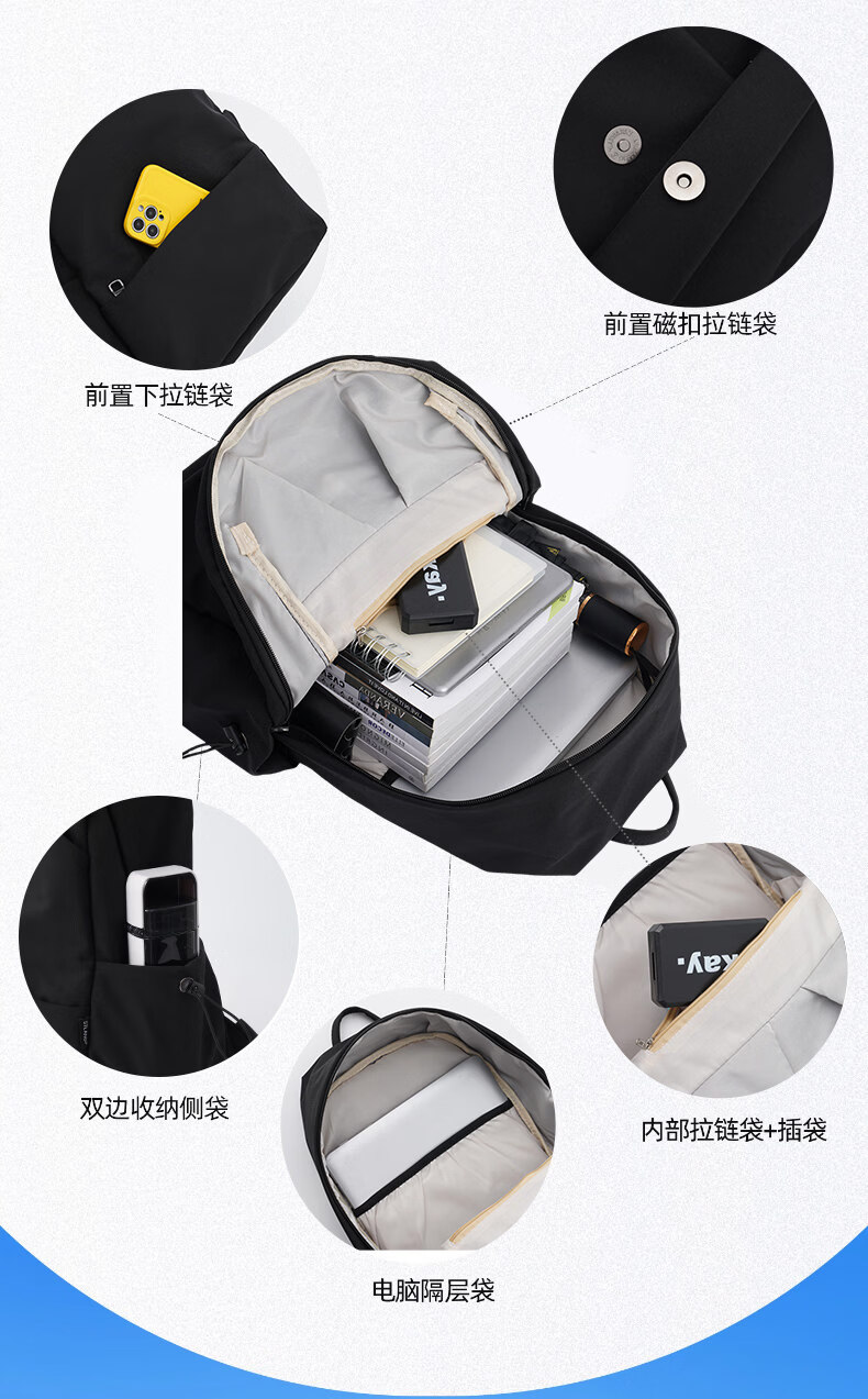 回力书包女2026新款森系大容量双肩包百搭轻便旅游背包初高中大学生 黑色【百搭轻便旅行背包】