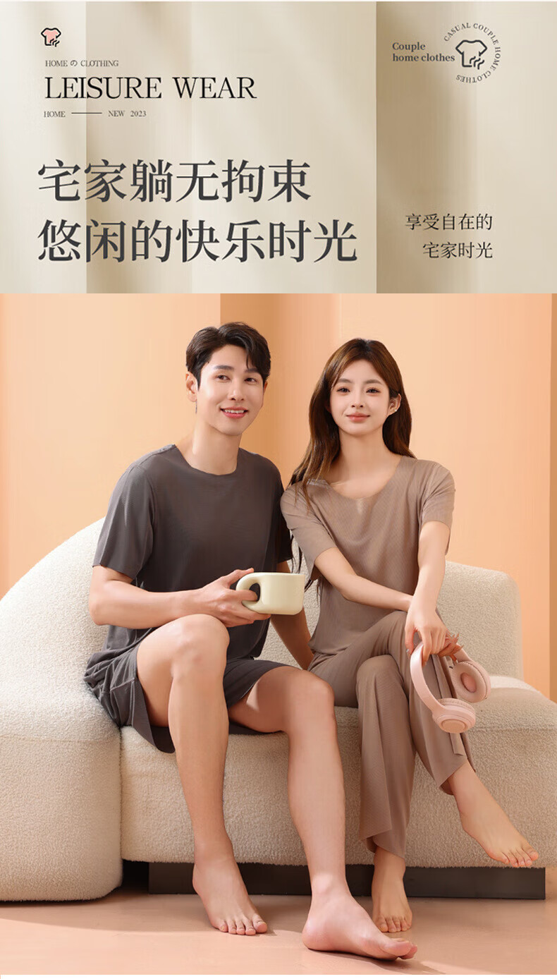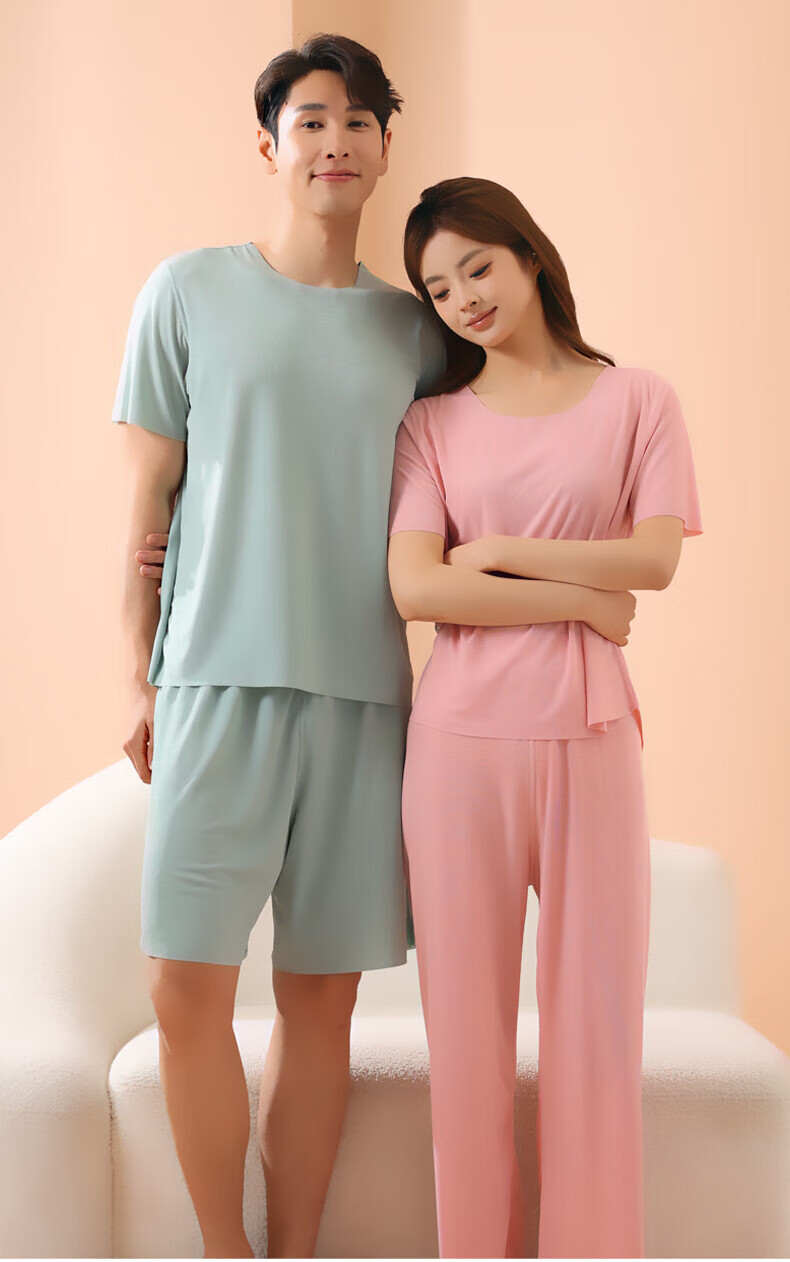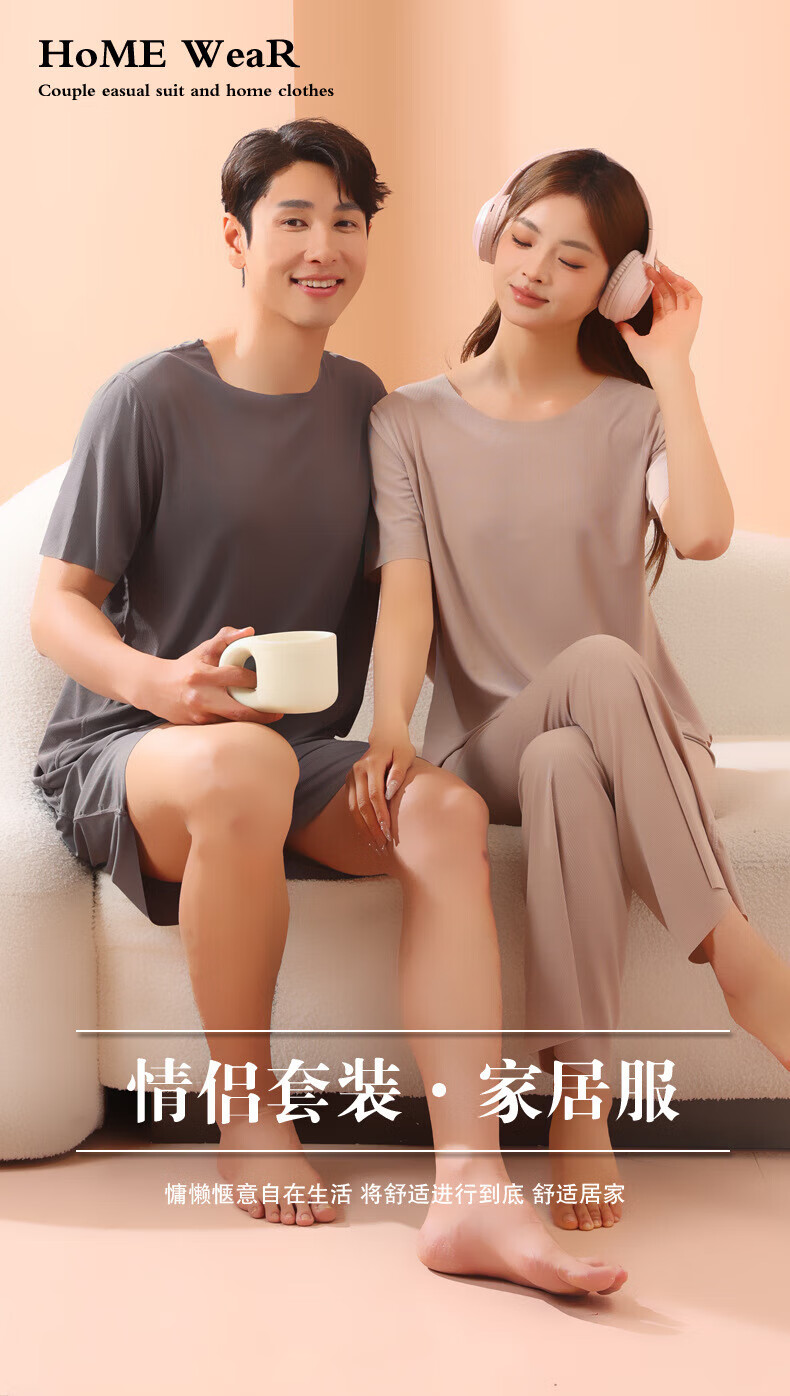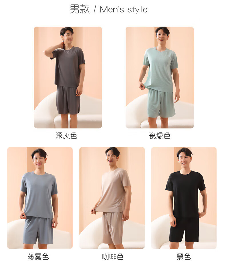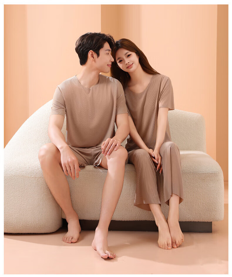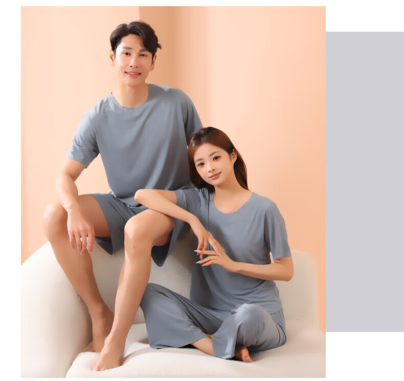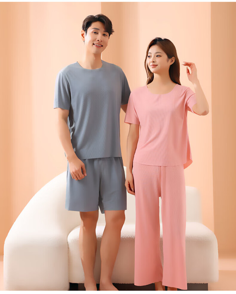 有只绵情侣睡衣套装春夏季冰丝无痕宽松大码男女款可外穿家居服 男款-深灰色 L