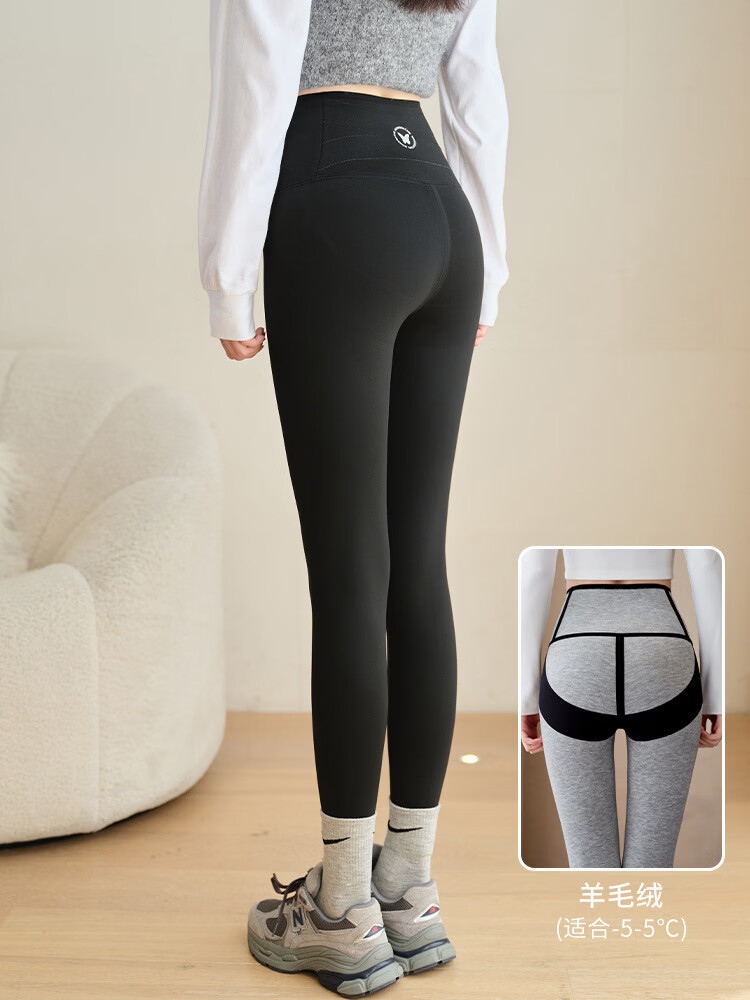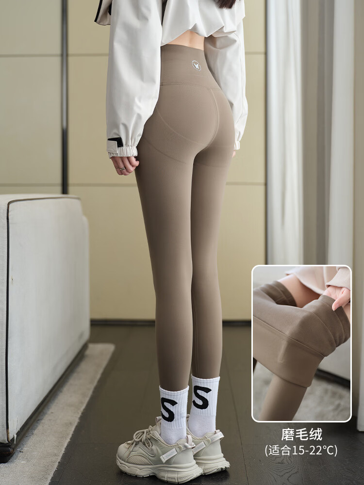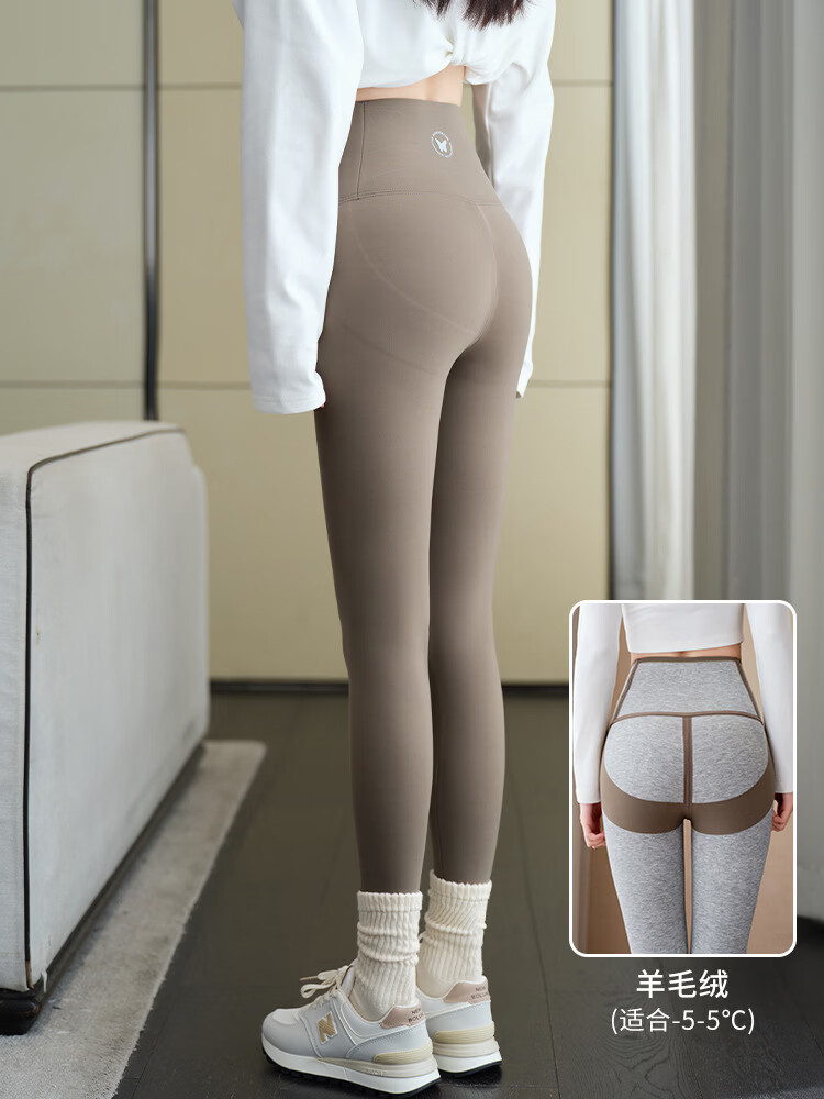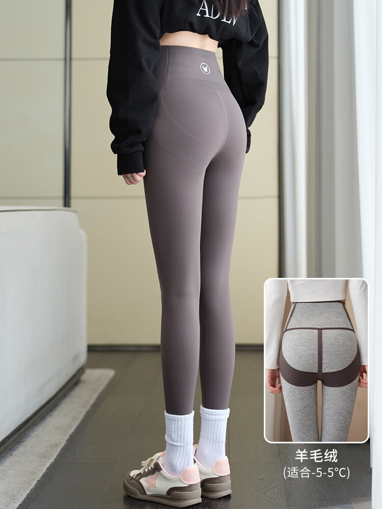 you棵树鲨鱼裤女秋冬外穿收腹提臀瑜伽裤显瘦高腰无痕塑形芭比裤 冷棕色—羊羔绒款【适合零下10-0°】 3XL 【适合170-200斤】
