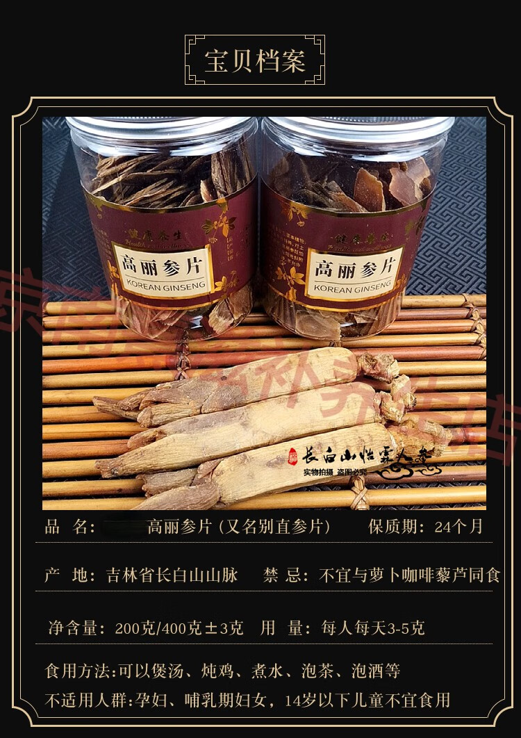 慈药山高丽参长白山高丽参切片正宗高丽红参片无糖高丽参煲汤高丽 高丽参片 50克