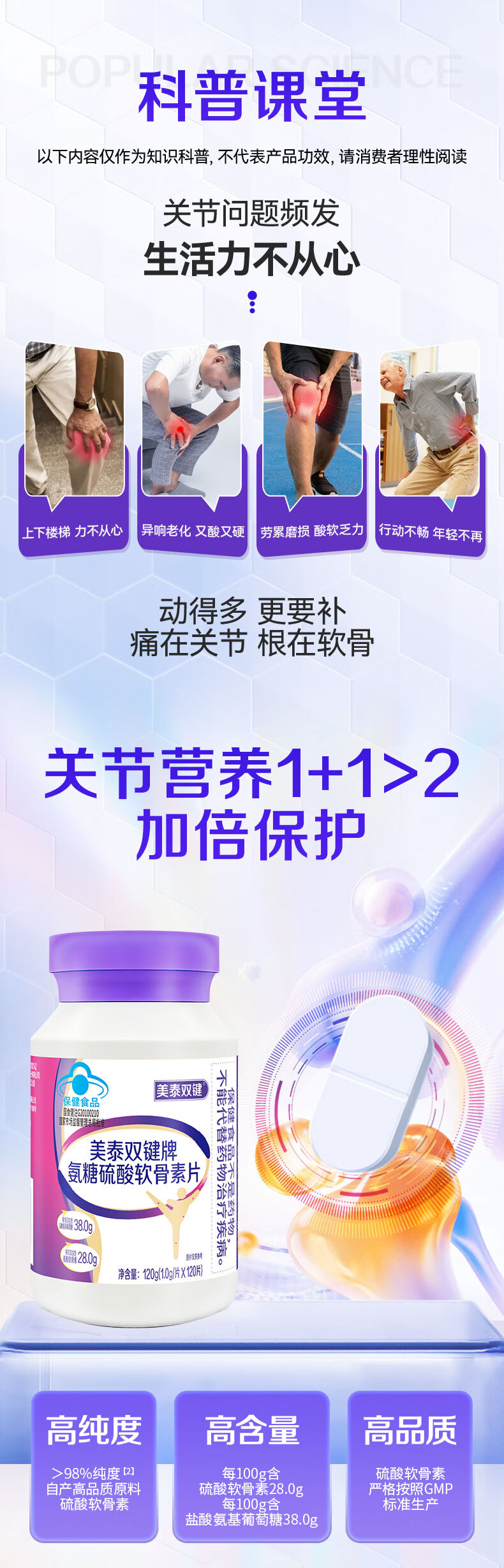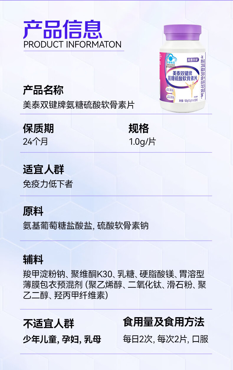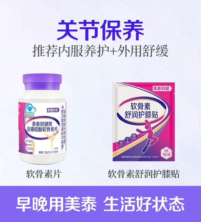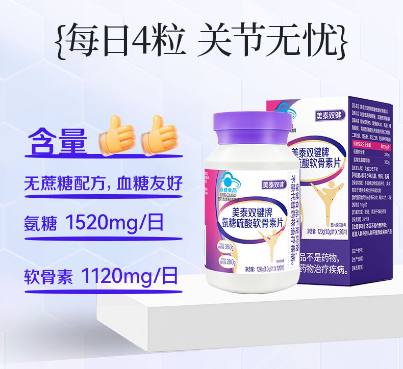 美泰双键 氨糖软骨素钙片120粒/盒 蓝帽保健品 中老年人氨糖补钙营养品 120粒*1瓶 【一月用量】