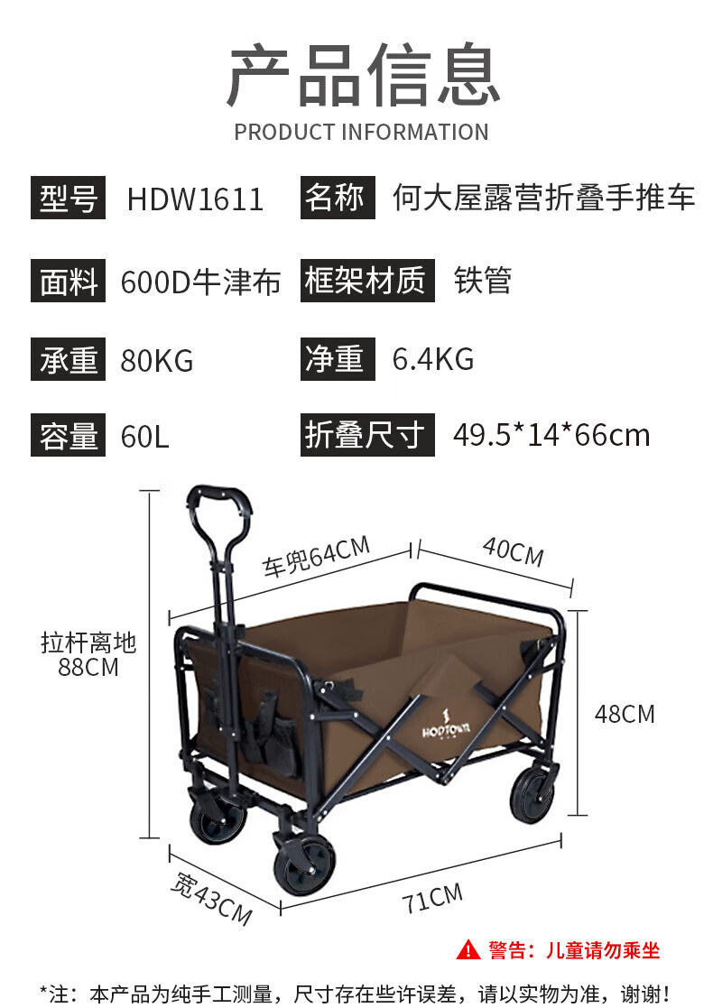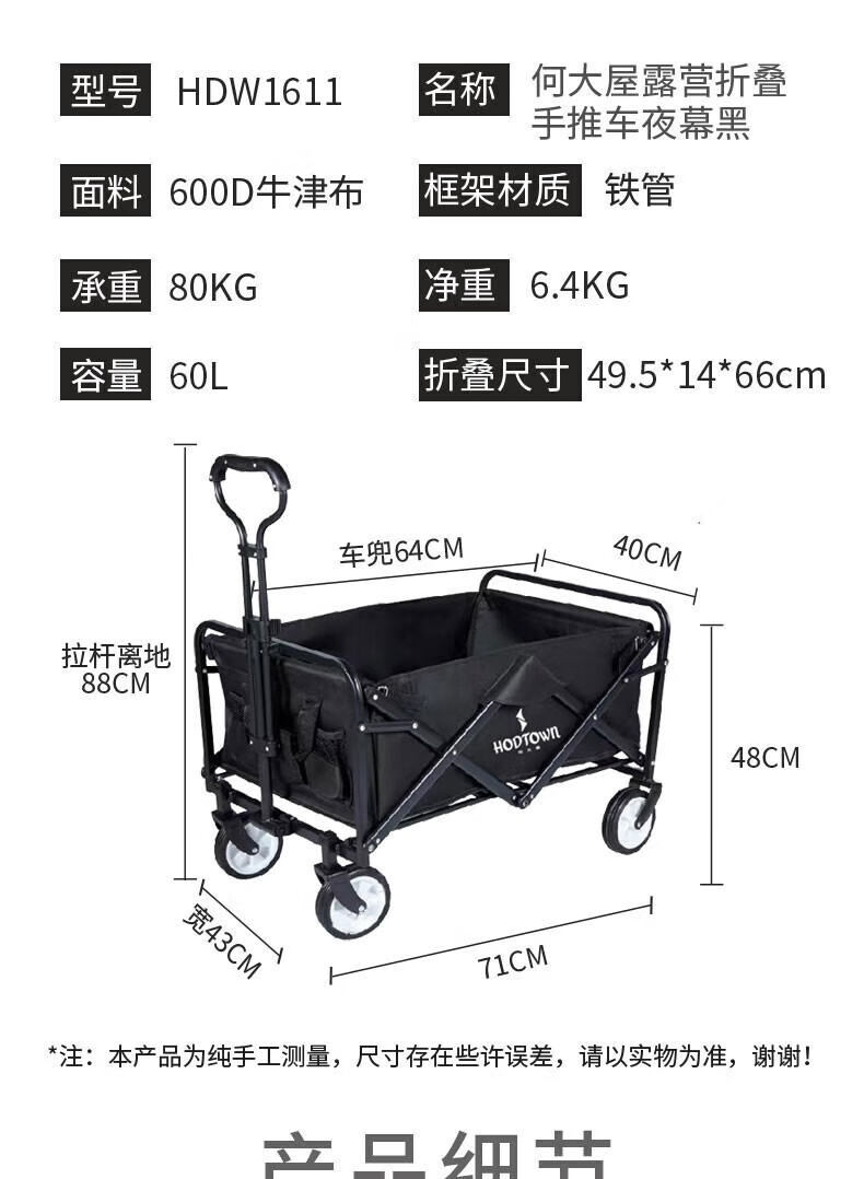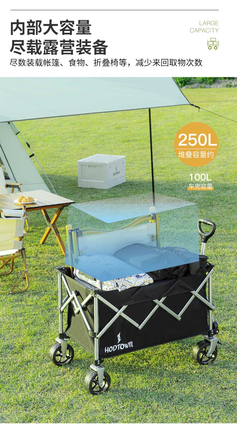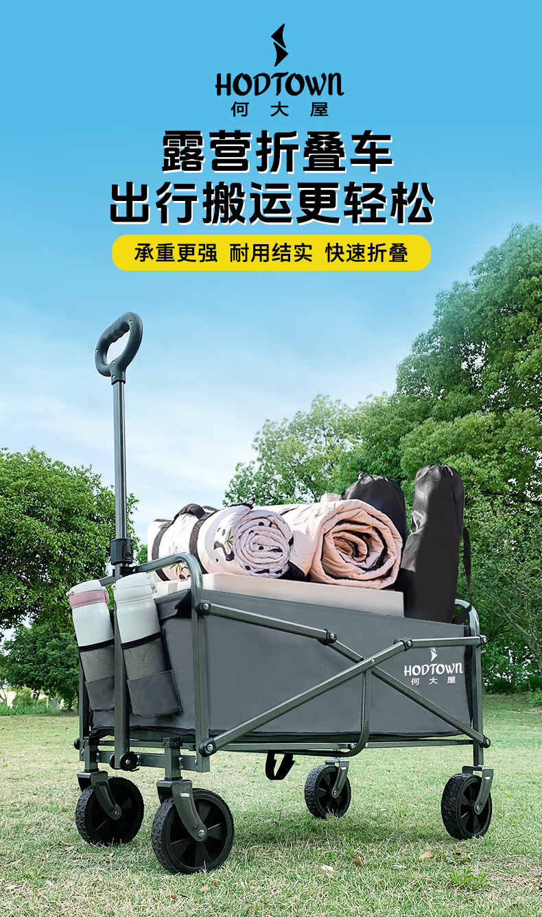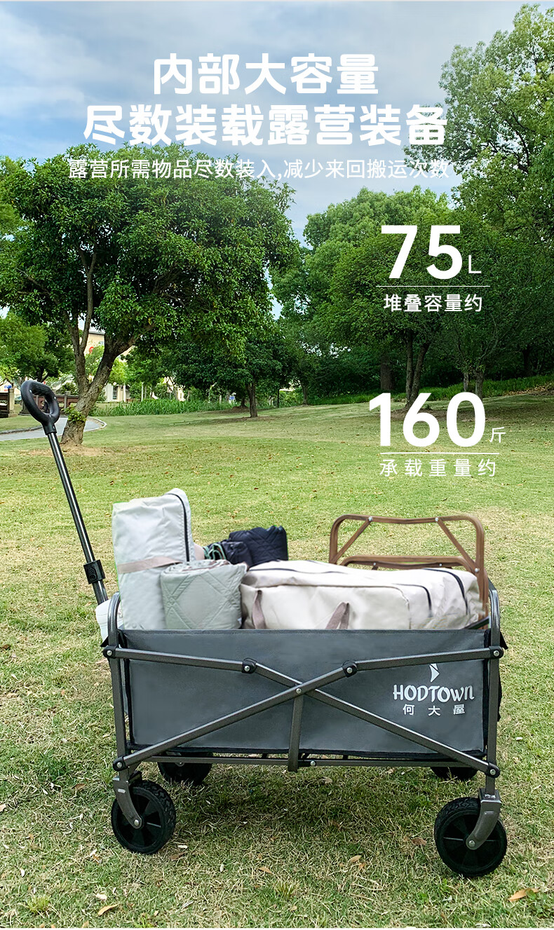 何大屋(Hodtown)户外营地露营车野营小拖车野餐手推车可折叠轻便携钓鱼摆摊拉车 HDW1610野营车 50L 无刹车