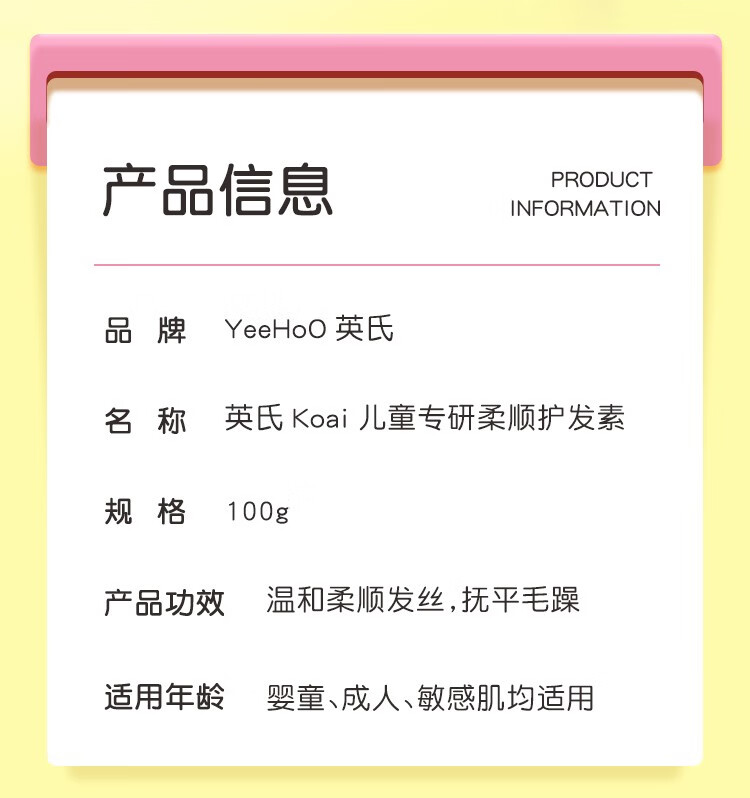 英氏(YEEHOO)儿童护发素男孩女孩顺滑头发梳理柔顺护发素儿童专用护发素大品牌 更划算】柔顺护发素100g*2支