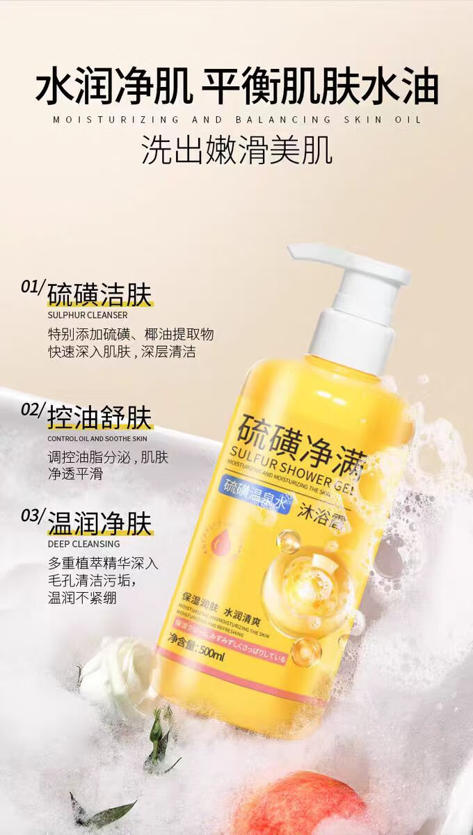 东来同款硫磺沐浴露除螨沐浴露控油止痒杀菌螨虫痘痘男女三合一胖 【东来同款】硫磺沐浴露500ml*3瓶 除螨 祛痘 滋润 嫩肤