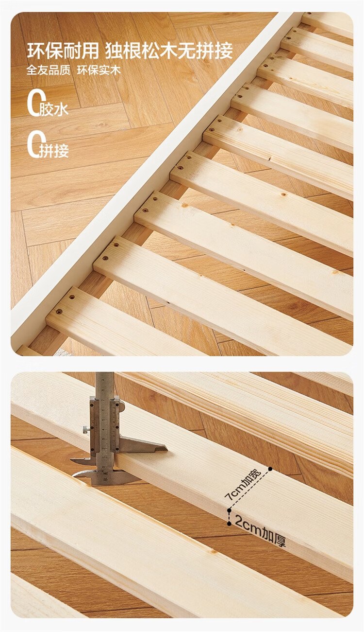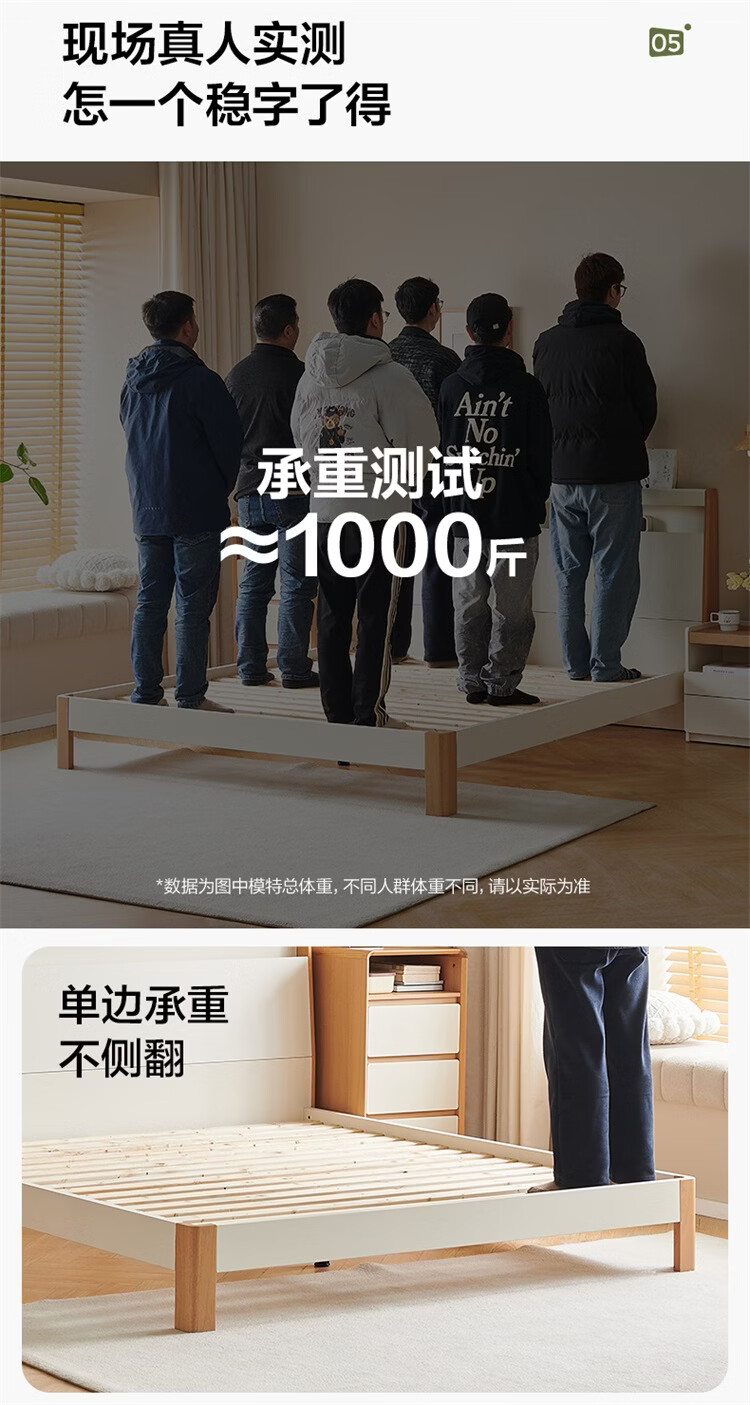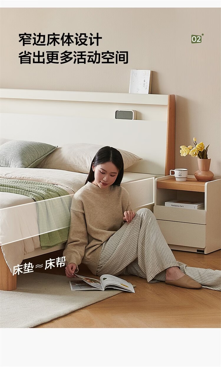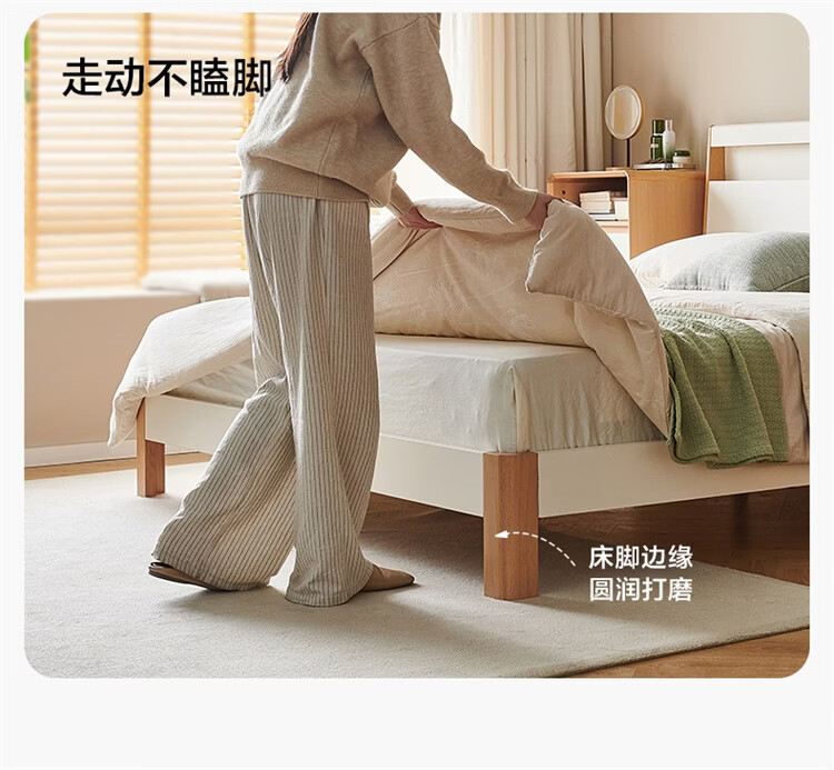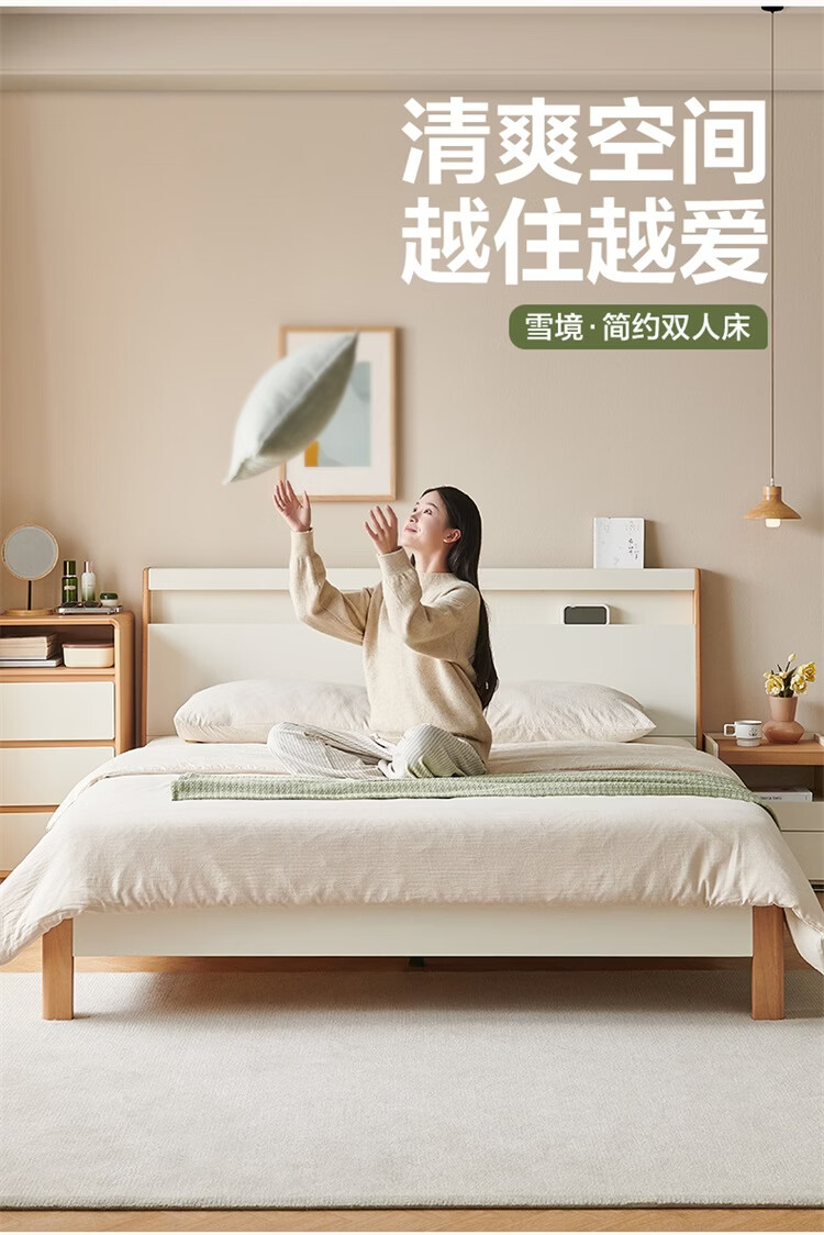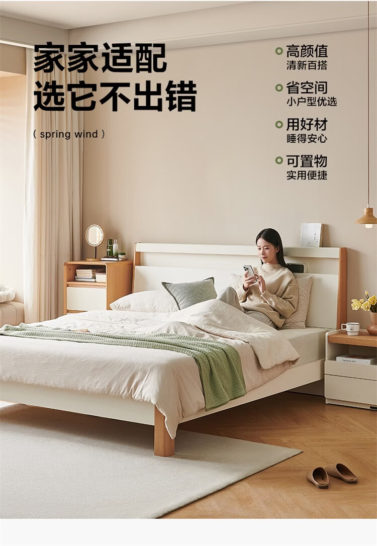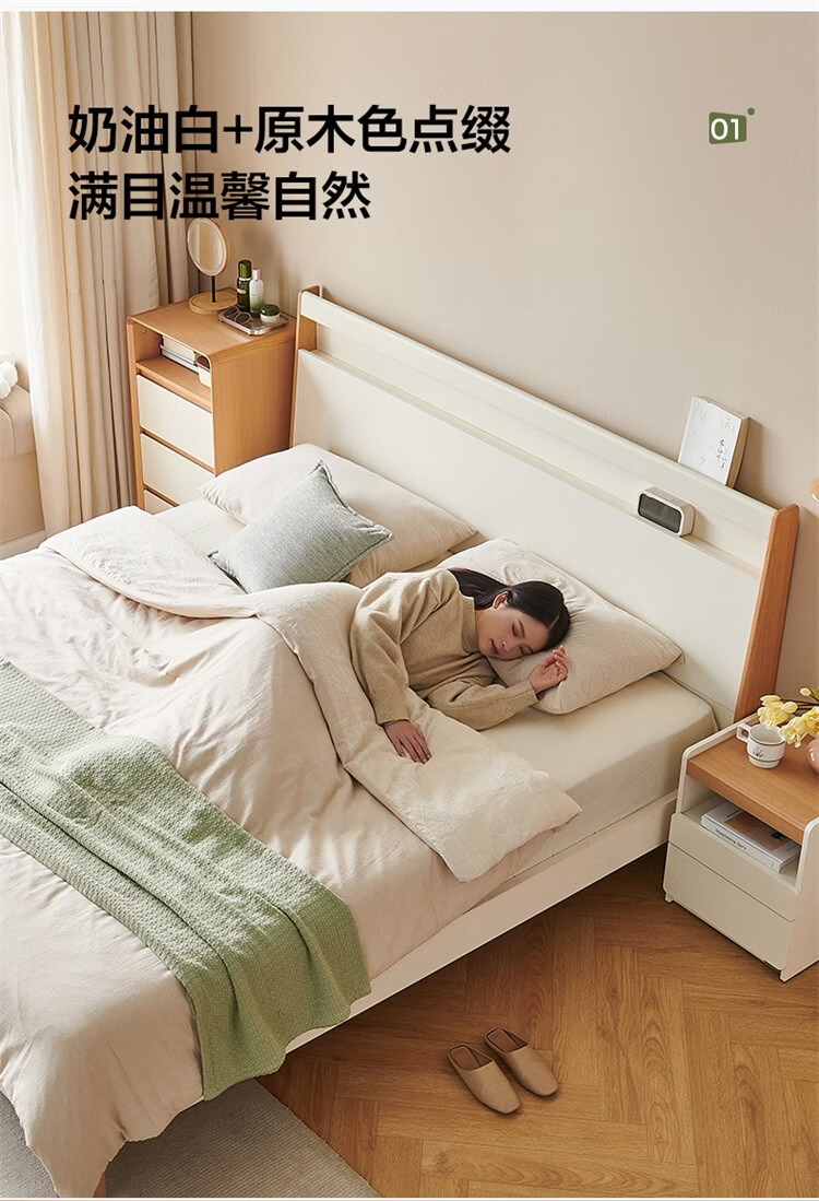 全友家居原木奶油风小户型双人床2026新款卧室出租屋床高脚床排骨架床 【奶油白+原木色】 1.5×2米 单床