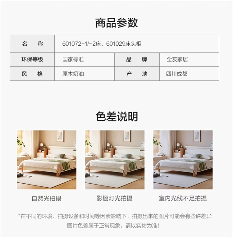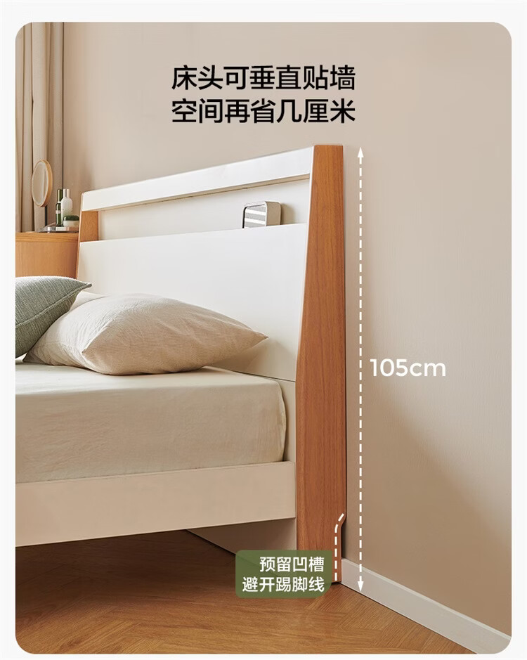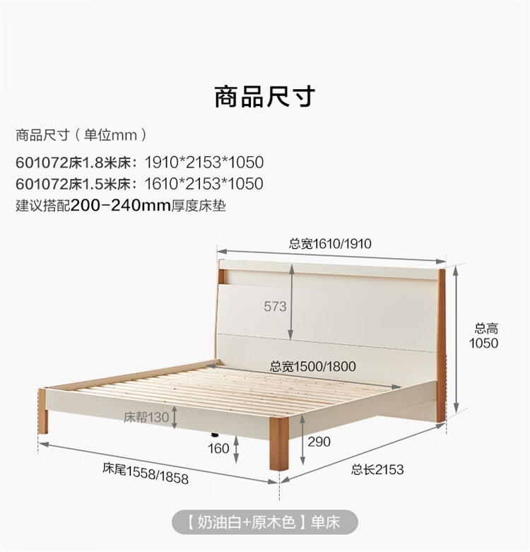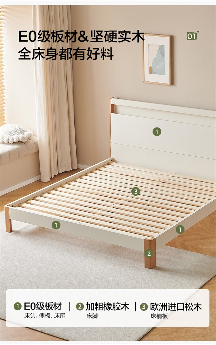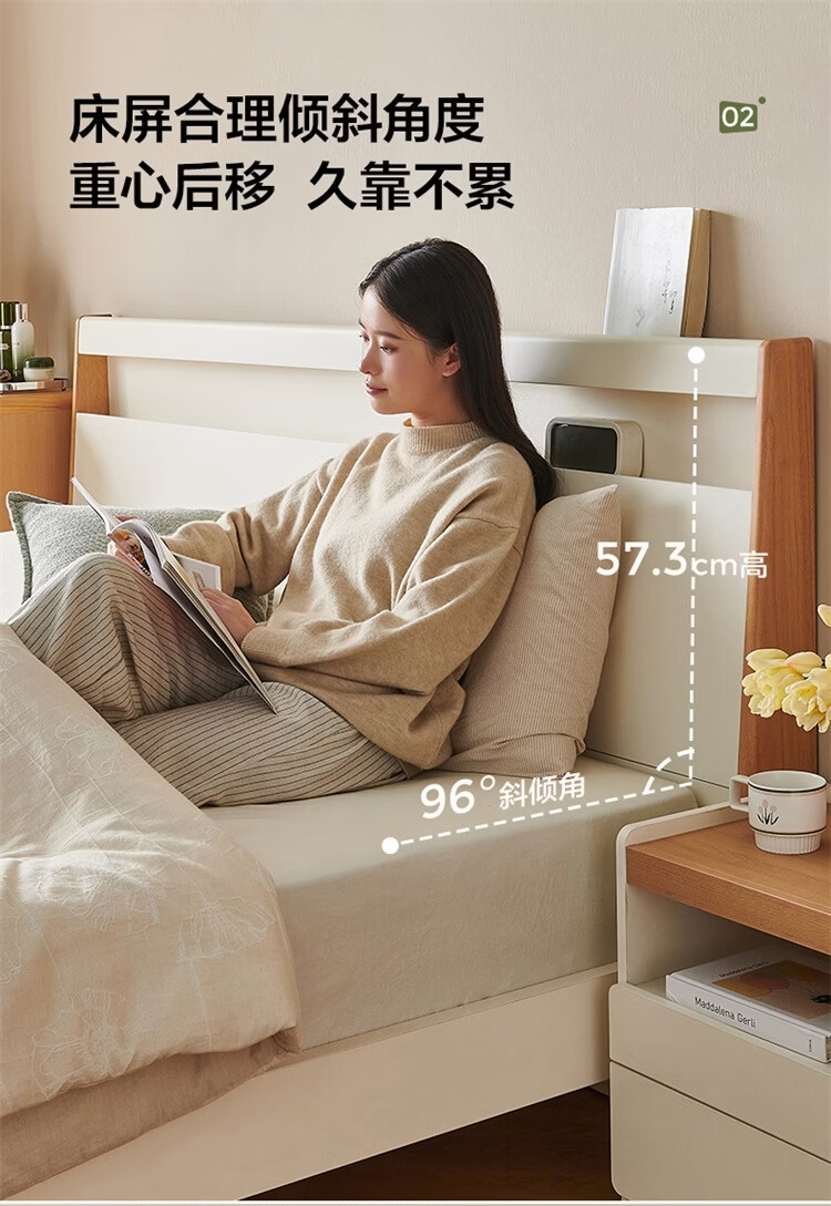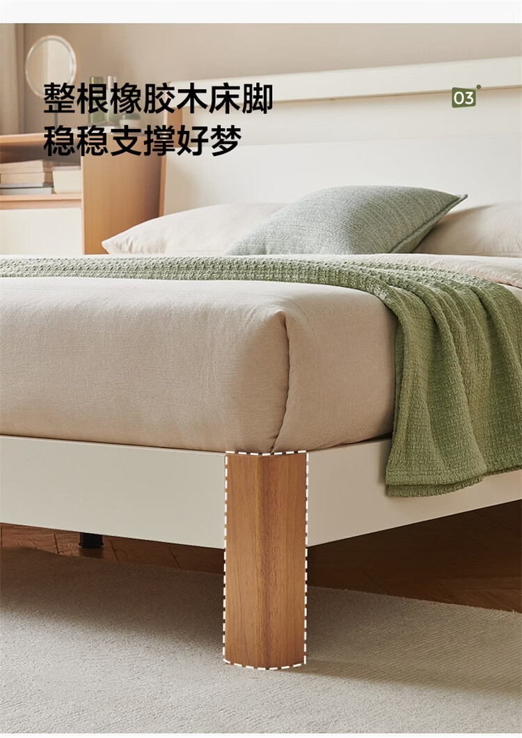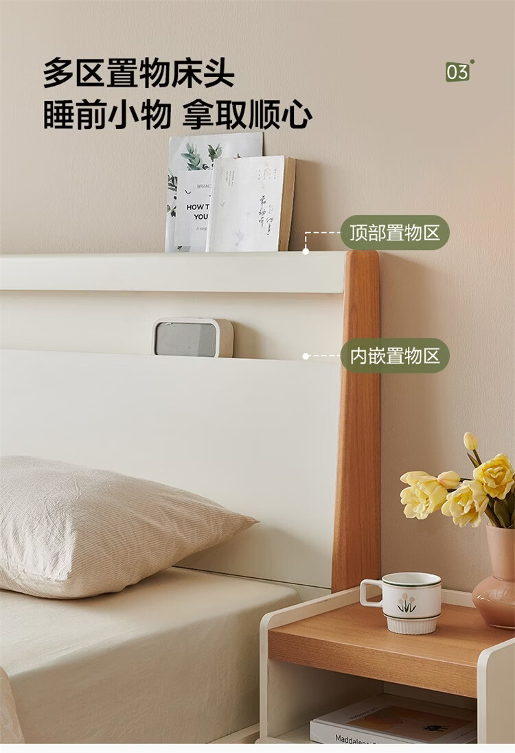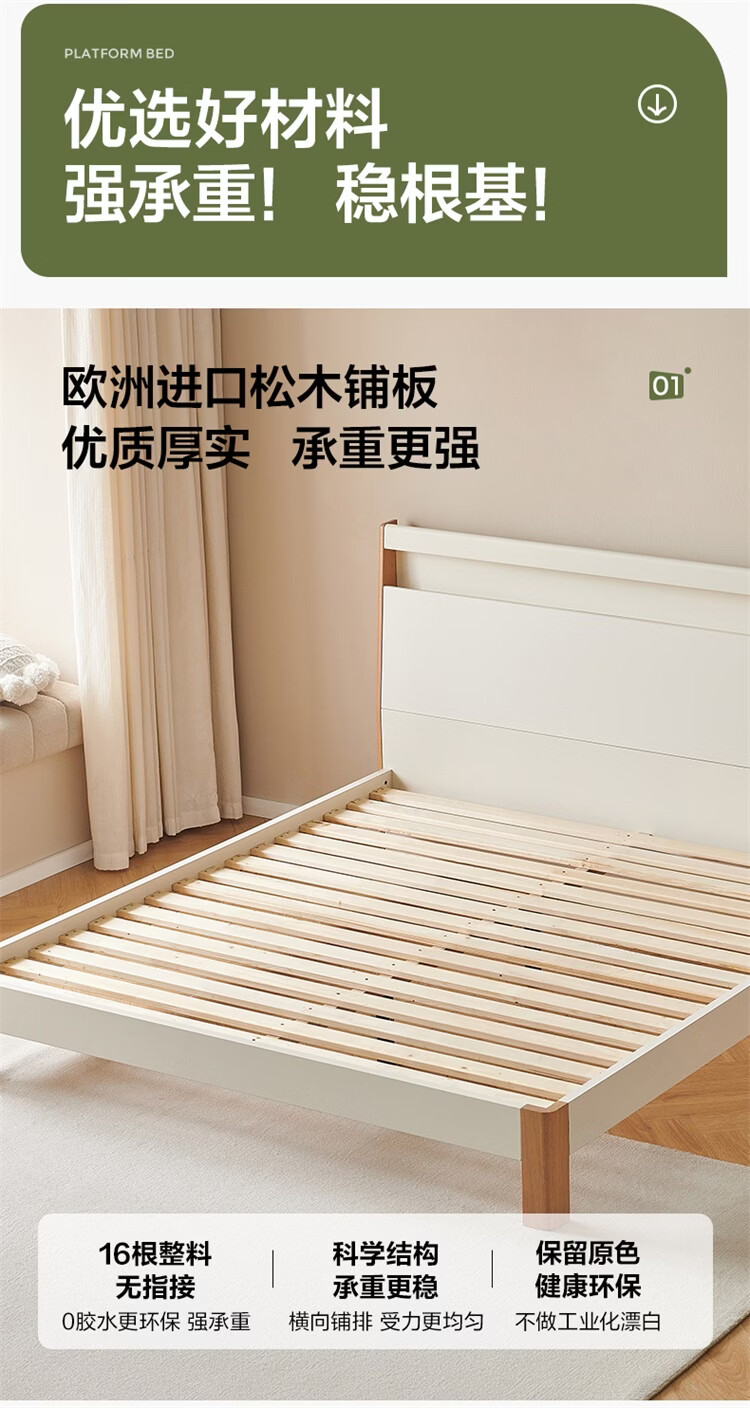 全友家居原木奶油风小户型双人床2026新款卧室出租屋床高脚床排骨架床 【奶油白+原木色】 1.5×2米 单床