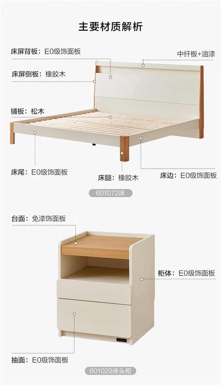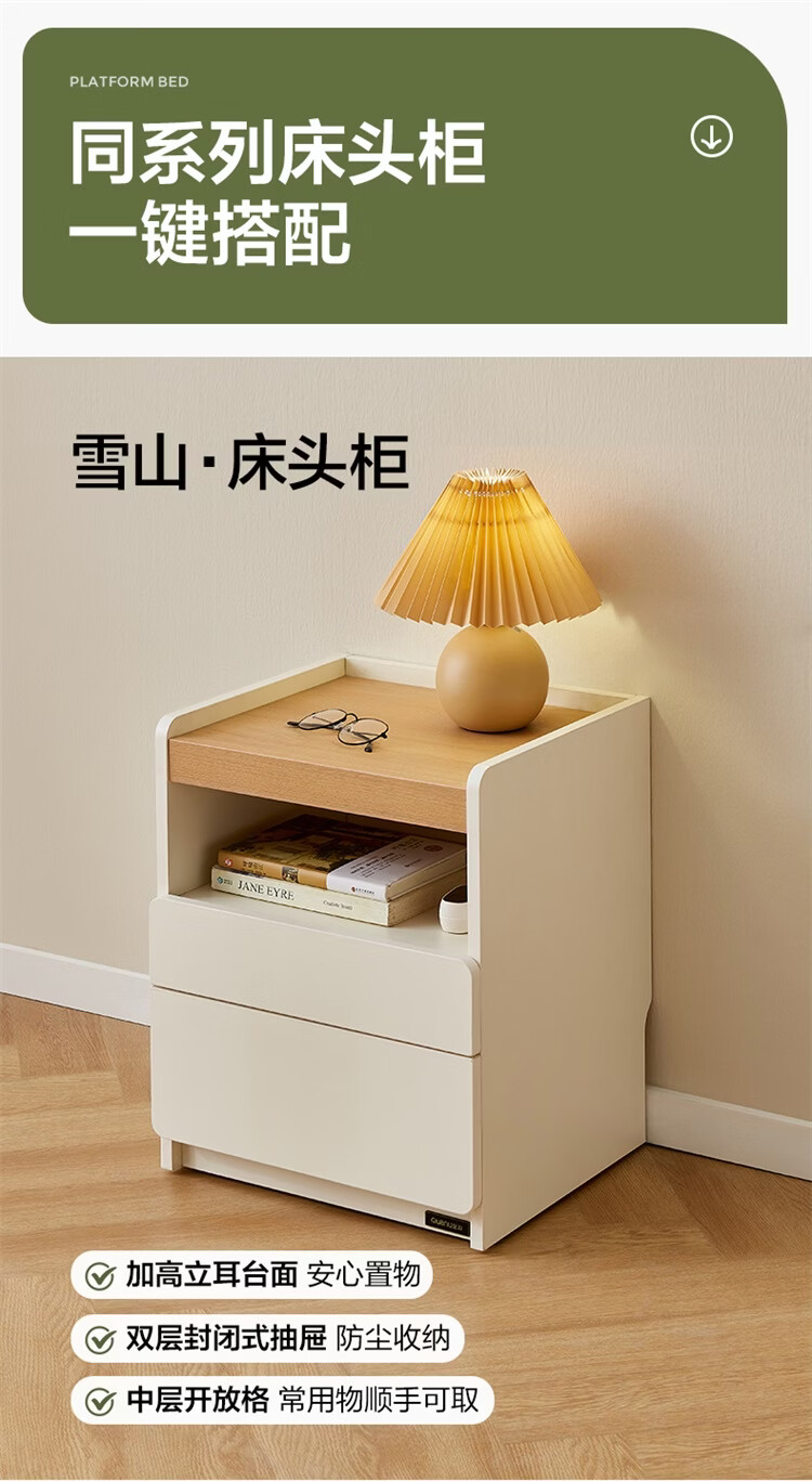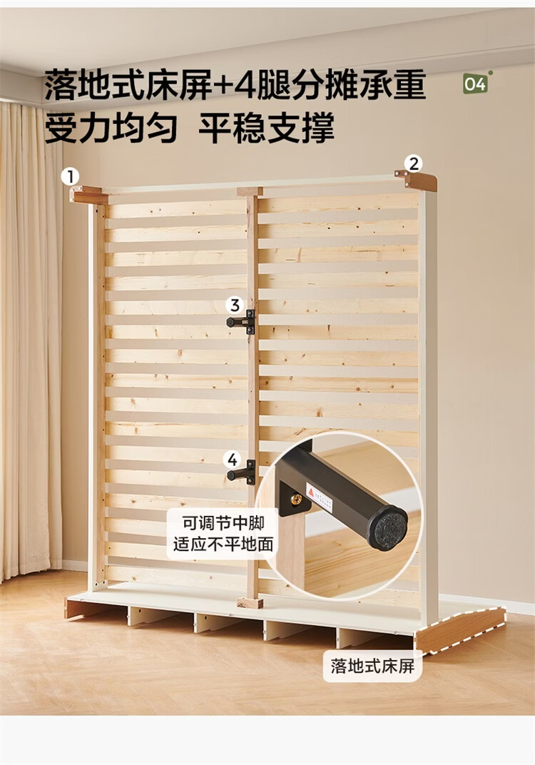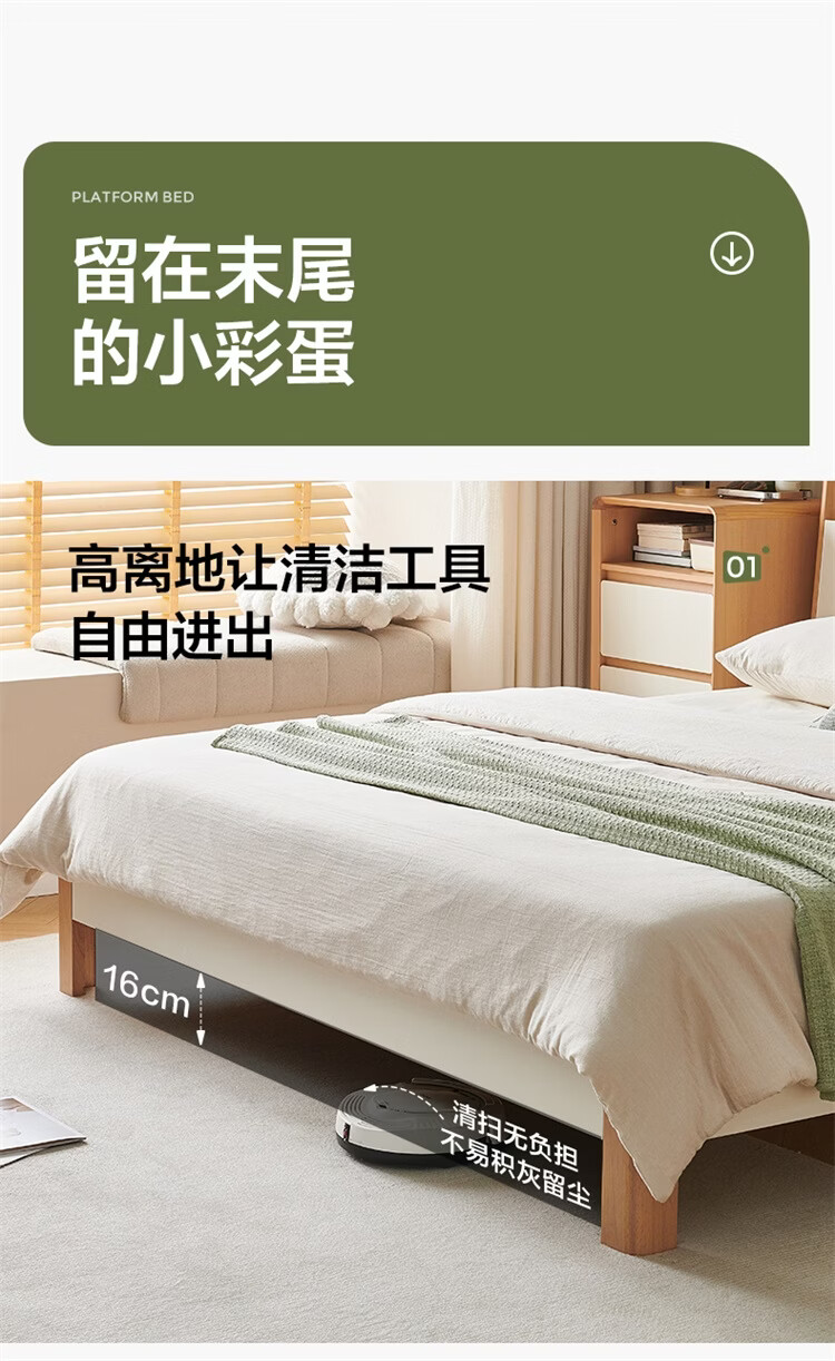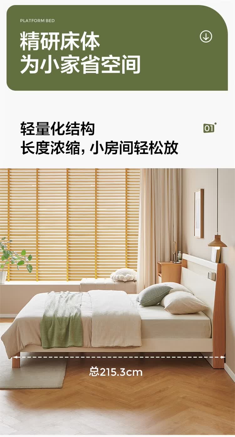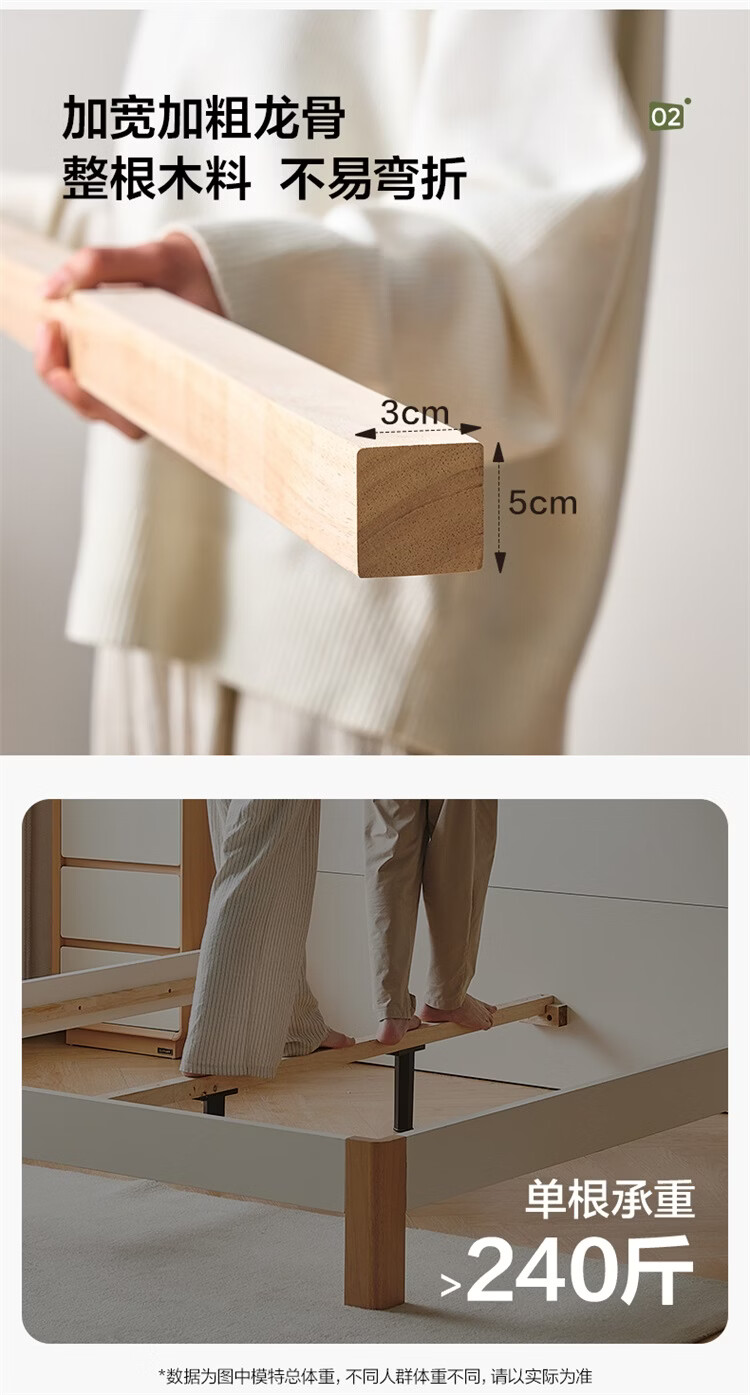 全友家居原木奶油风小户型双人床2026新款卧室出租屋床高脚床排骨架床 【奶油白+原木色】 1.5×2米 单床