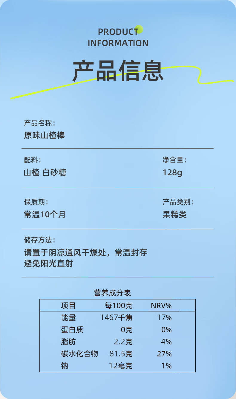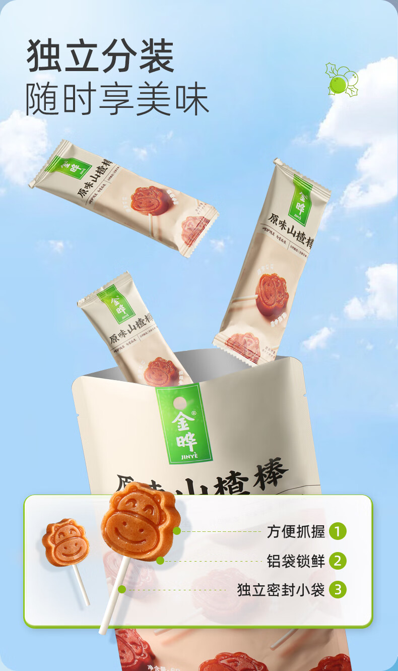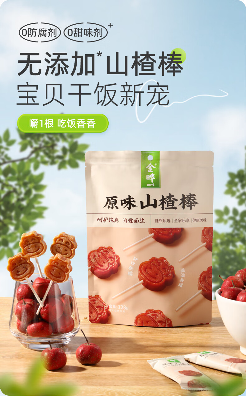 金晔 0添加剂休闲零食 蜜饯果脯小牛山楂棒棒糖独立小包装128g/袋