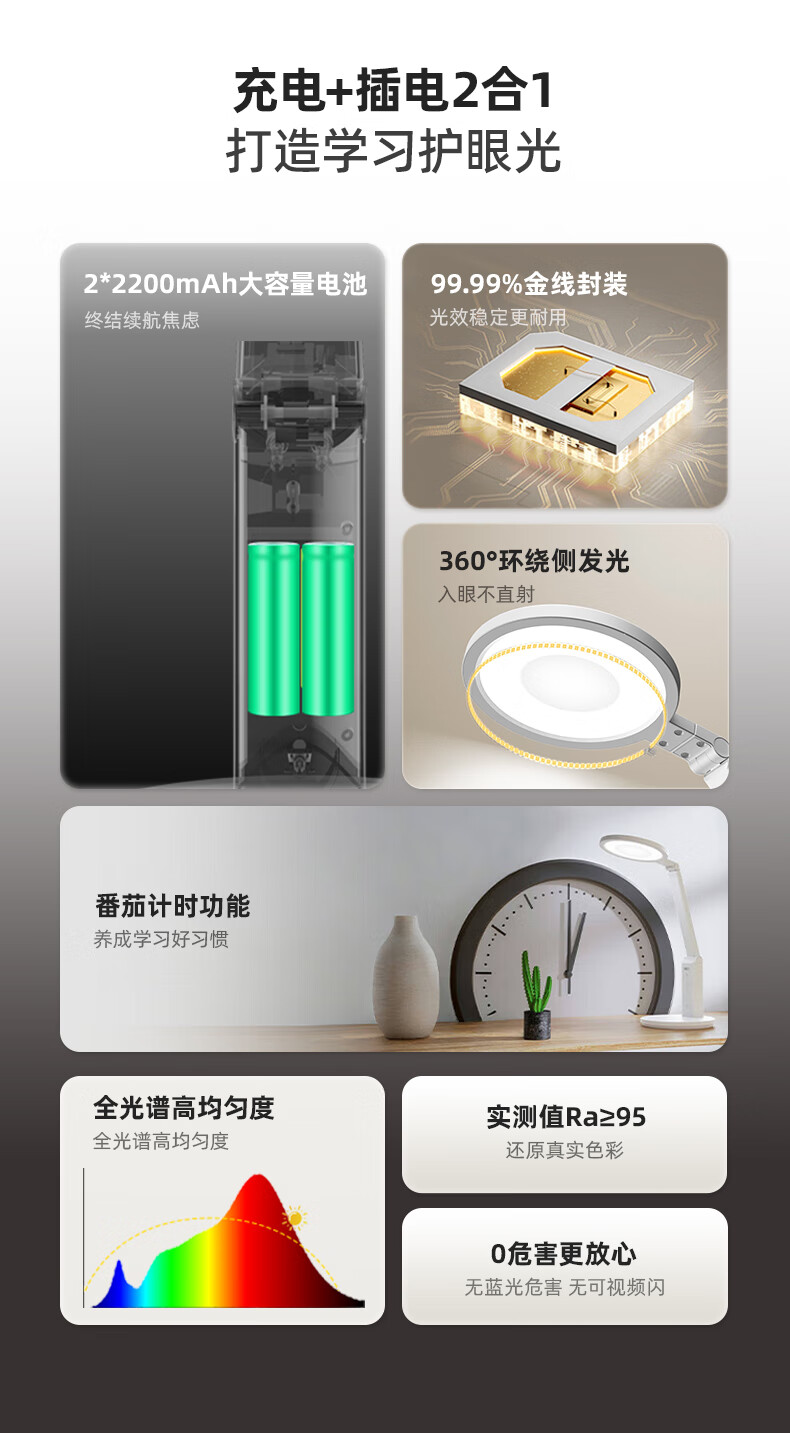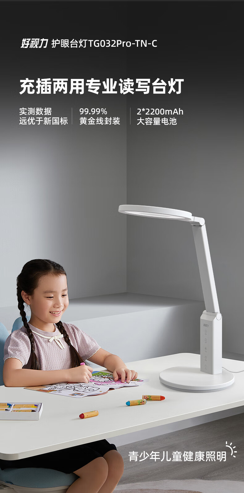 好视力学生学习台灯儿童爱眼LED卧室宿舍书桌工作阅读TG032充电版