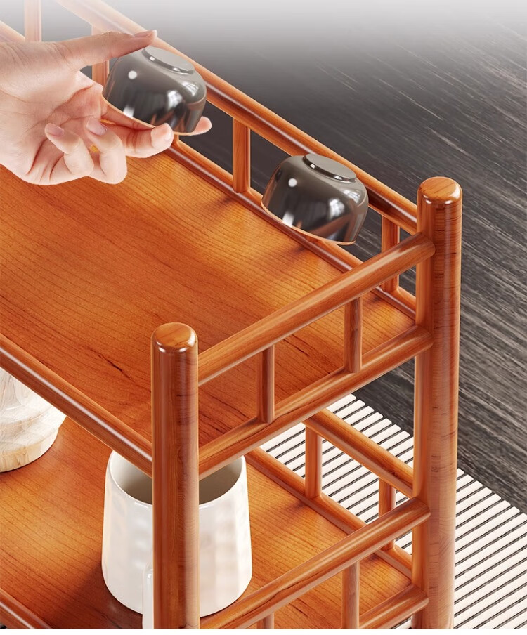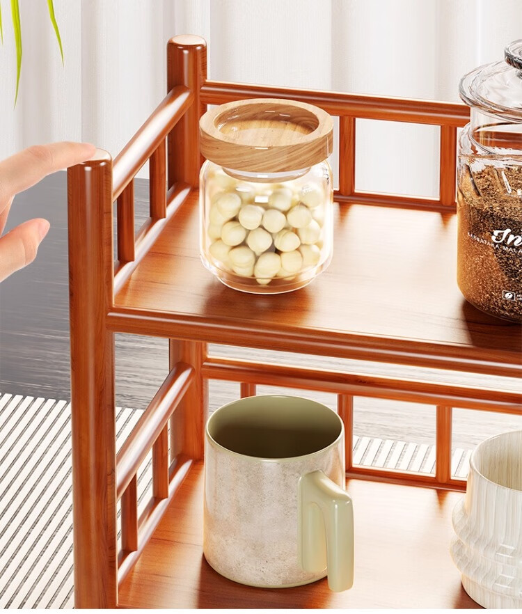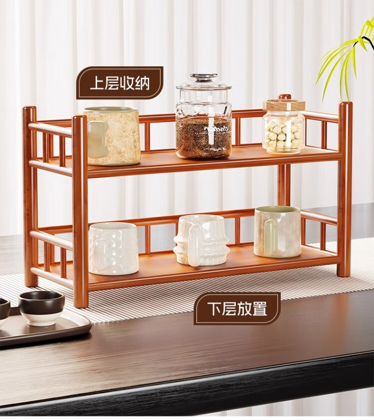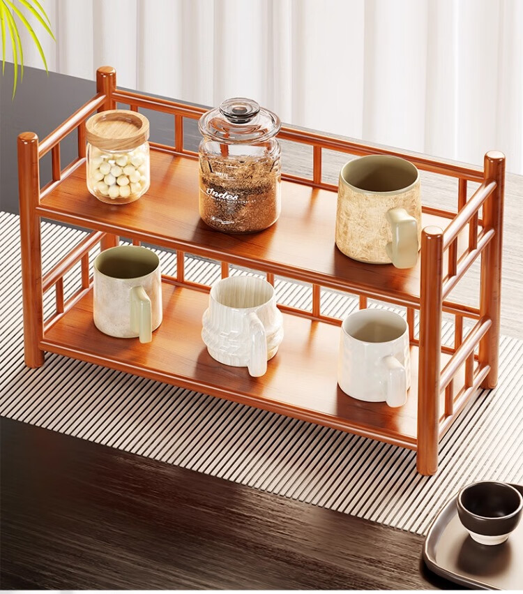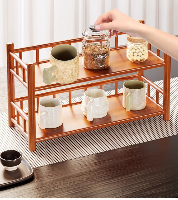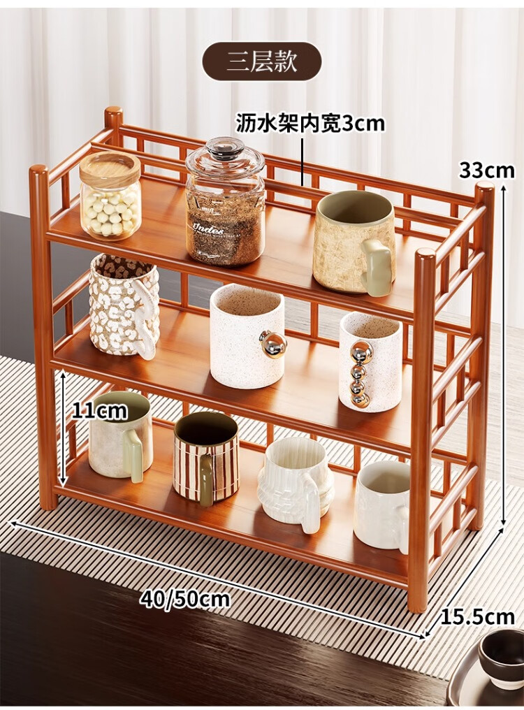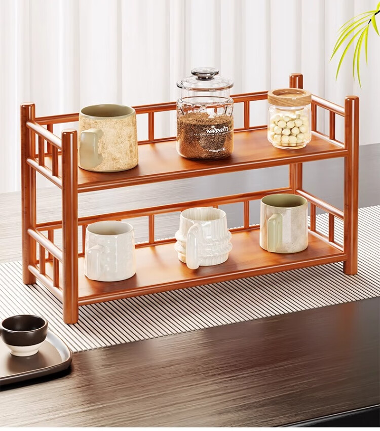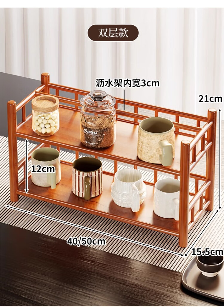 尔思家厨房置物架多层收纳架杯架桌面置物沥水架实木多功能台面水杯架 茶色双层40cm