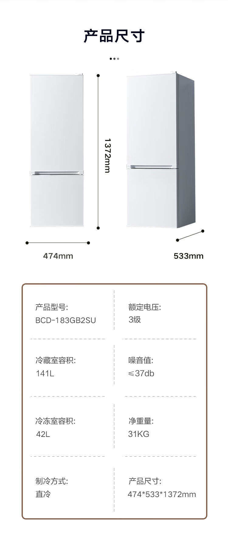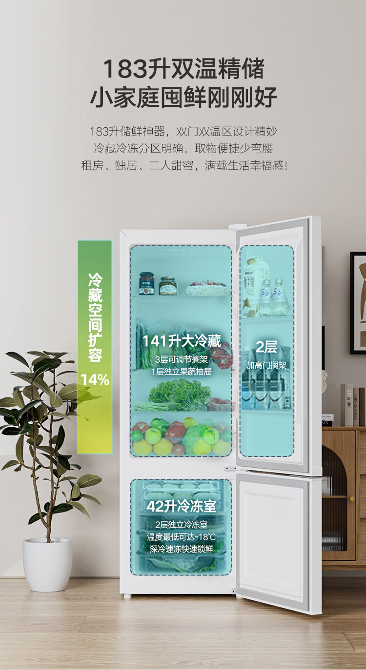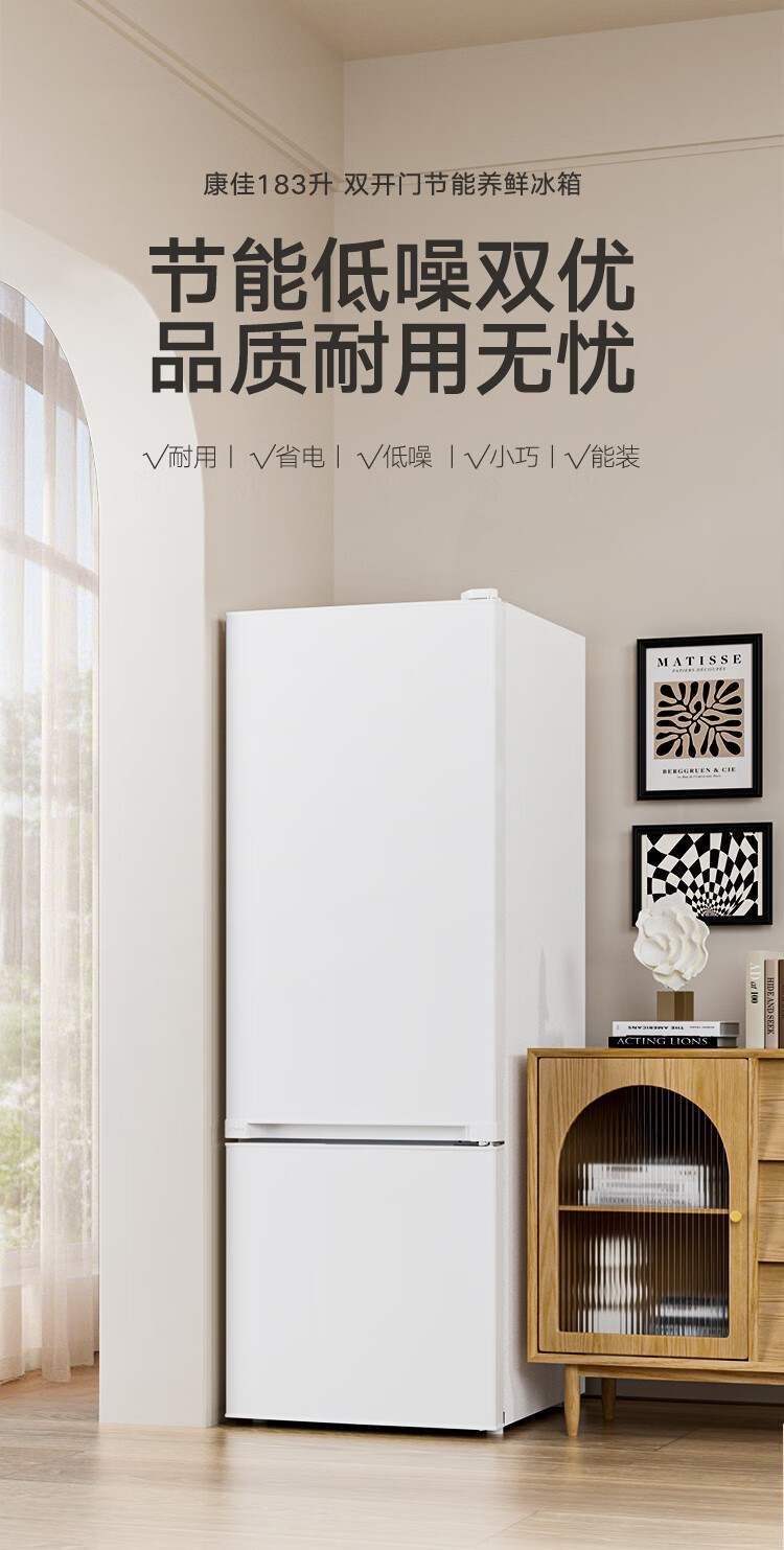 康佳183升两门冰箱小型家用出租房办公室宿舍小冰箱节能省电低音白色BCD-183GB2SU