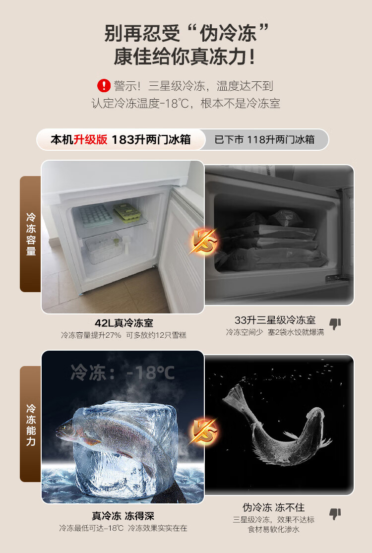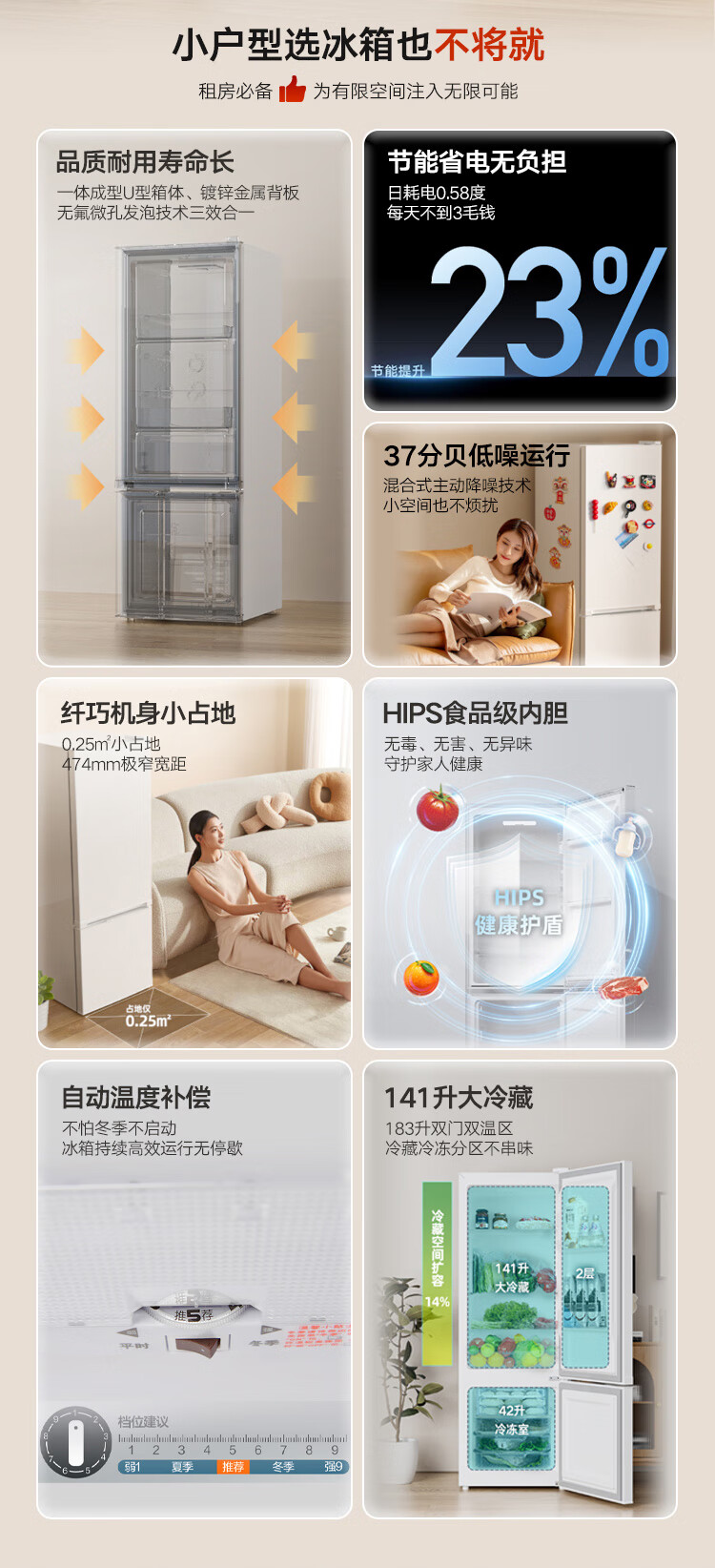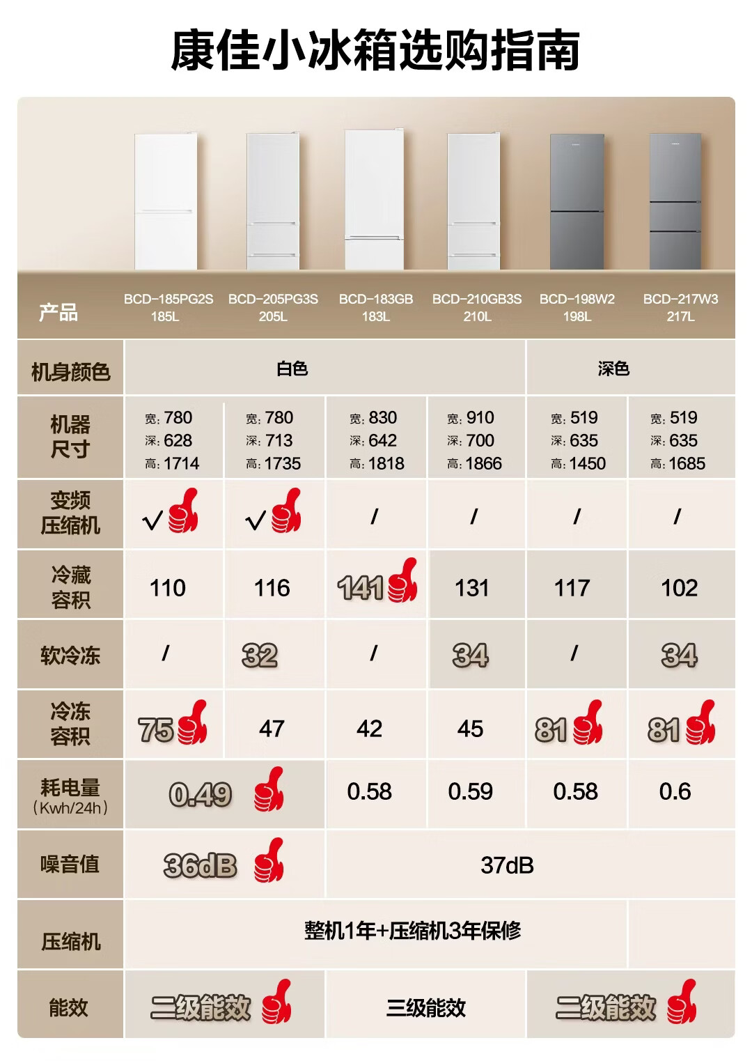 康佳183升两门冰箱小型家用出租房办公室宿舍小冰箱节能省电低音白色BCD-183GB2SU