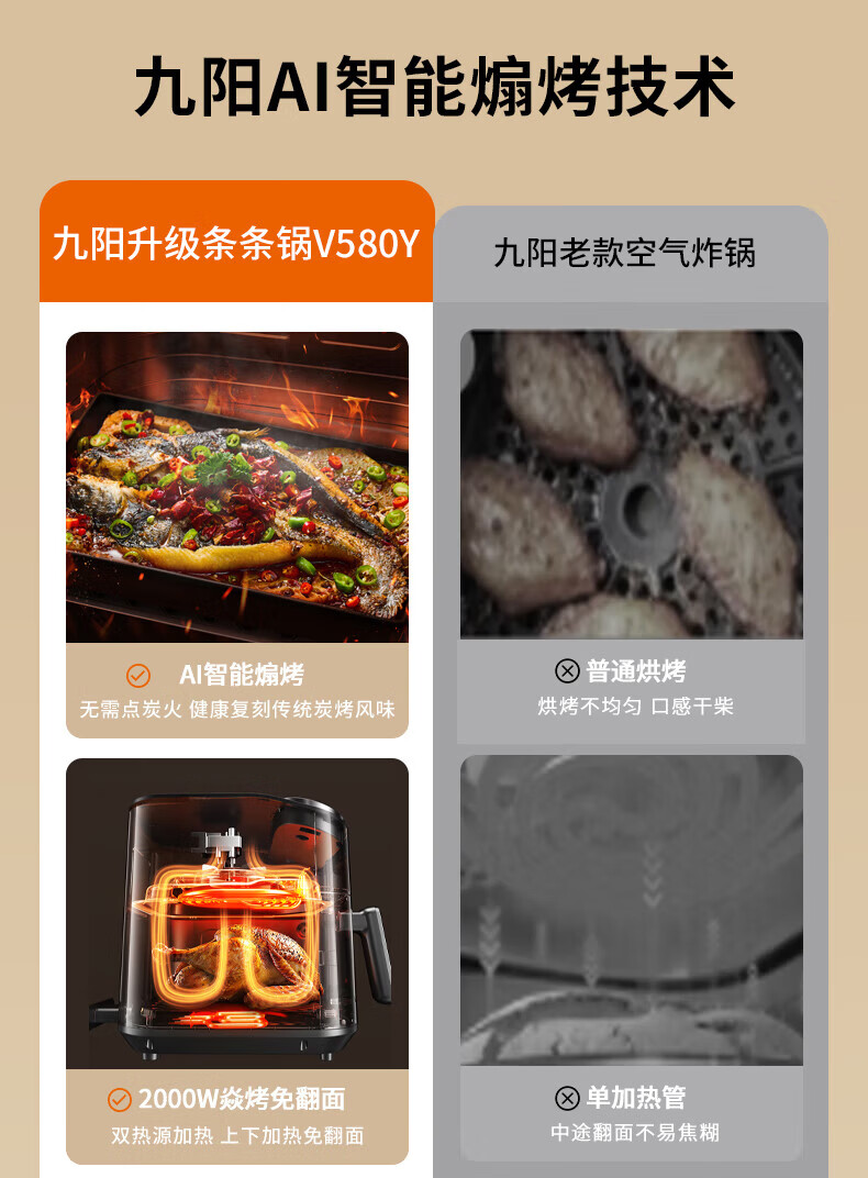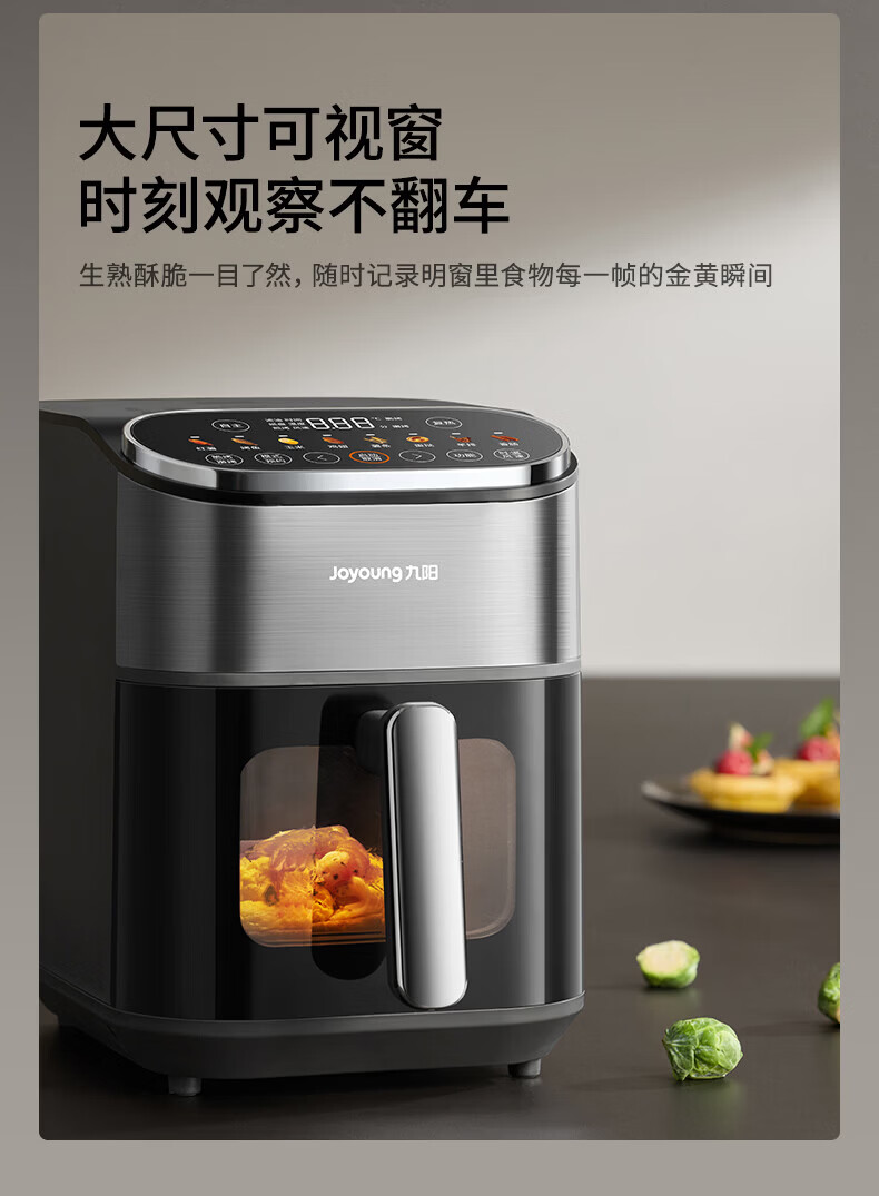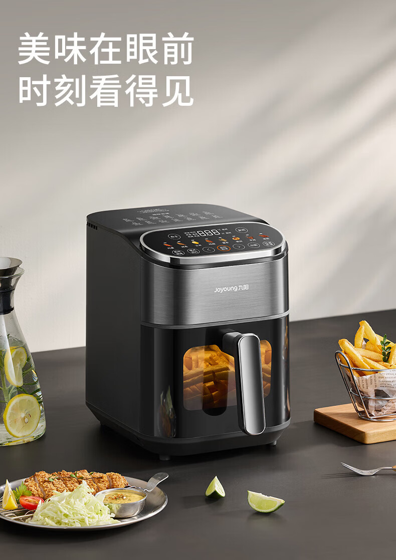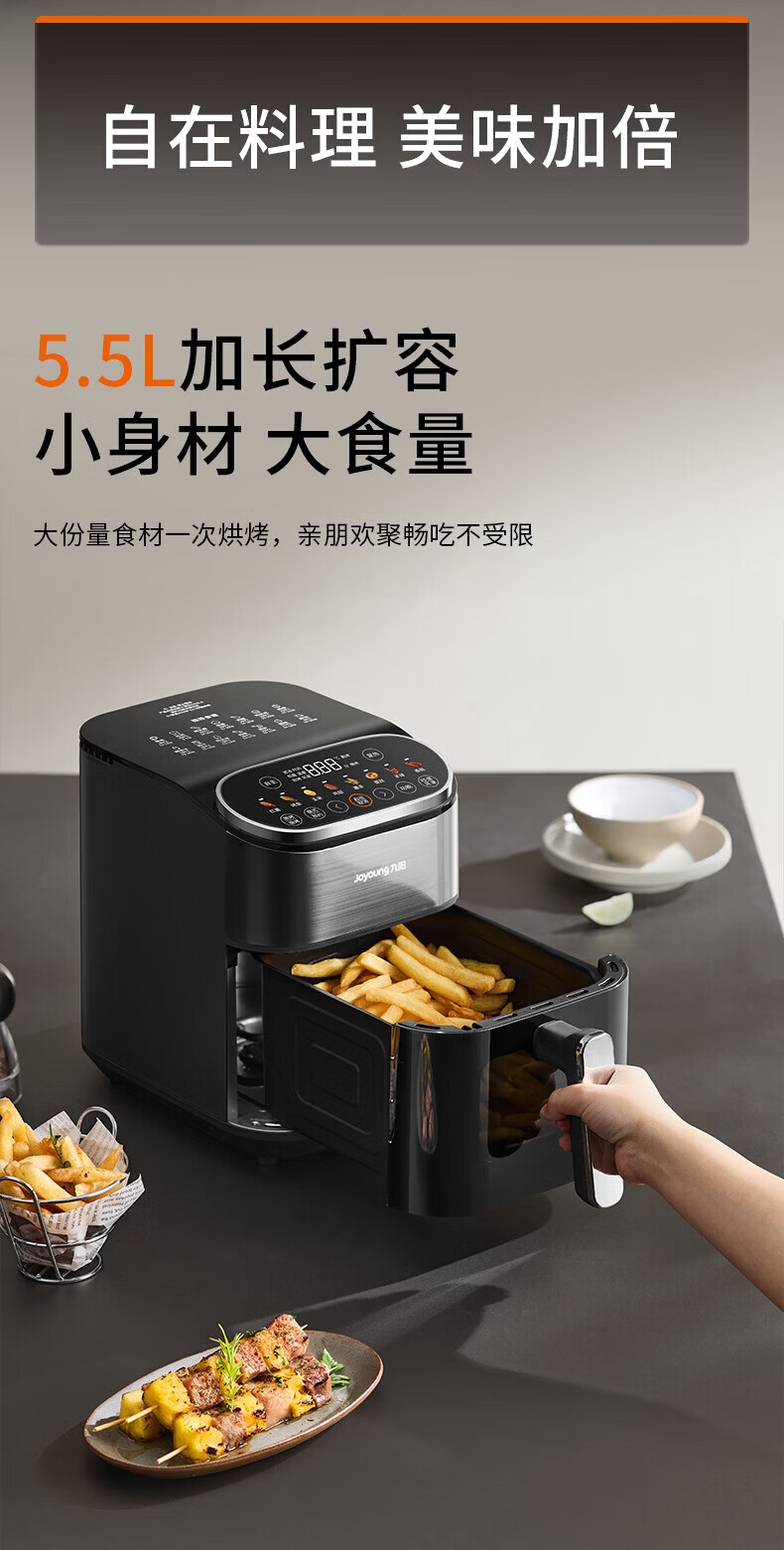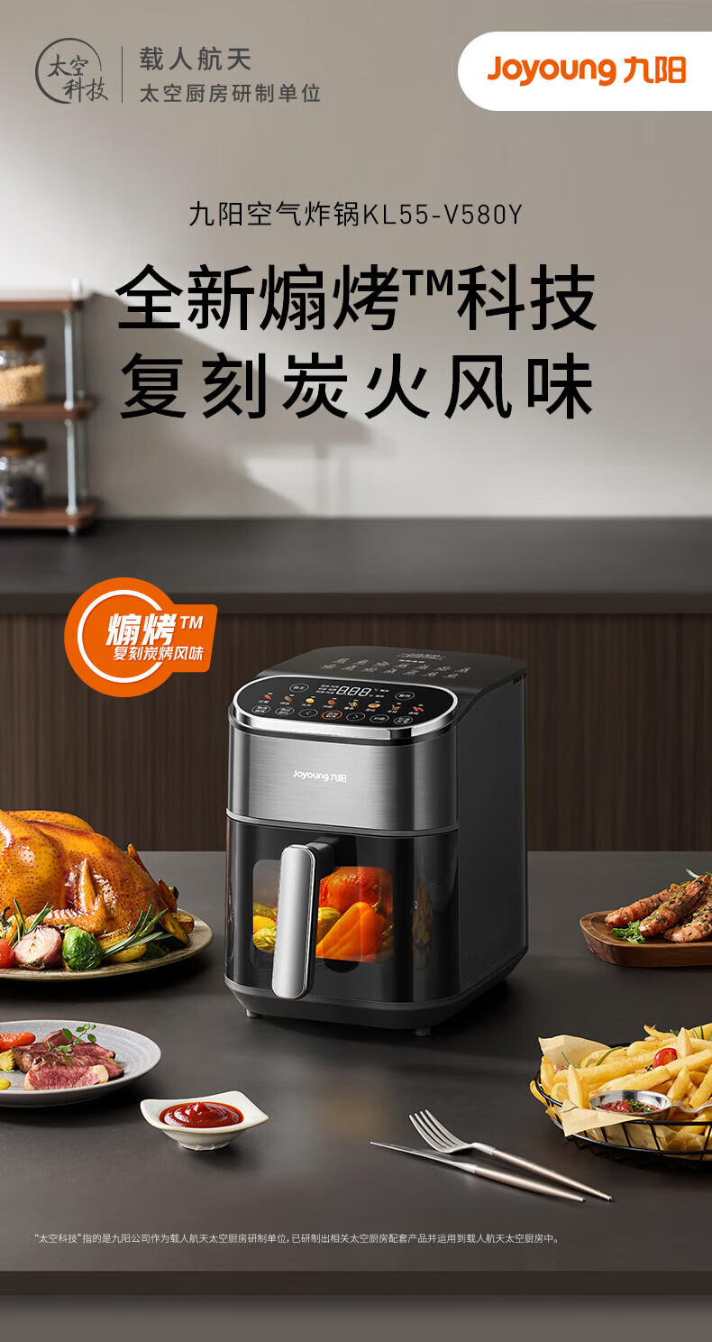 九阳空气炸锅家用可视大视窗免翻面 长条锅可烤整鸡AI烹饪 多功能 5.5L大容量蒸烤一体机 KL55-V580Y 【AI炙烤】炎烤免翻 5.5L