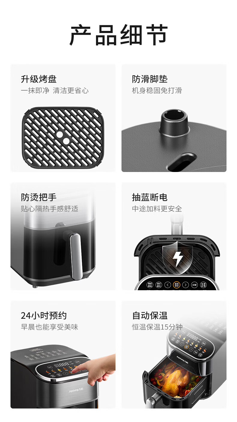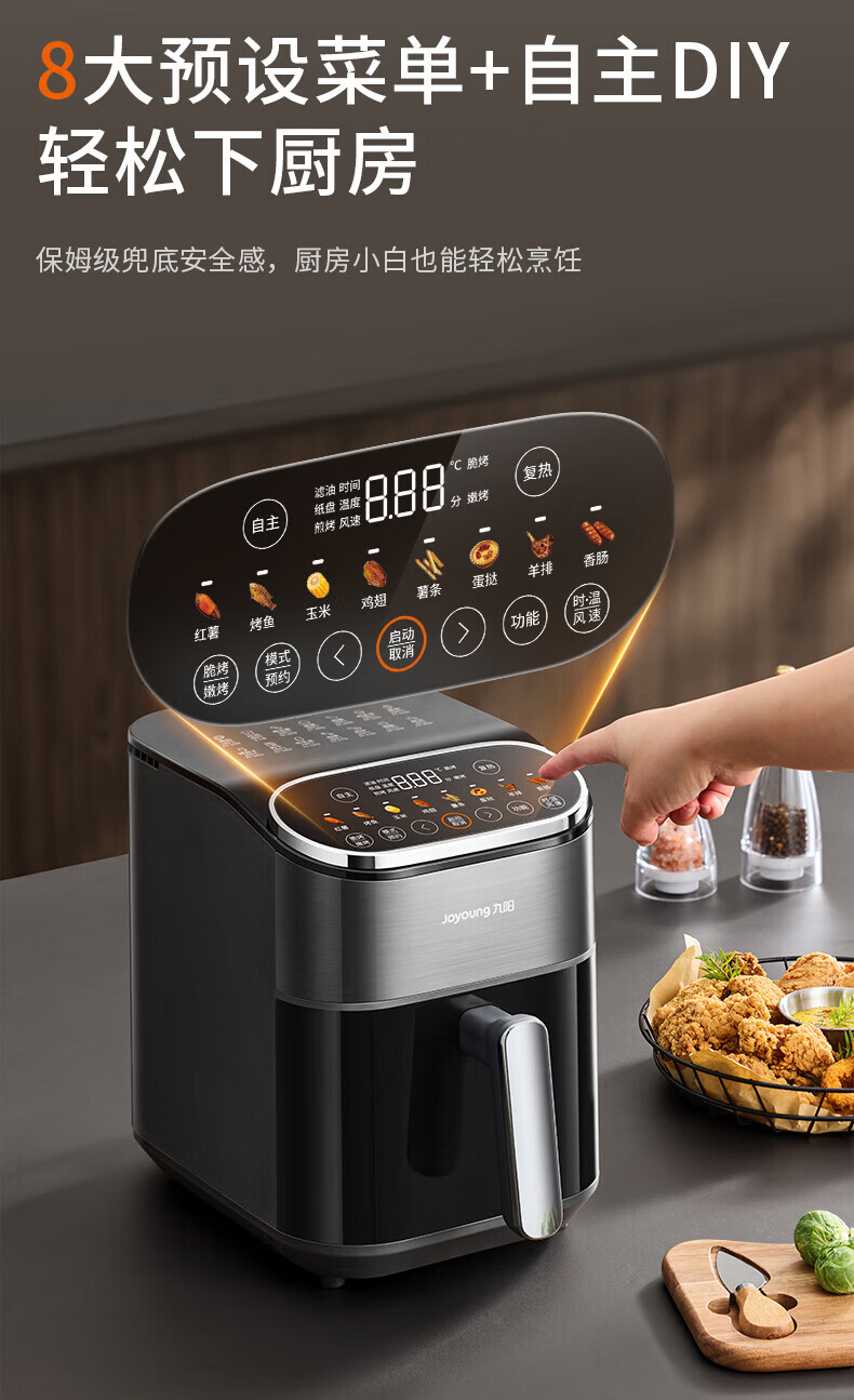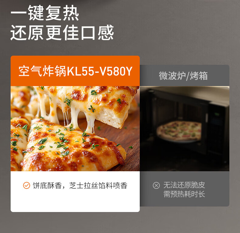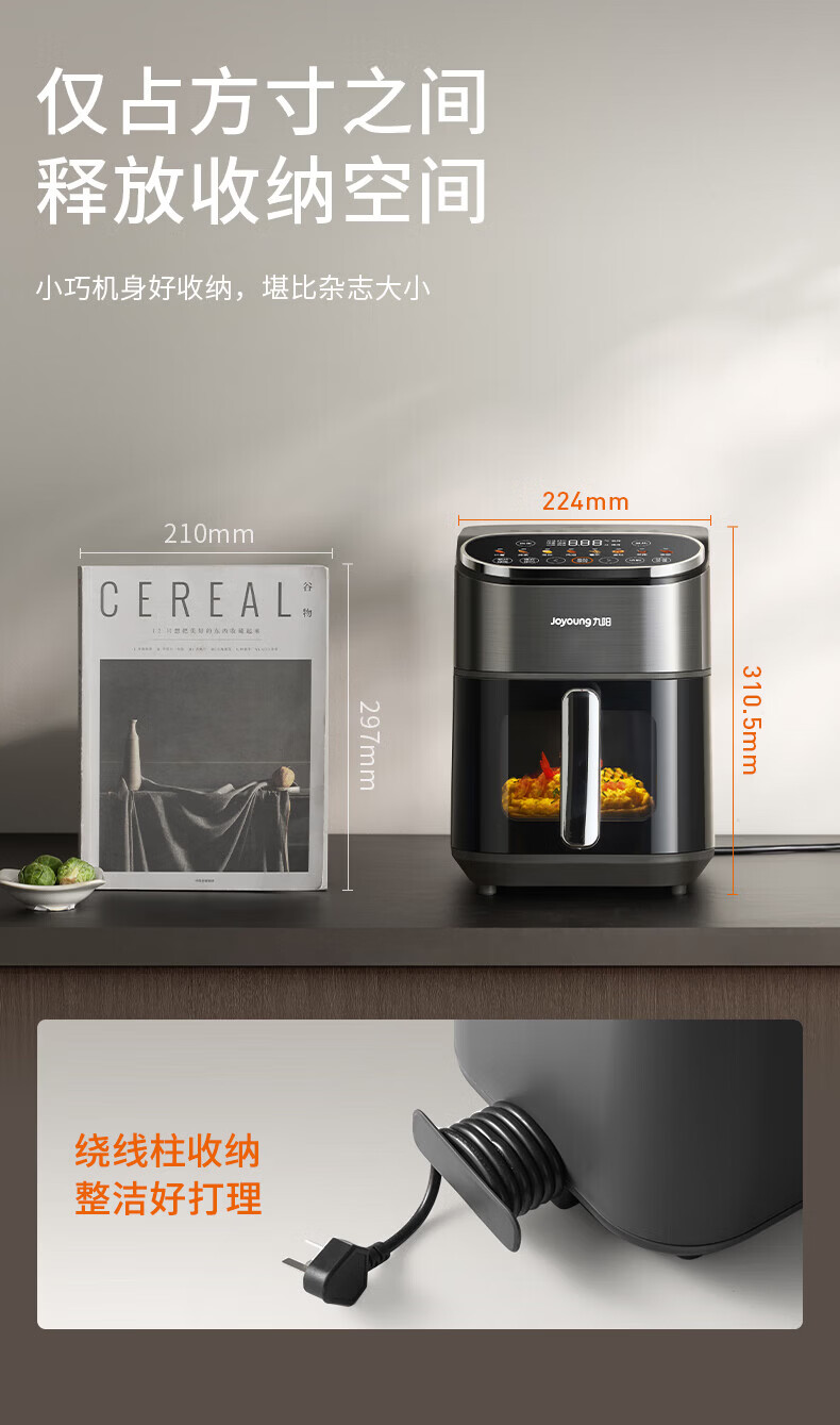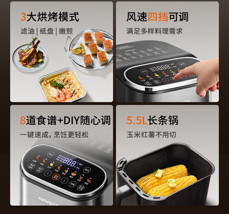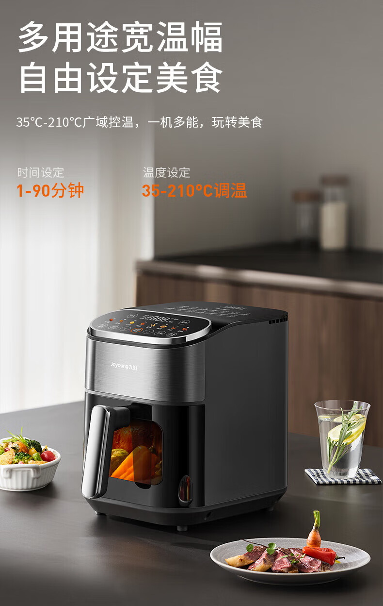 九阳空气炸锅家用可视大视窗免翻面 长条锅可烤整鸡AI烹饪 多功能 5.5L大容量蒸烤一体机 KL55-V580Y 【AI炙烤】炎烤免翻 5.5L