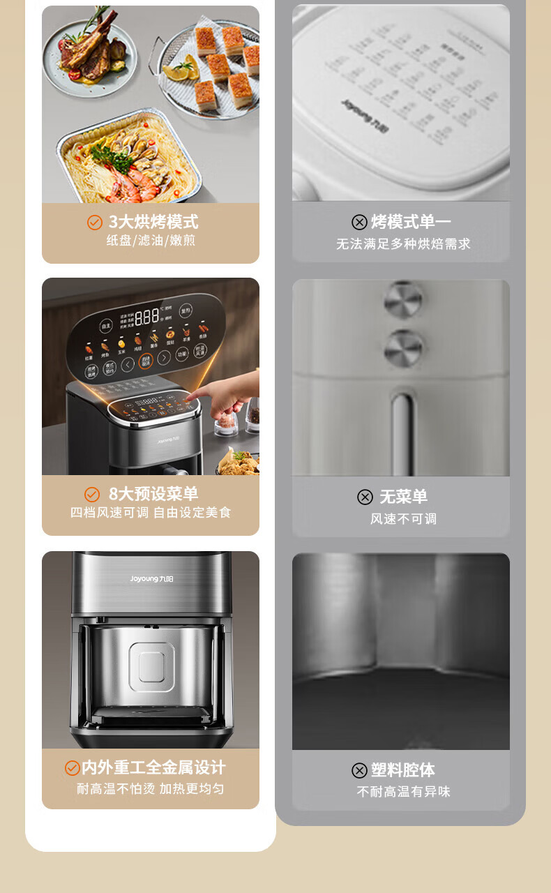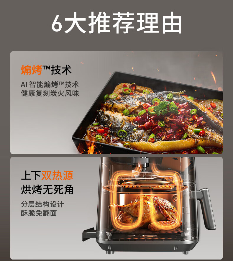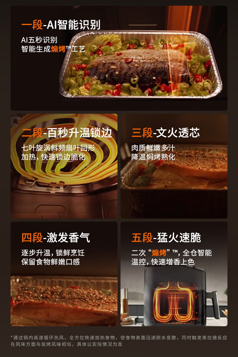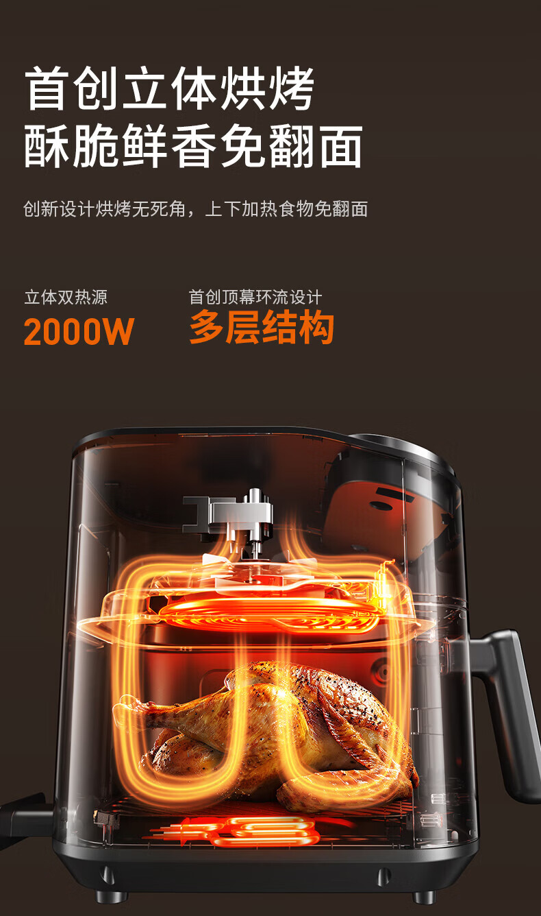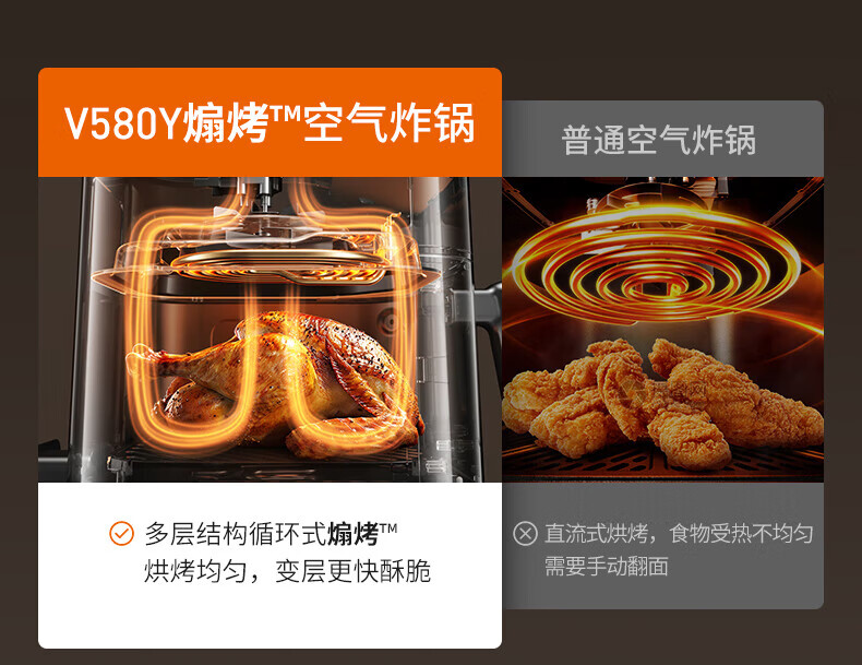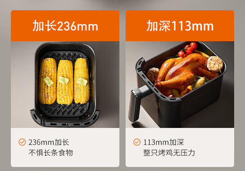 九阳空气炸锅家用可视大视窗免翻面 长条锅可烤整鸡AI烹饪 多功能 5.5L大容量蒸烤一体机 KL55-V580Y 【AI炙烤】炎烤免翻 5.5L