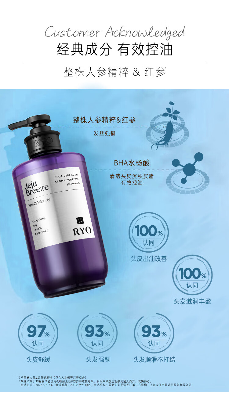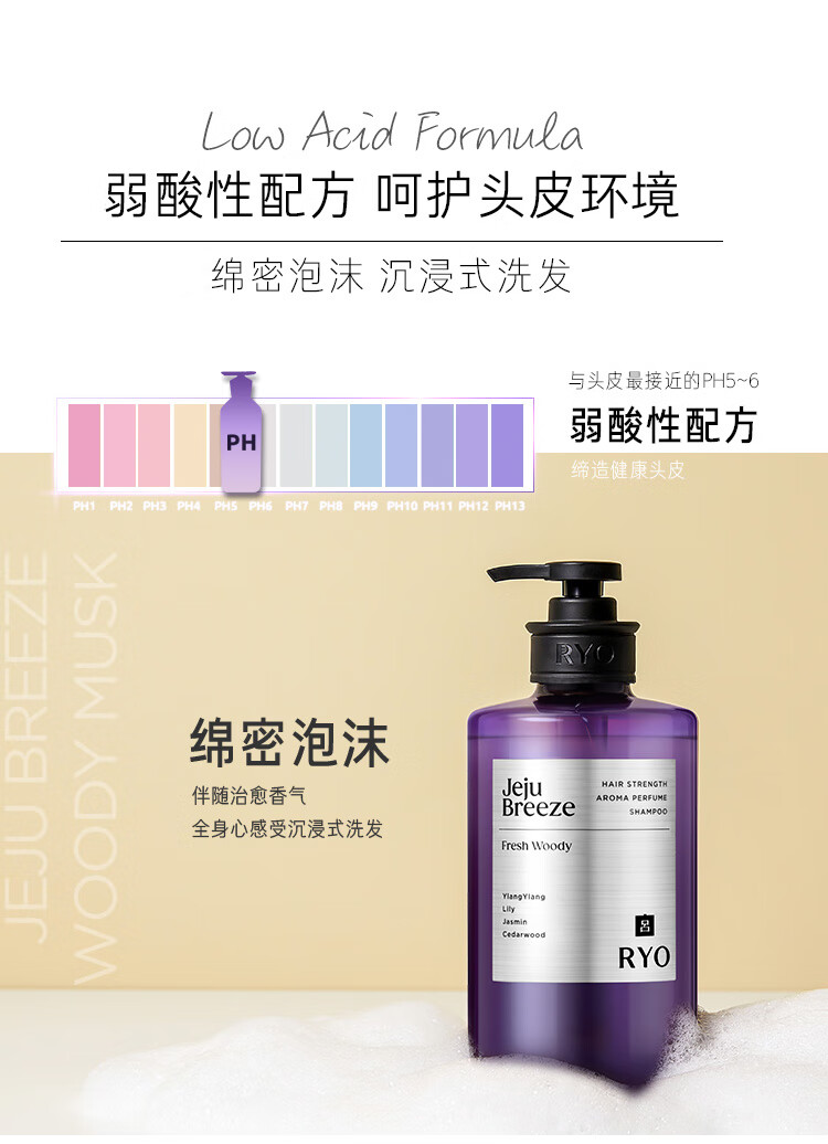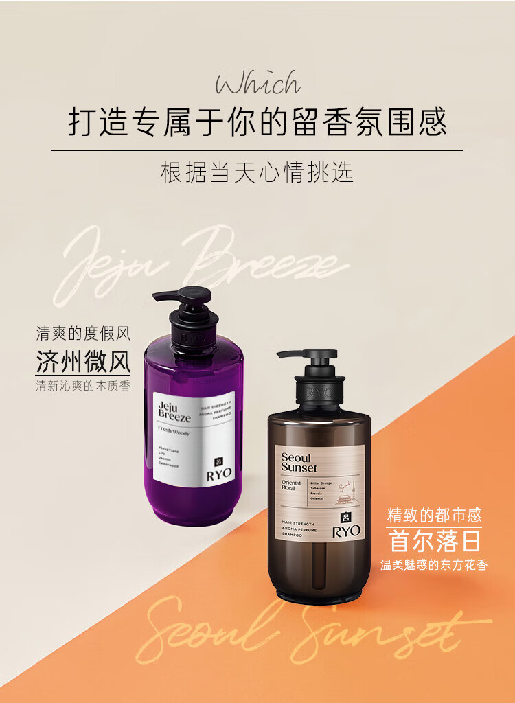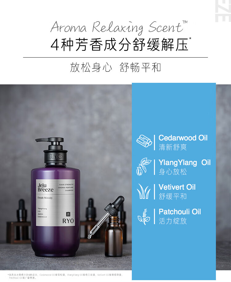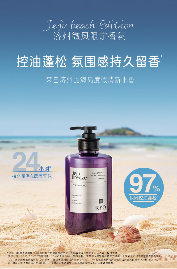 吕(Ryo)香氛吕济州微风香氛洗发水580ml*2 木质香控油蓬松洗发膏持久留香