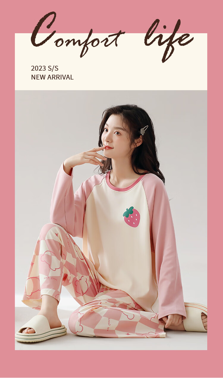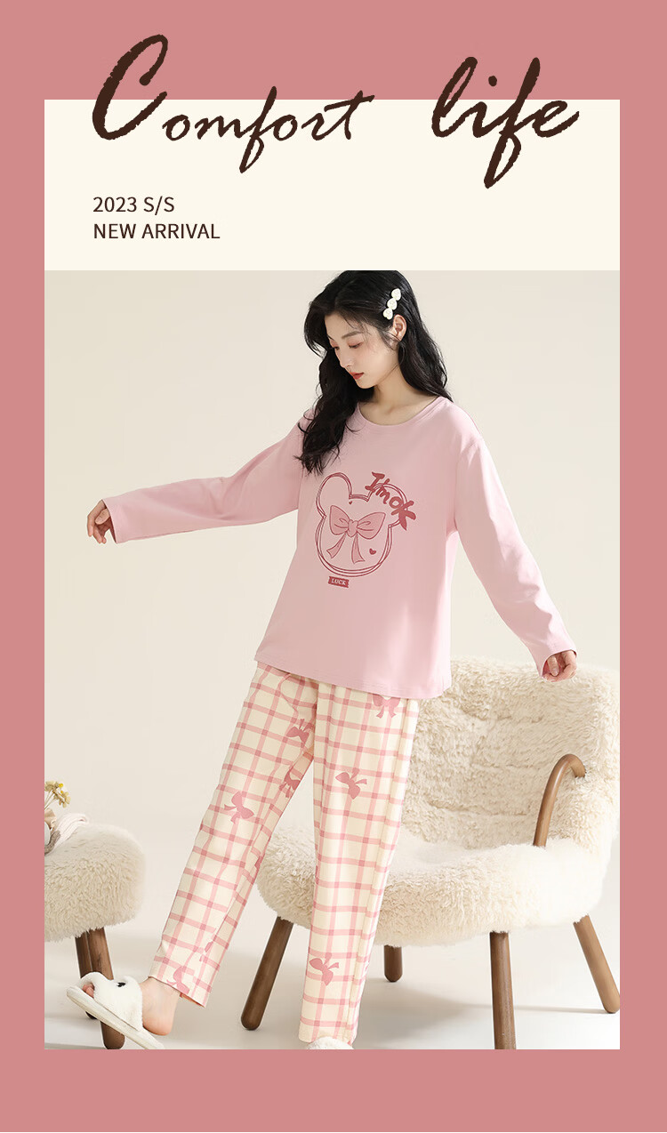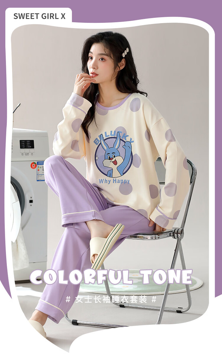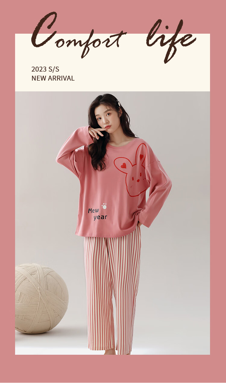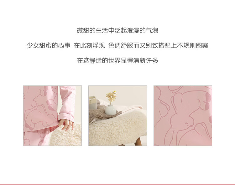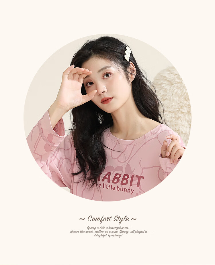 洁丽雅(grace)睡衣女舒适居家春夏季长袖长裤宽松可外穿女士家居服套装 圆领小兔 L 【建议100-120斤】