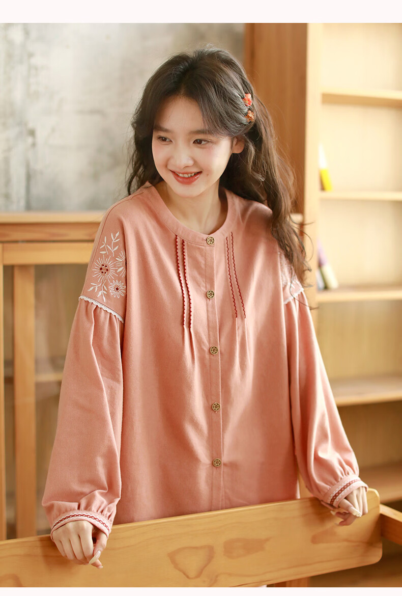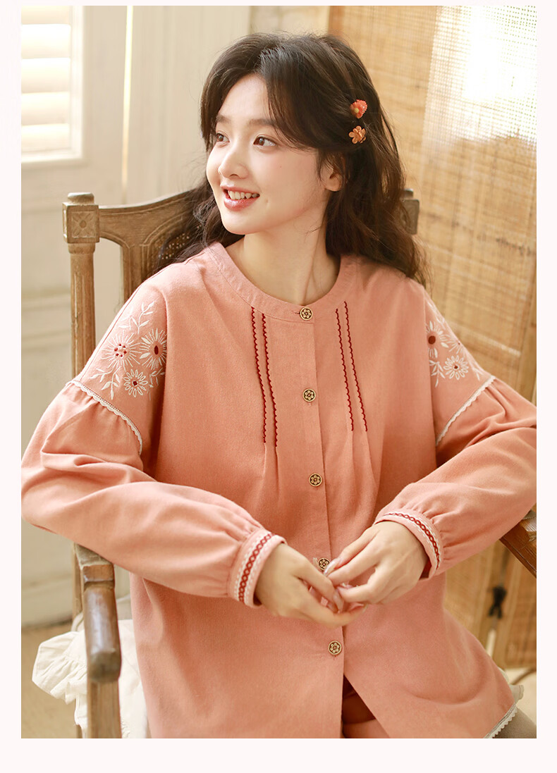 蔓秋 MEJU花茗长袖长裤家居服套装女士 绿色 M 115斤以内
