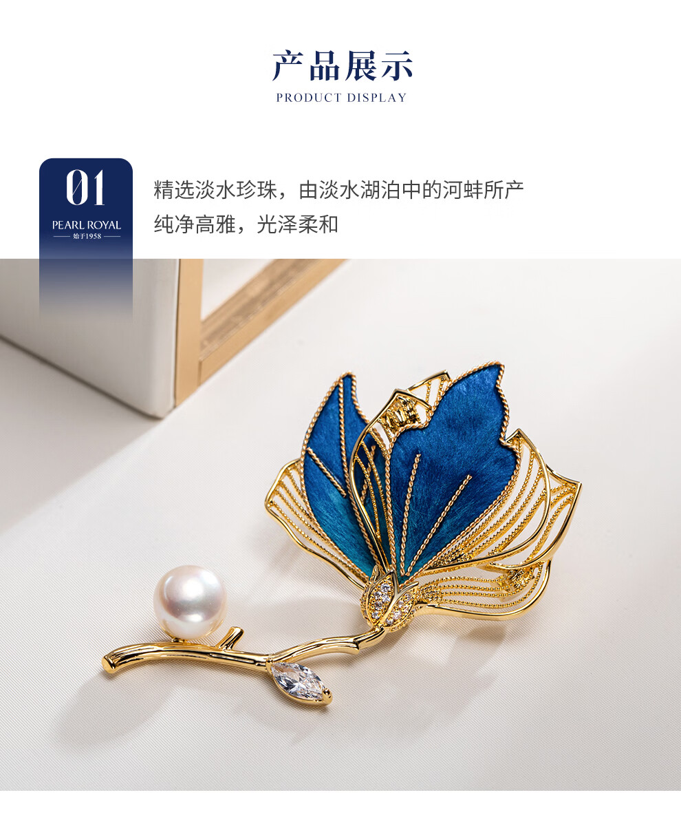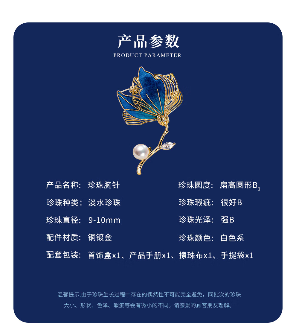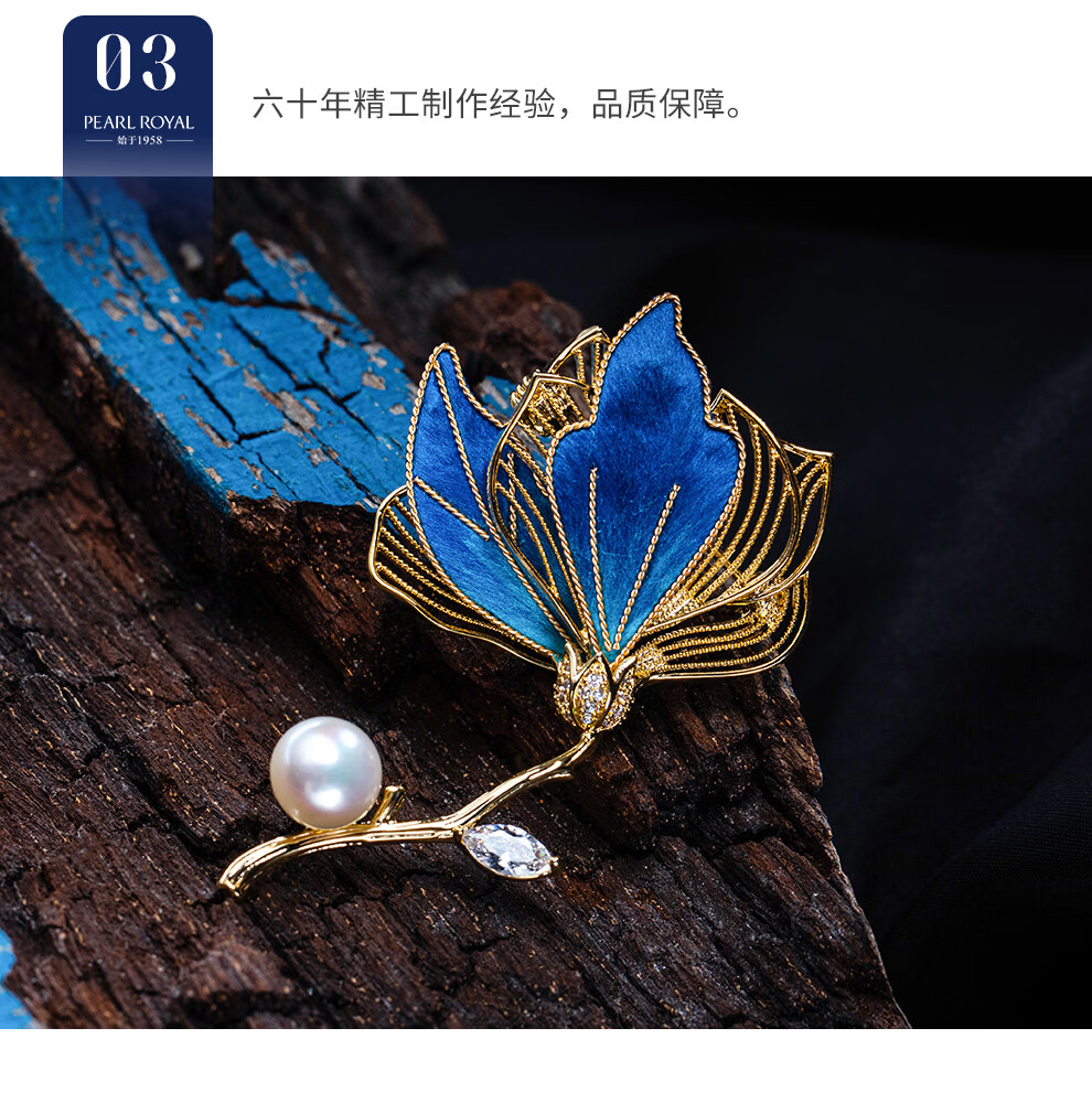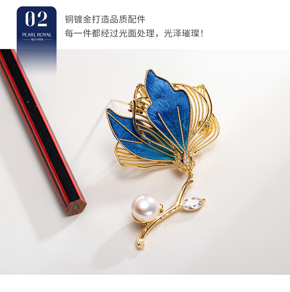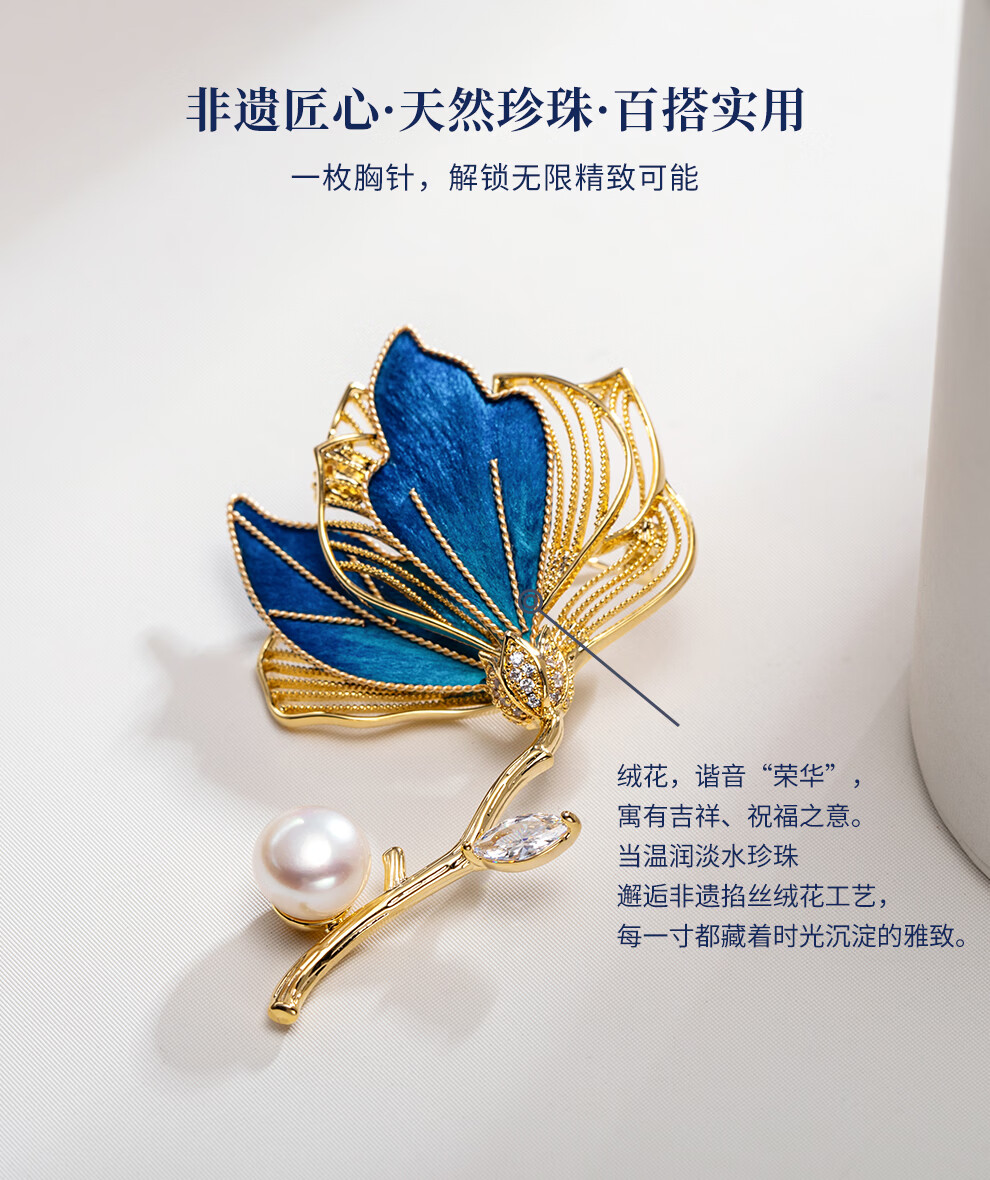 南珠宫丝绒花淡水珍珠胸针优雅百搭新年礼物送礼女H104D-J 9.0-10.0mm