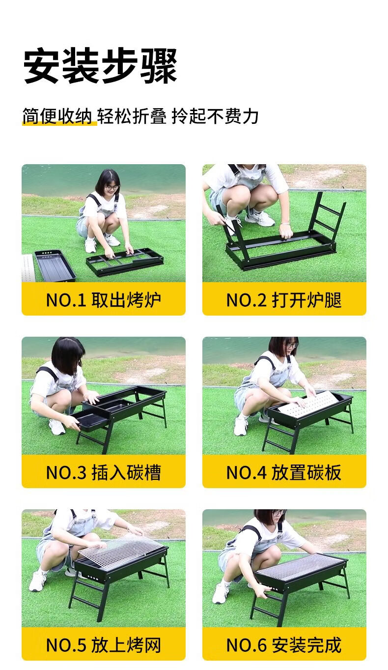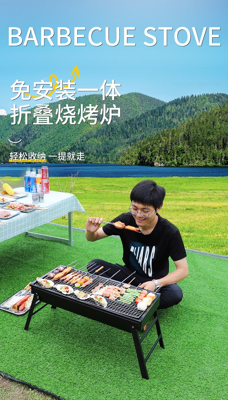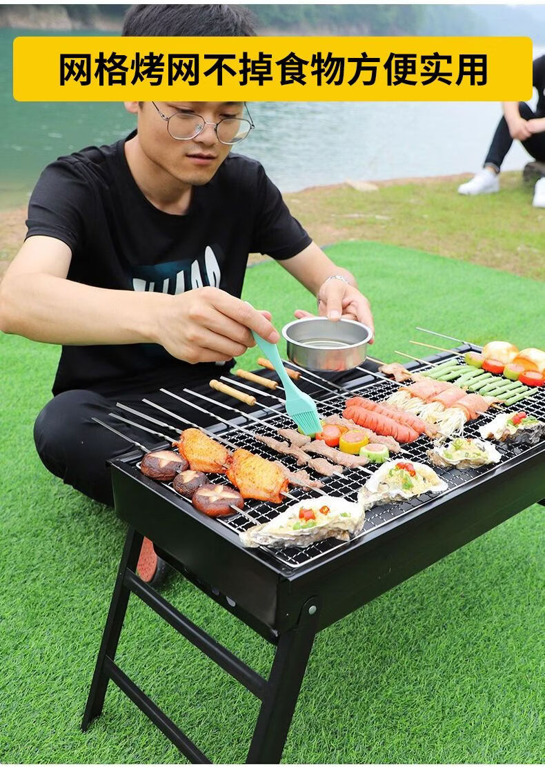 杰米仕烧烤架户外烧烤炉家用炉子庭院折叠便携式烤肉架全套烧烤用品木炭 【限时热卖中】小号60*22套餐一方格网