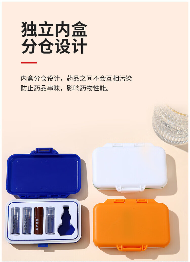 通用心梗急救药盒三合一急救药品套装脑梗药包防潮独立保健盒便携随身 白色【仅为盒子,没有药和葫芦瓶】 10*7*1.5cm【仅为盒子,没有药和葫芦瓶】