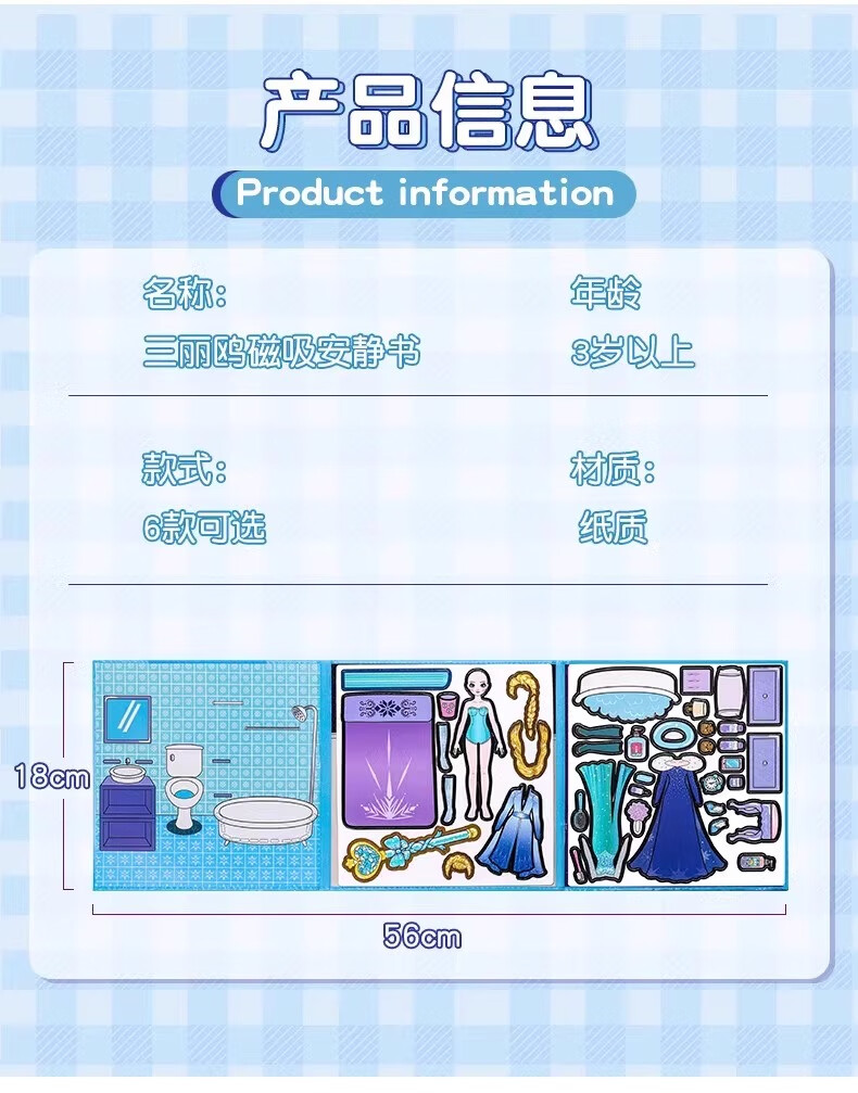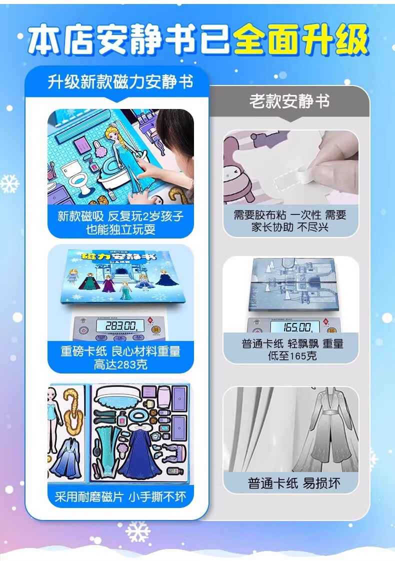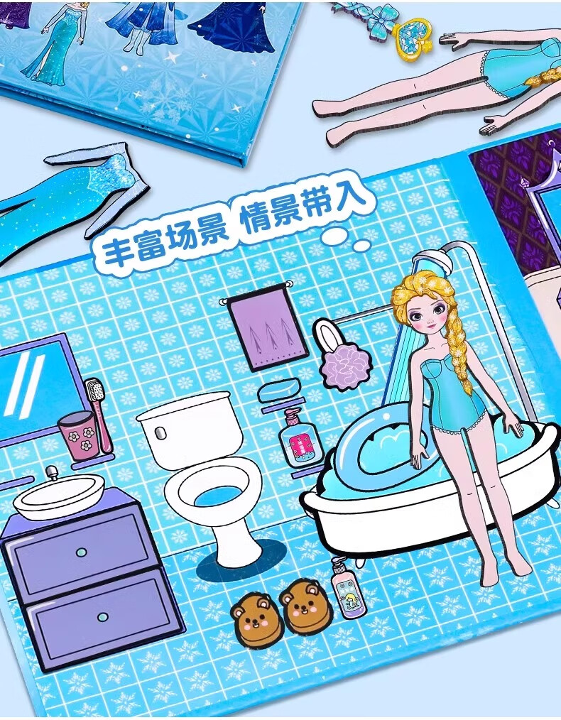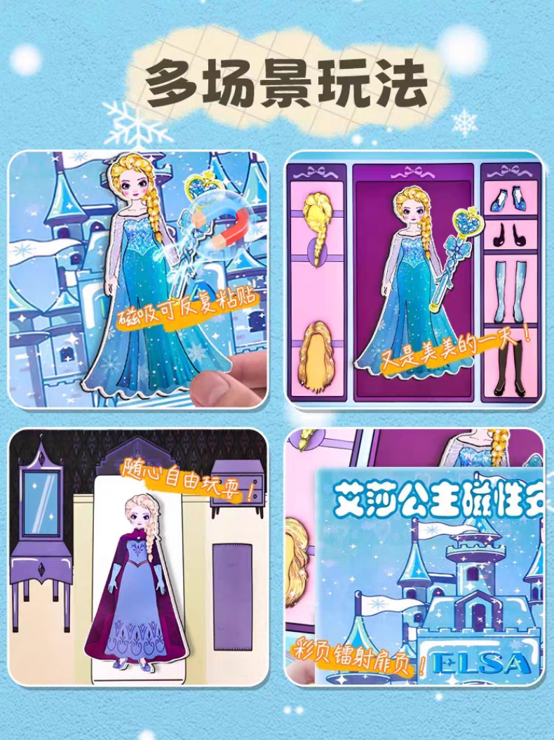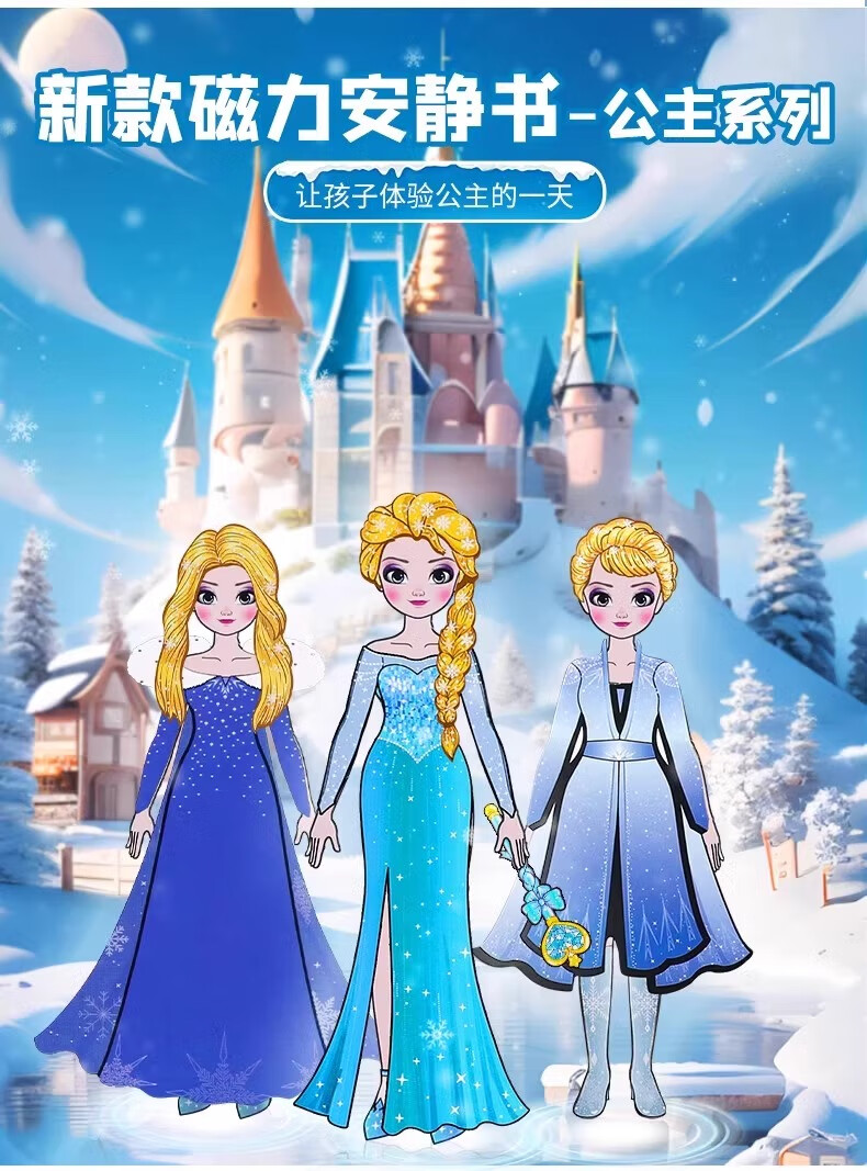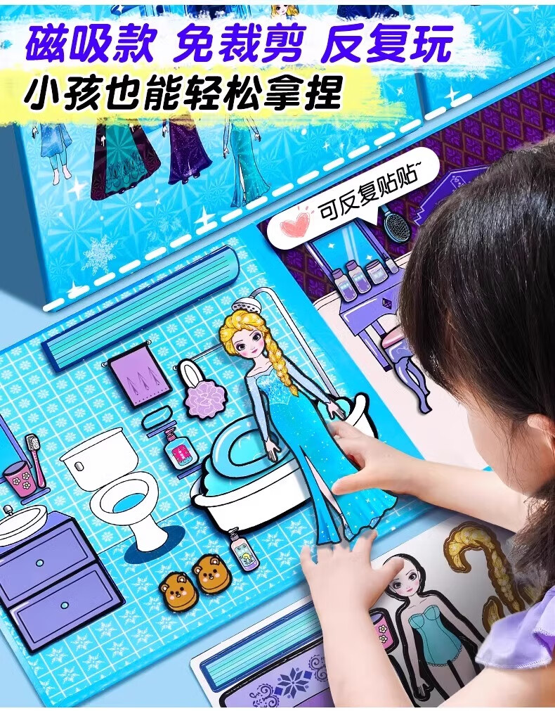 漫叮熊磁力安静书女孩豪华版 爱莎公主免剪裁磁吸贴纸 艾莎换装儿童手工 【强磁2本】美人鱼公主+芭比公主
