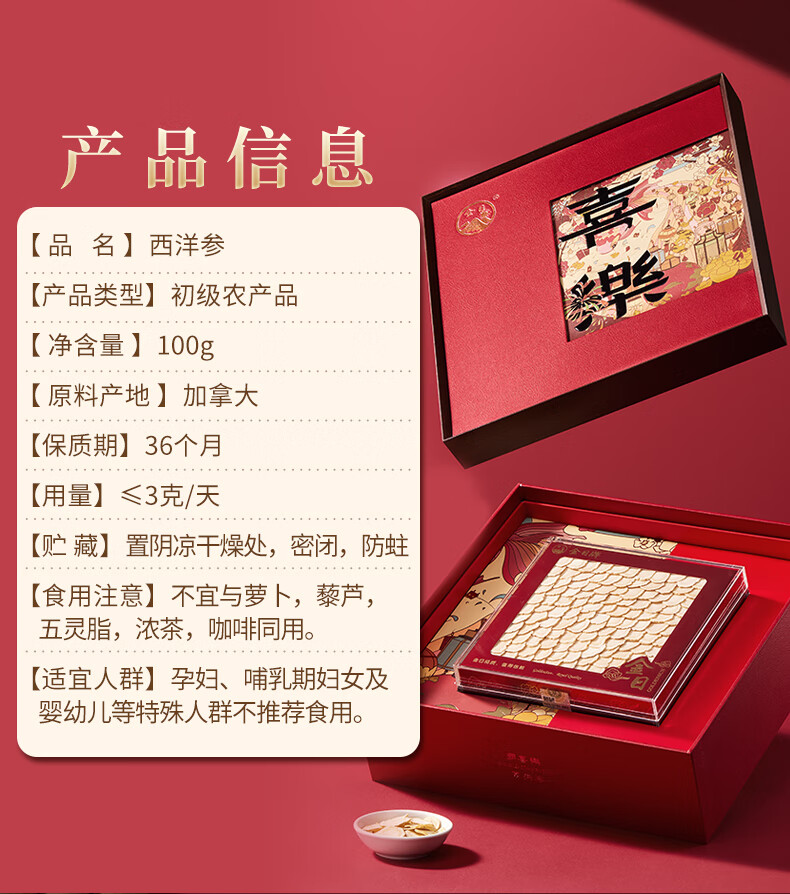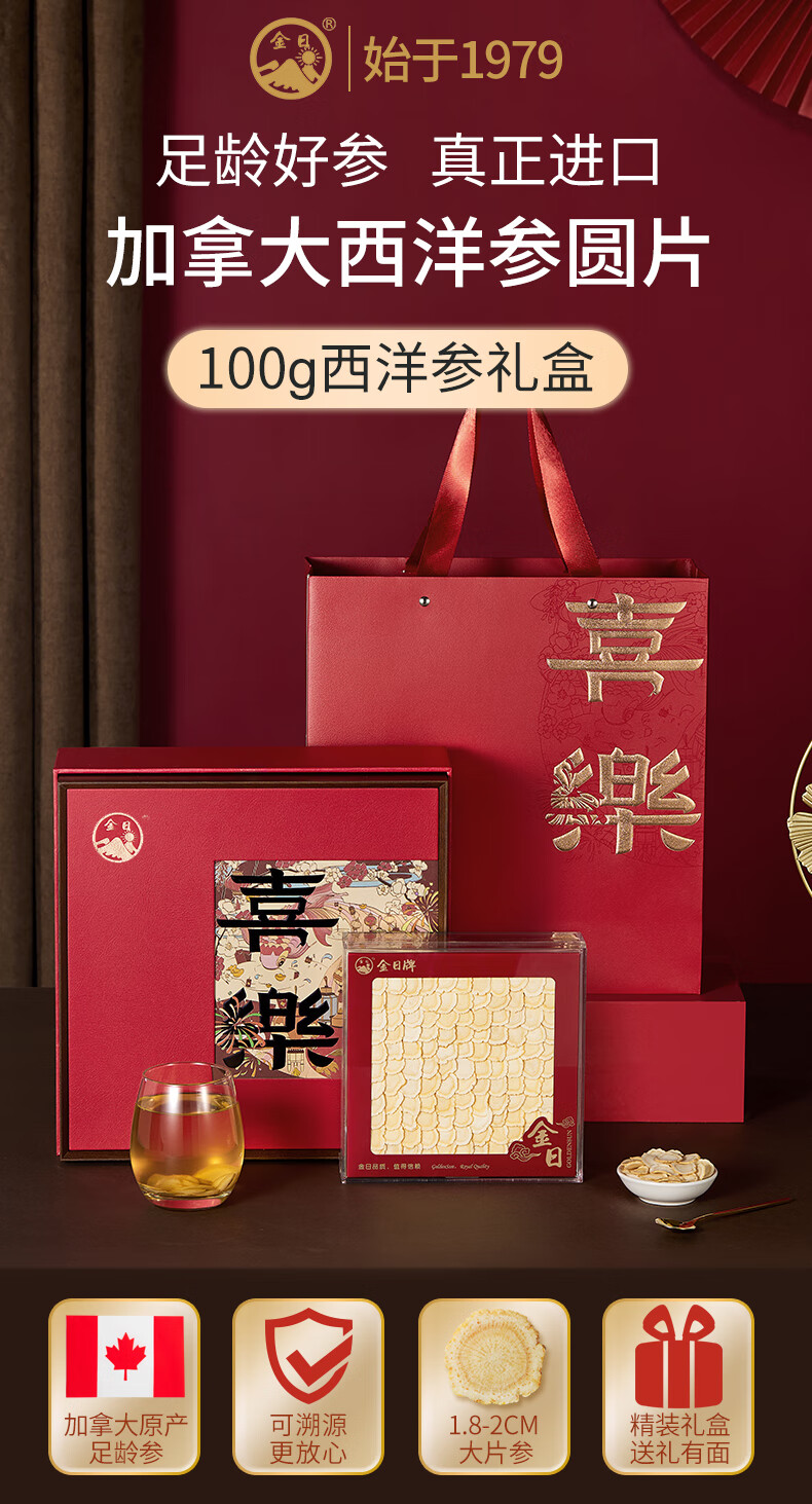 金日西洋参片切片100g营养补品加拿大进口原料送礼礼品礼盒 礼盒装