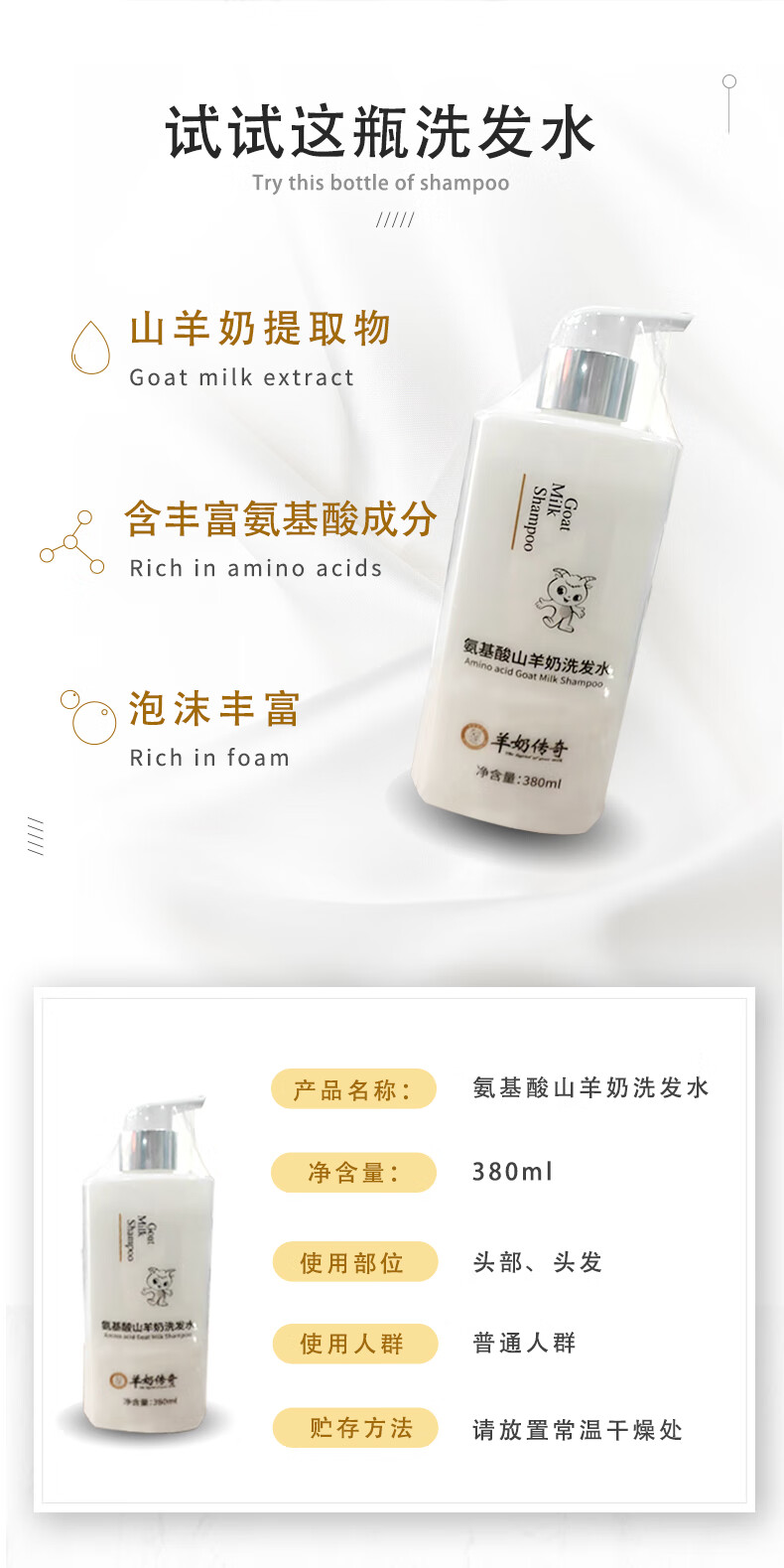 圣唐乳业羊奶传奇氨基酸山羊奶洗发水380ml工厂直发 羊奶洗发水380ml*1瓶