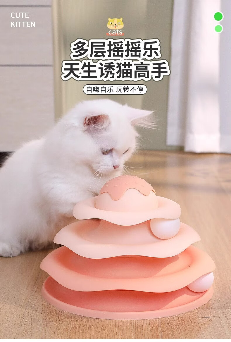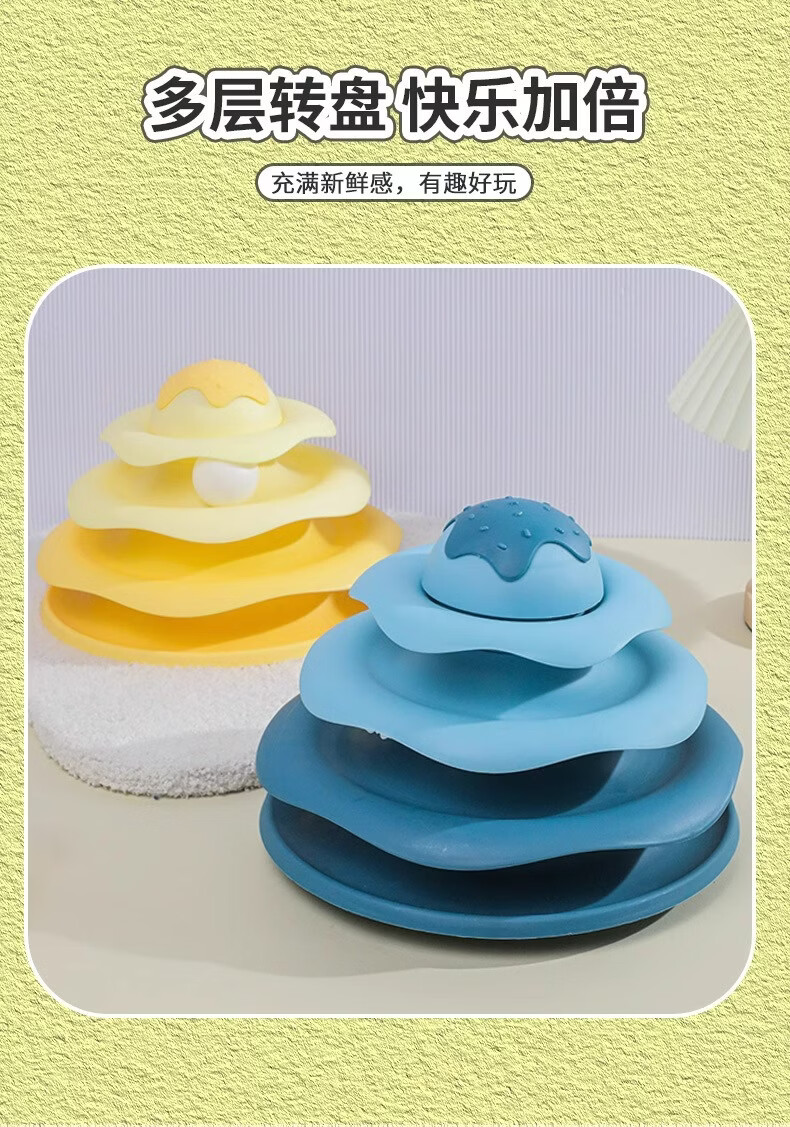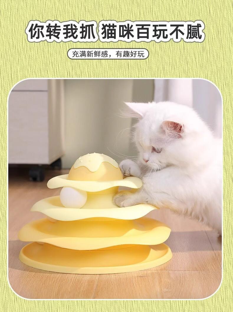 温诗欧猫咪自嗨转盘逗猫棒解闷神器 【三层小球三倍快乐】柠檬黄