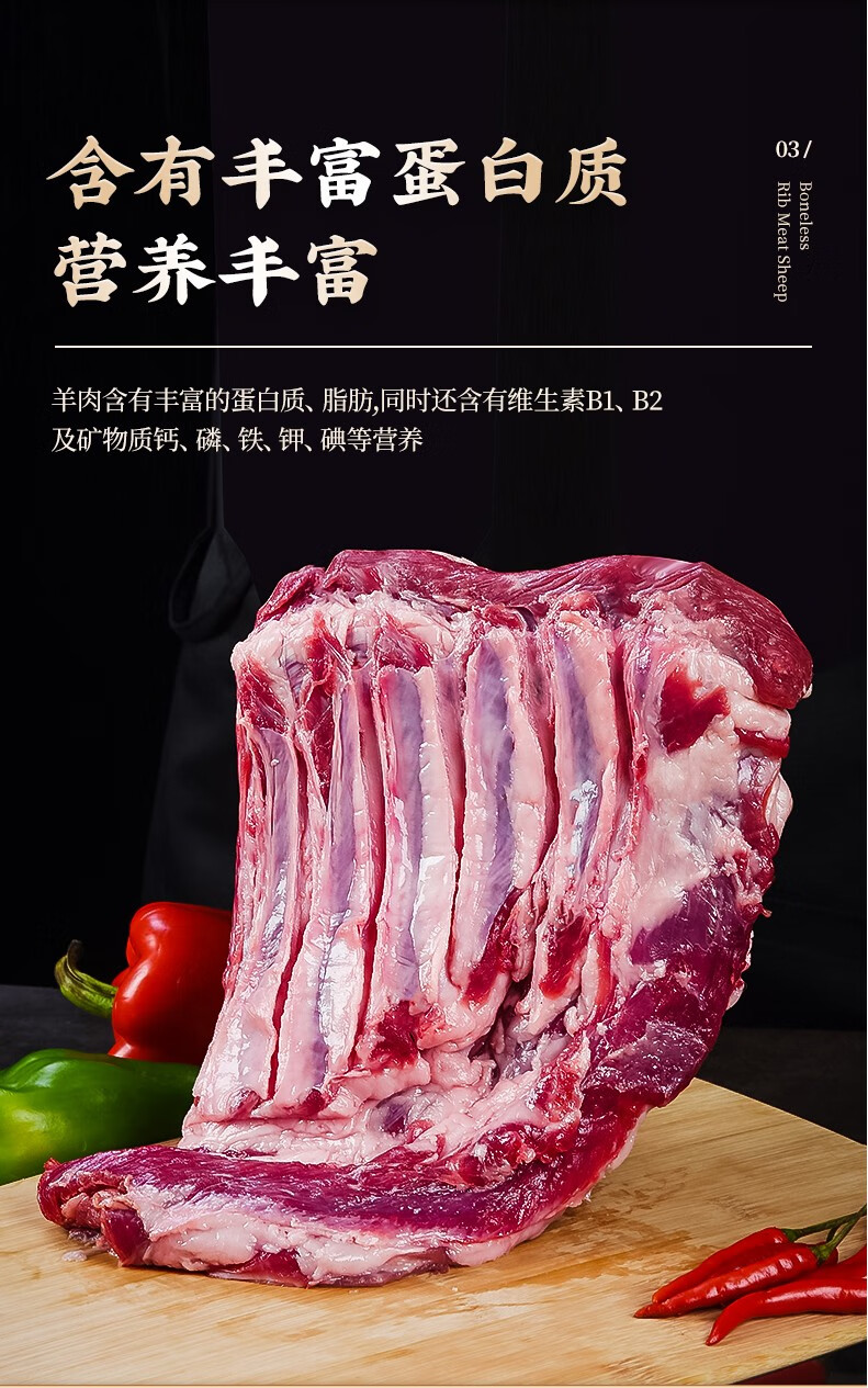 伊舜散养新鲜现宰白山羊剔骨羊肉羊肋排羊排骨羊肋条肉生鲜烧烤食材 剔骨羊肋条肉1000克