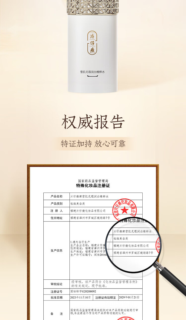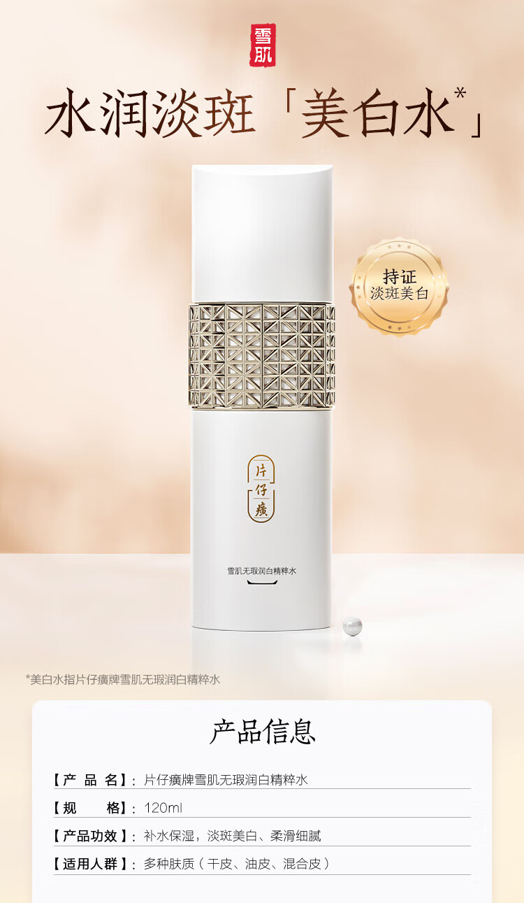 片仔癀雪肌无暇润白精萃水提亮美白祛斑补水保湿烟酰胺淡斑柔肤水120ml 雪肌无暇润白精粹水