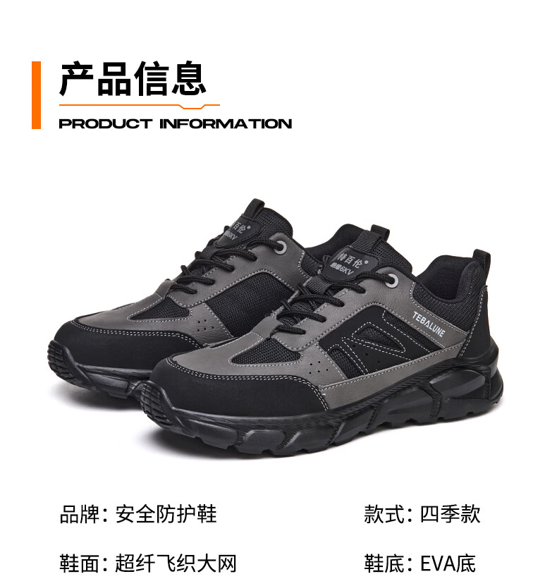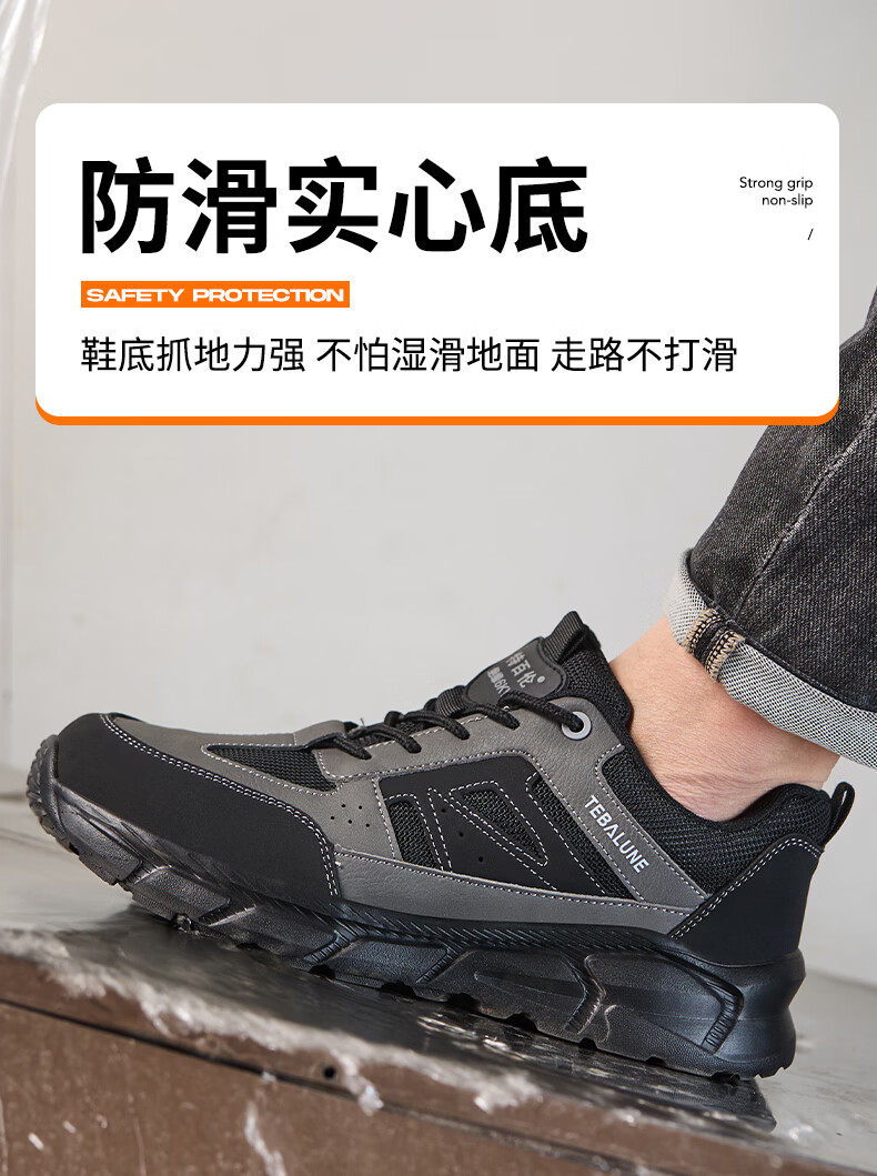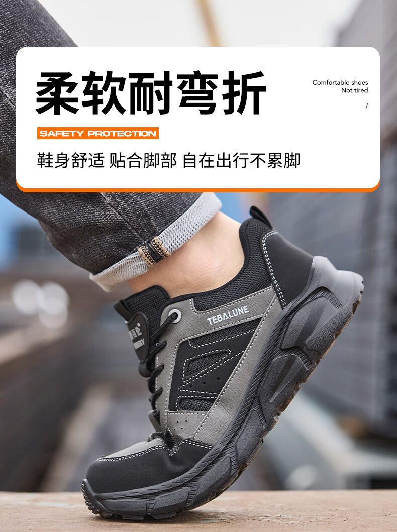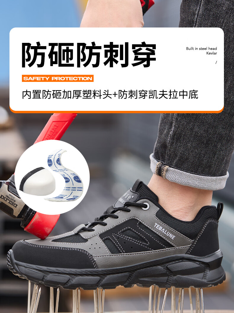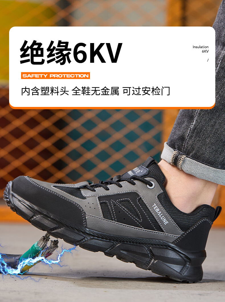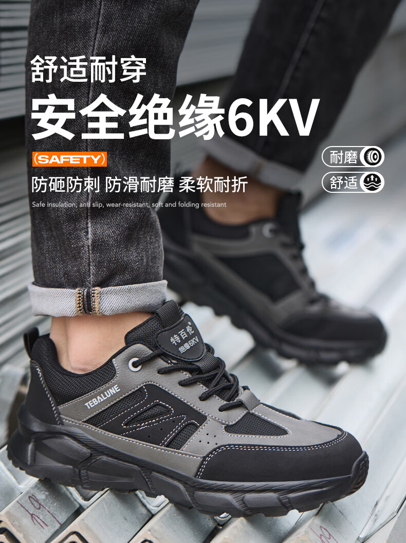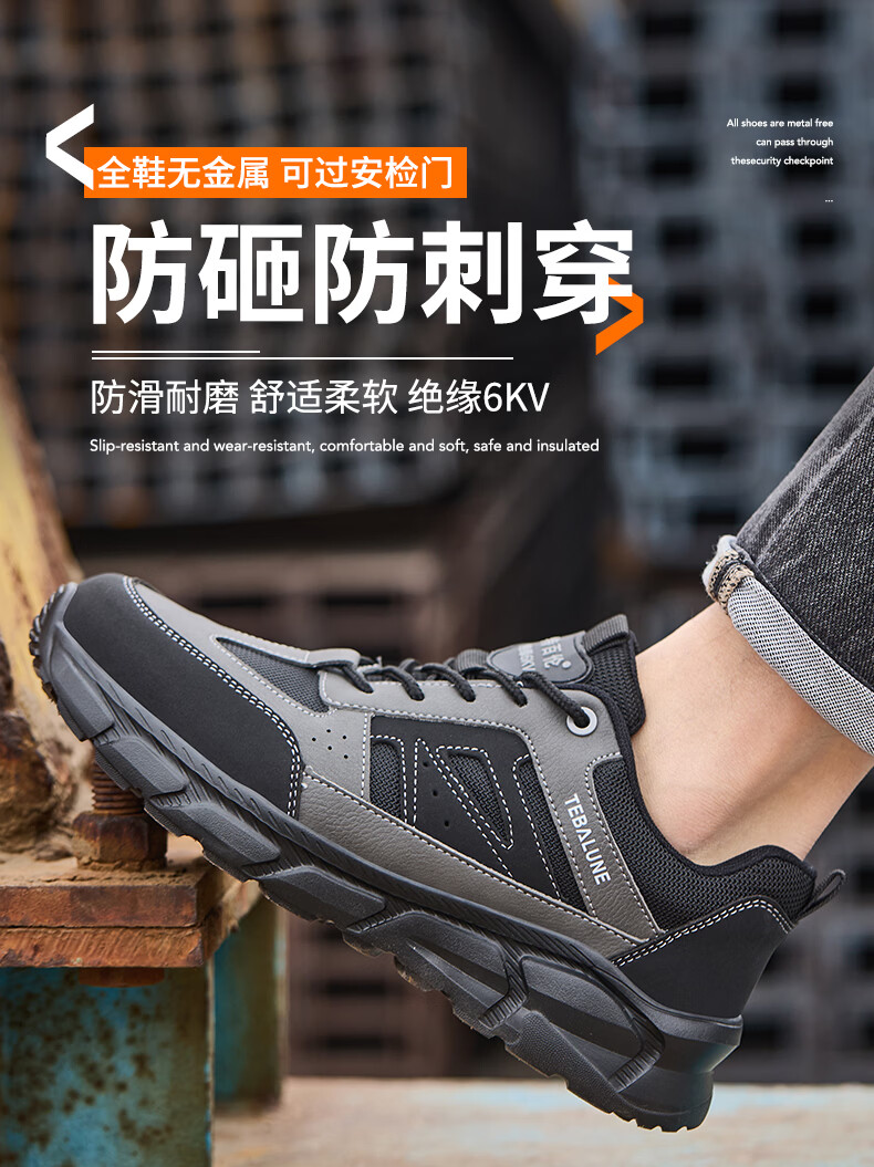 特百伦春秋2026新款劳保男士防砸防刺轻便透气安全鞋工地工作鞋软底舒适 升级黑-绝缘10kv-防砸防刺 42 【新国标-轻软耐磨】