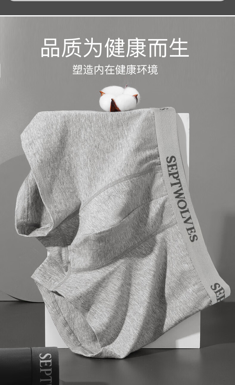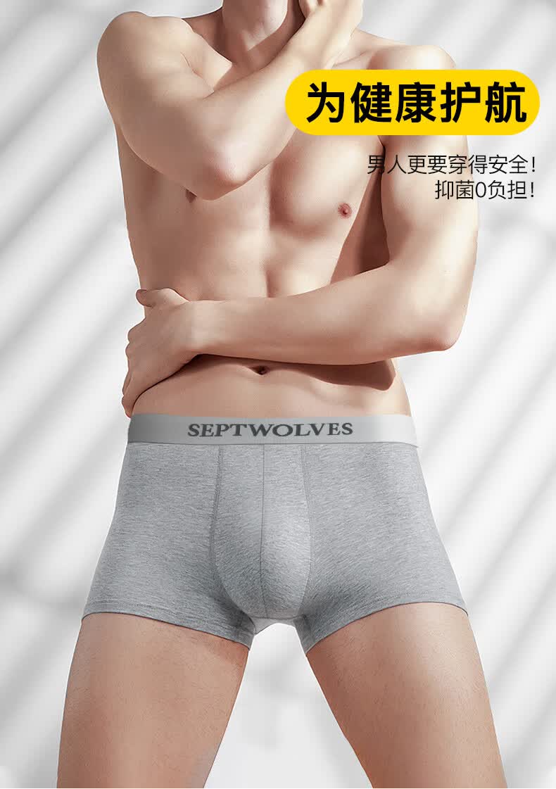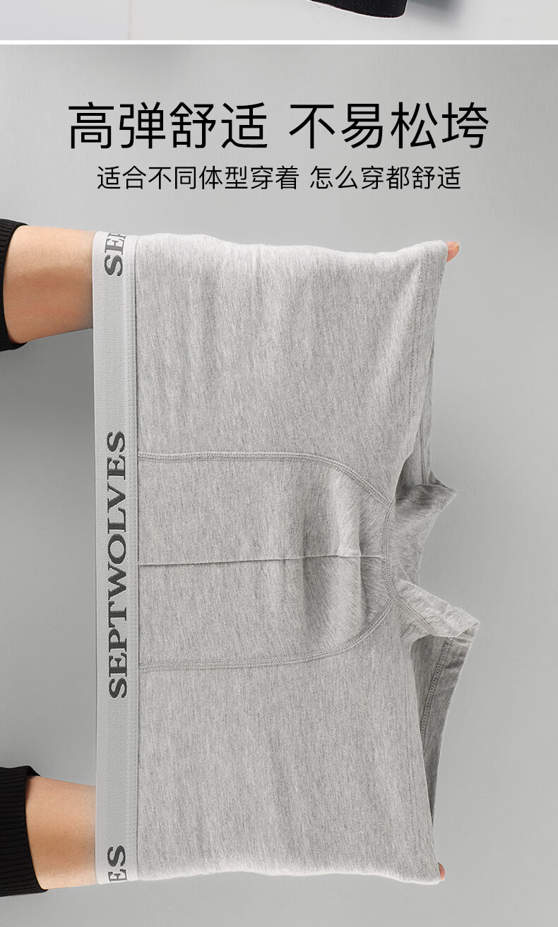 七匹狼内裤男士纯棉7A抗菌平角裤透气中腰防卷边高弹大码肥佬四角裤头