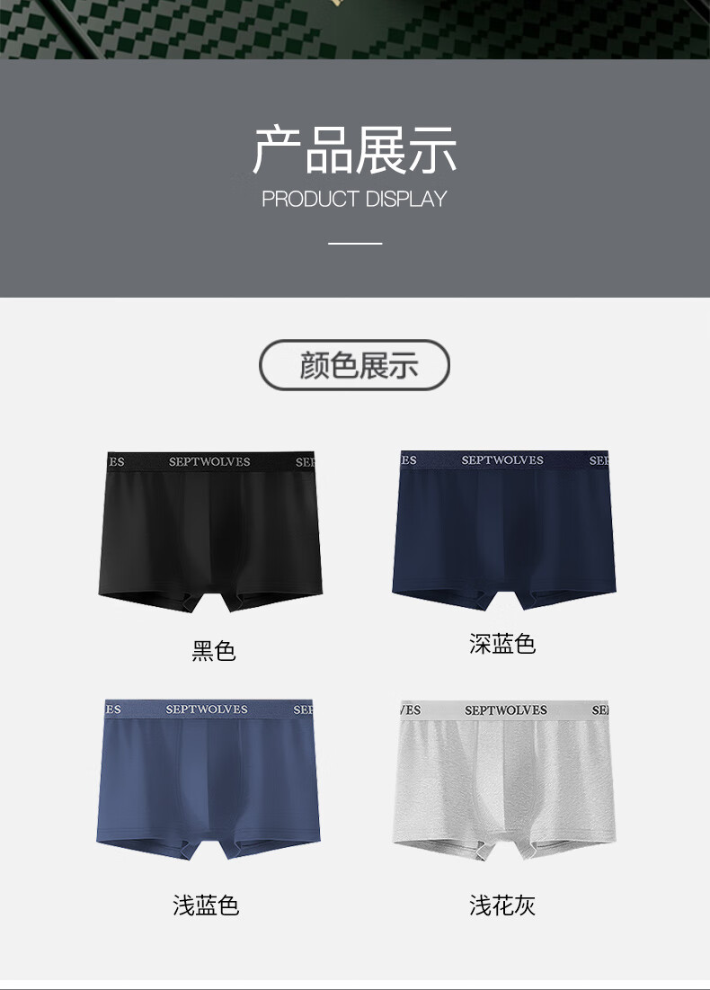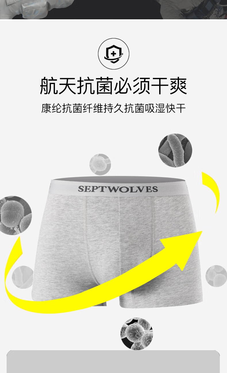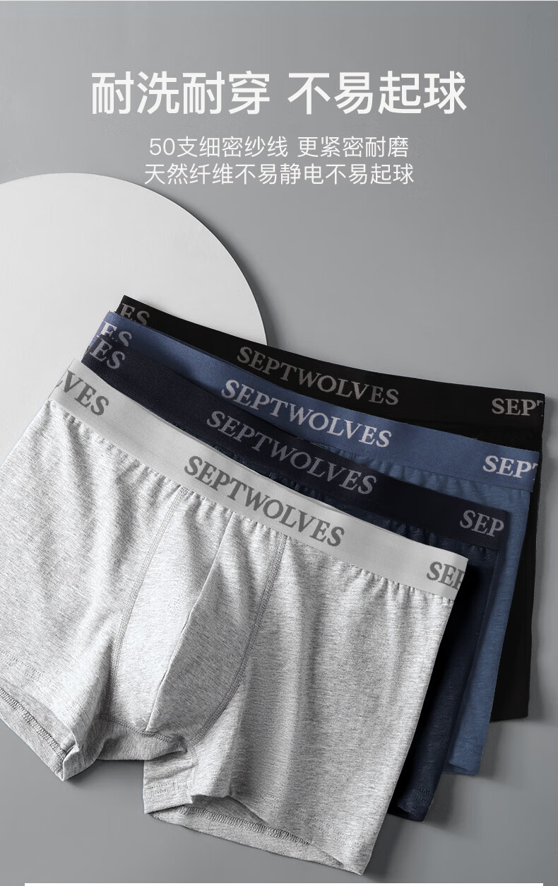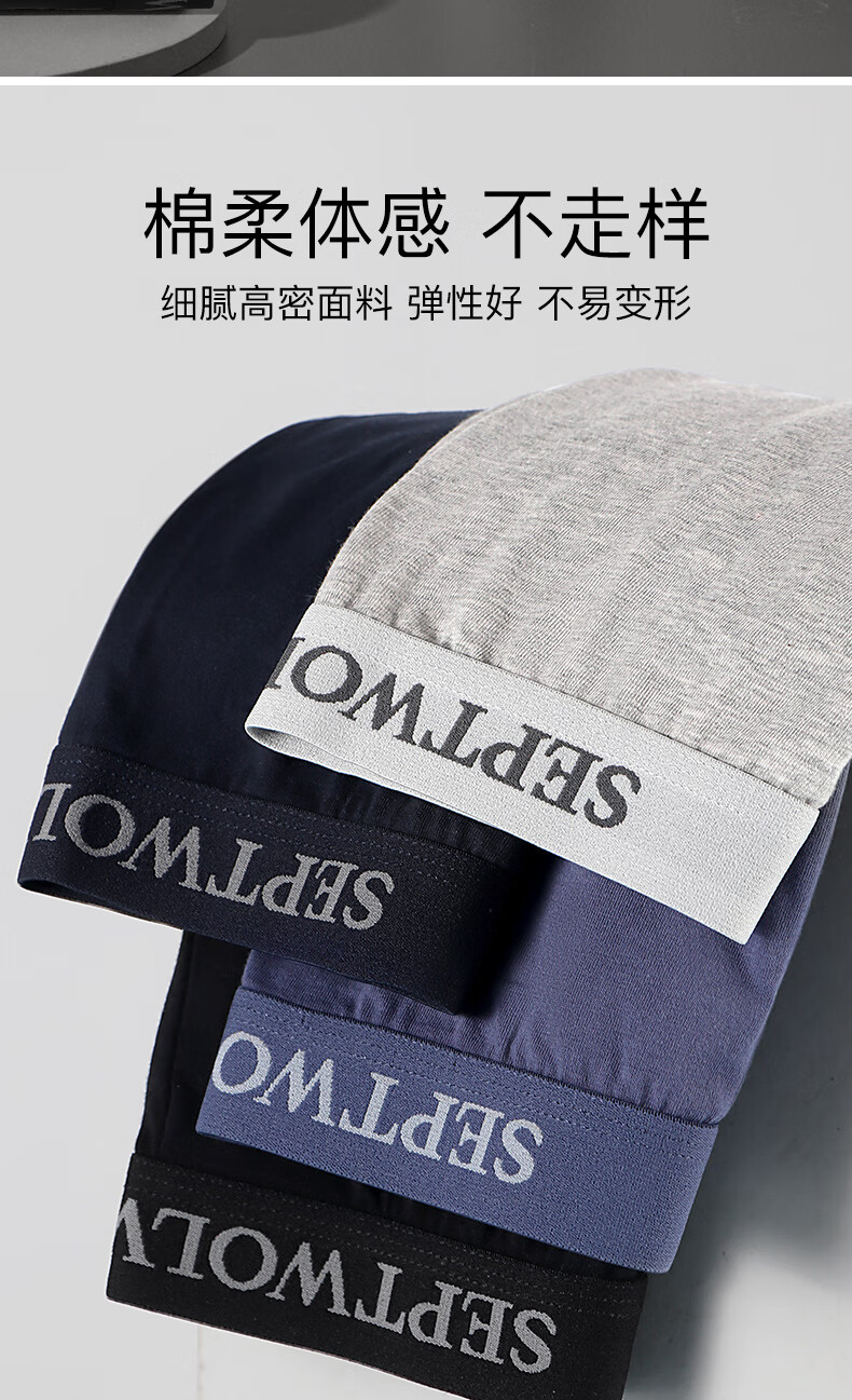 七匹狼内裤男士纯棉7A抗菌平角裤透气中腰防卷边高弹大码肥佬四角裤头