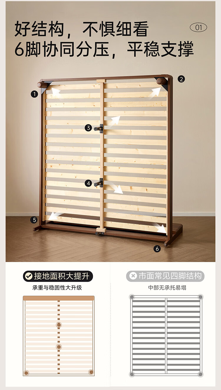 全友家居原木风高脚储物双人床2026新款小户型卧室排骨架床和床垫组合 【黑胡桃木风】 1.5米x2米 单床+床垫