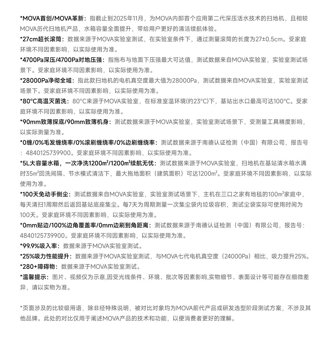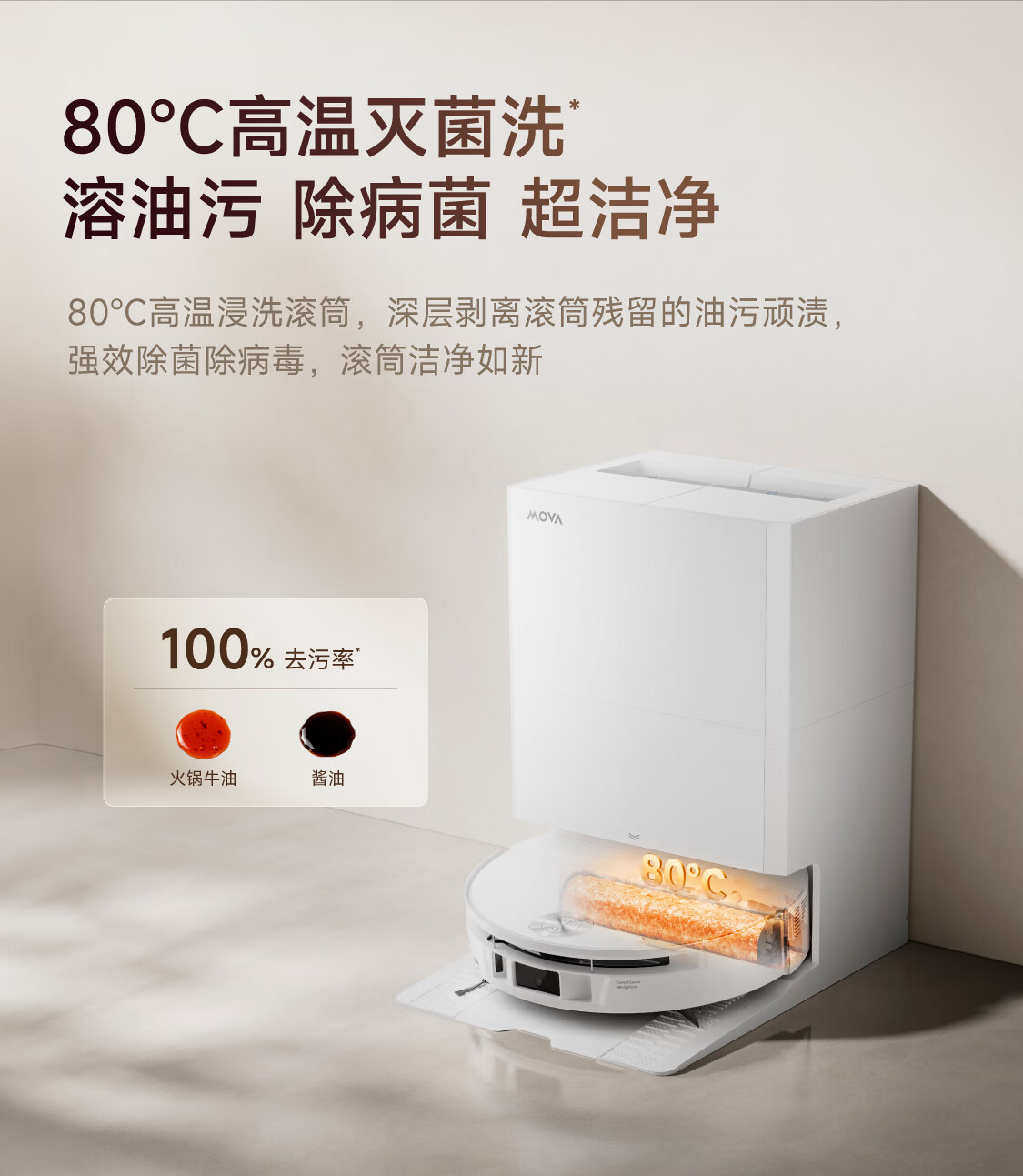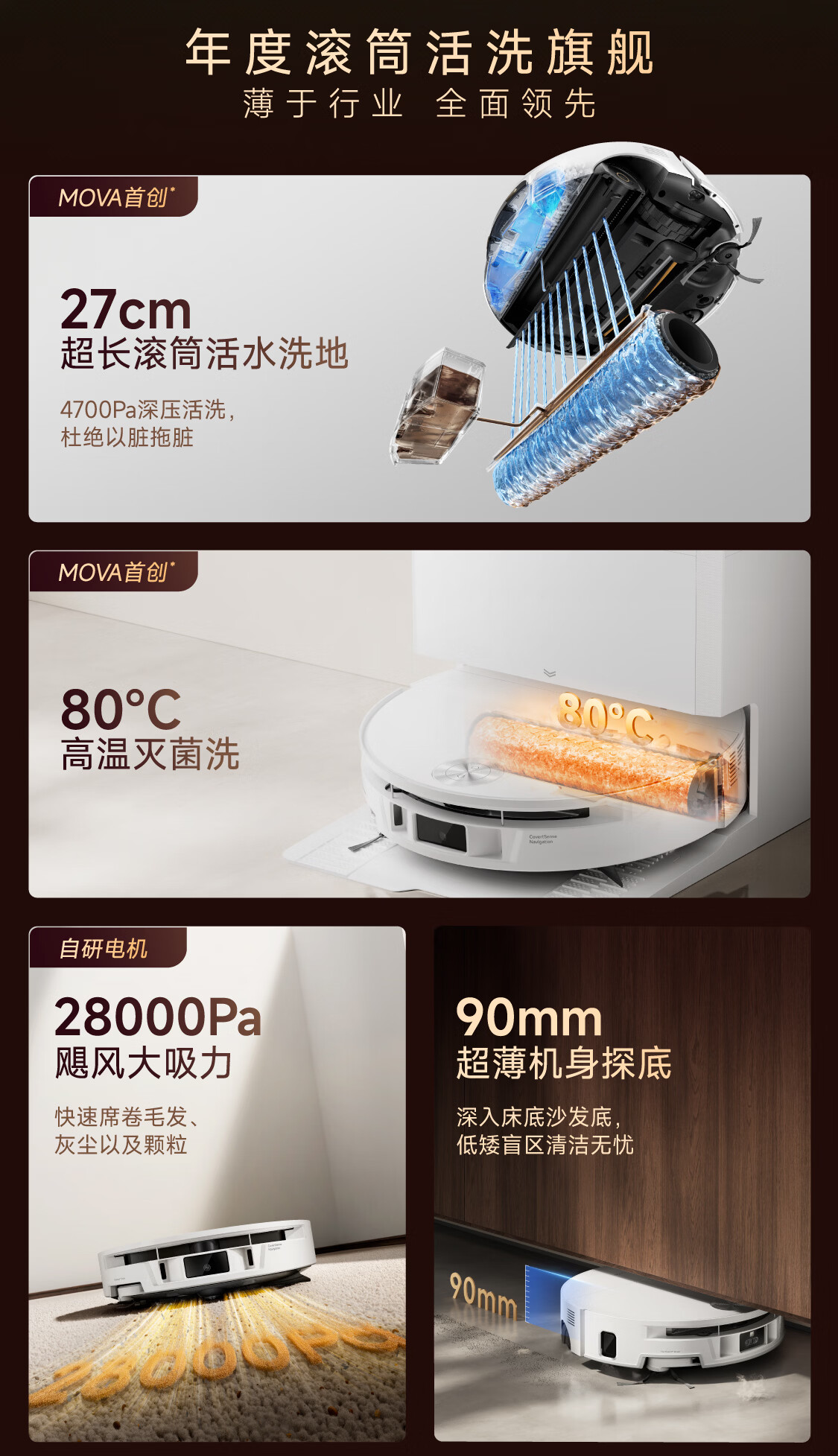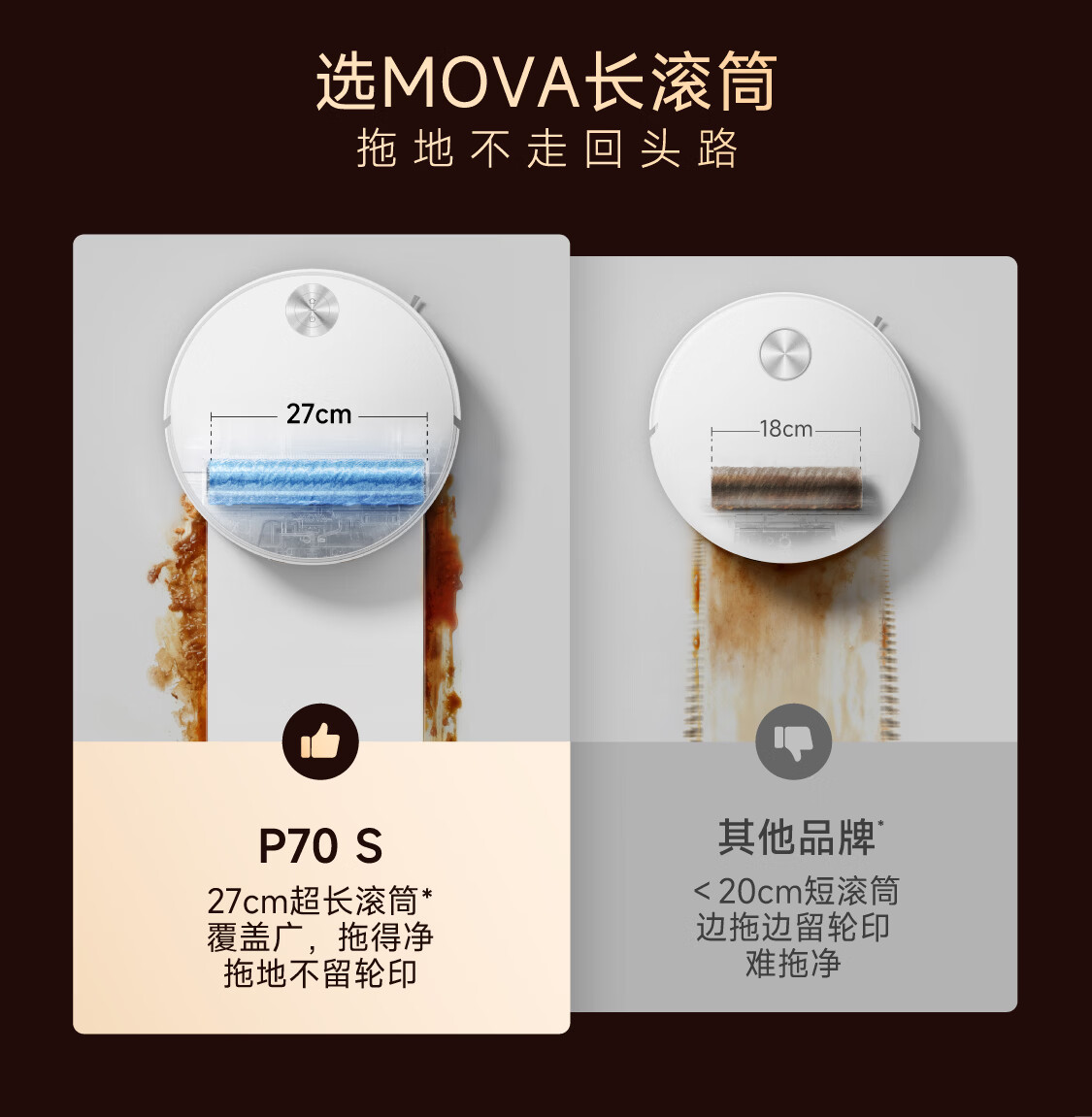 MovaP70S活水滚筒扫地机器人扫拖洗烘一体自清洁洗地机器人热水洗拖布水箱版P70S【宋威龙同款】