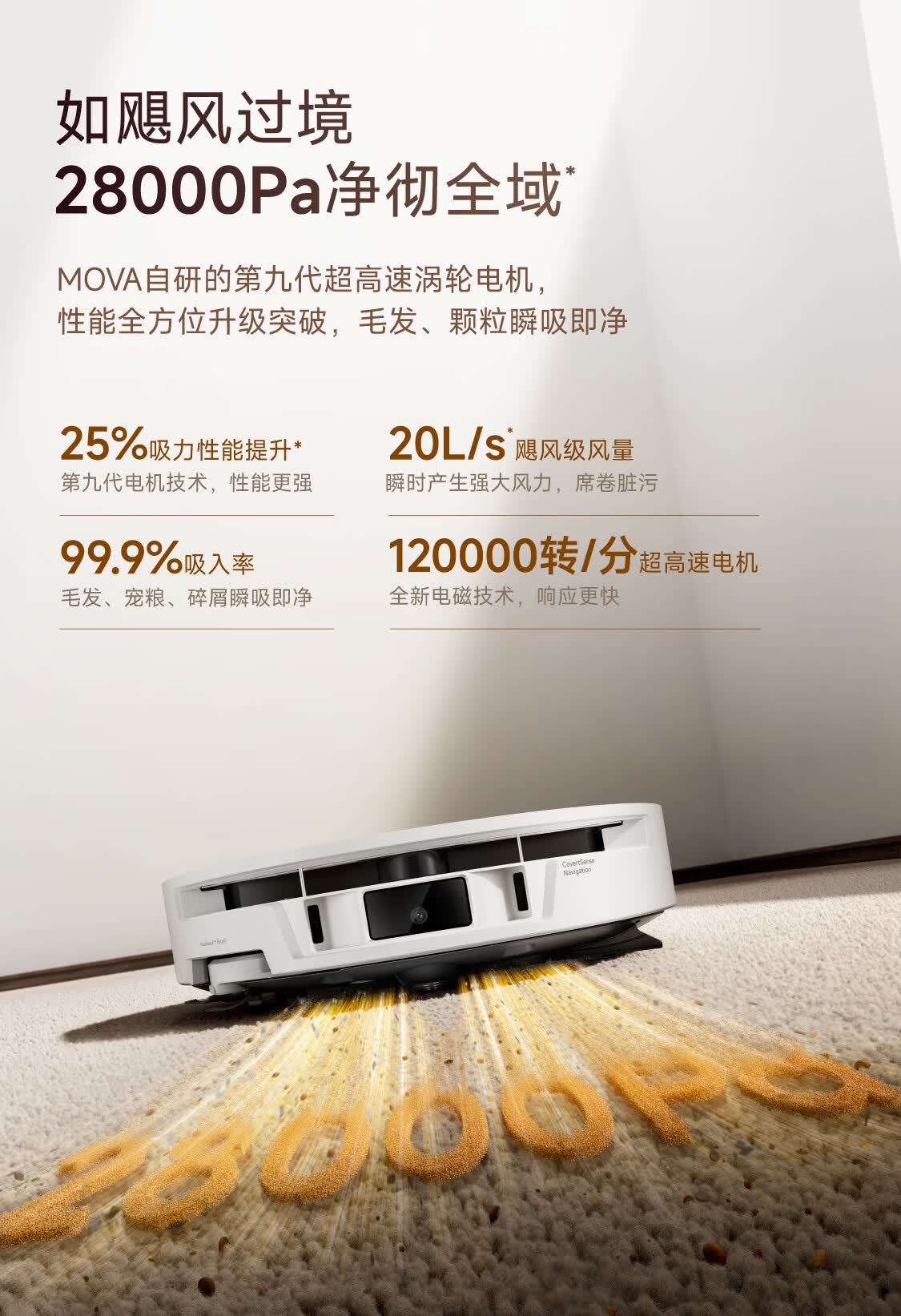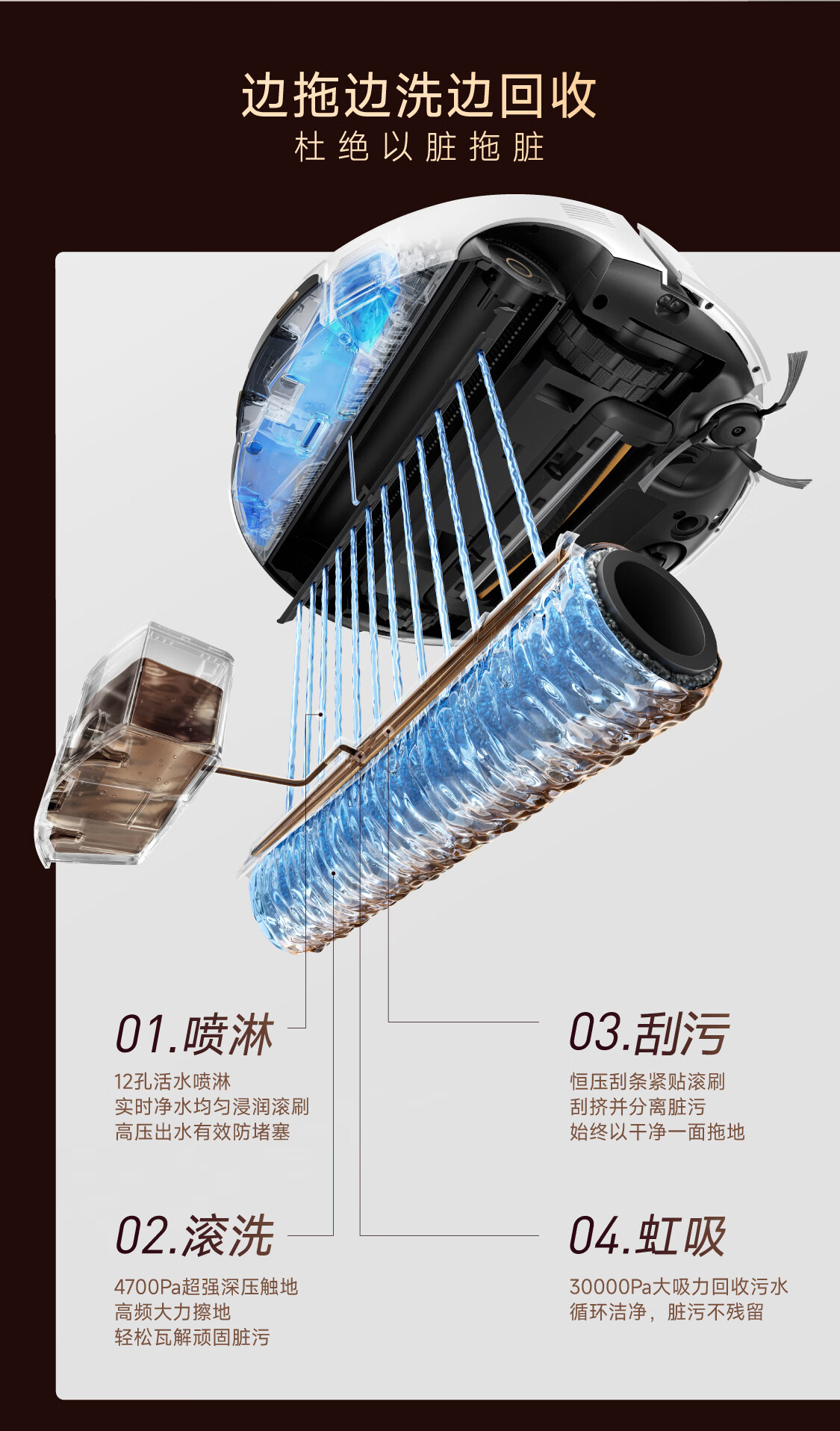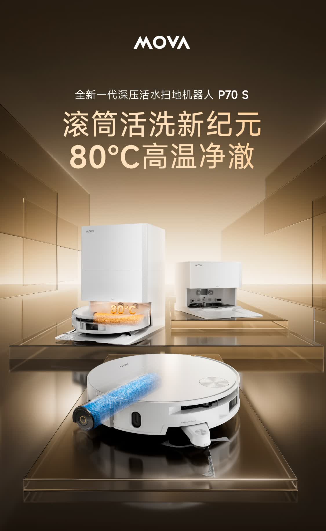 MovaP70S活水滚筒扫地机器人扫拖洗烘一体自清洁洗地机器人热水洗拖布水箱版P70S【宋威龙同款】