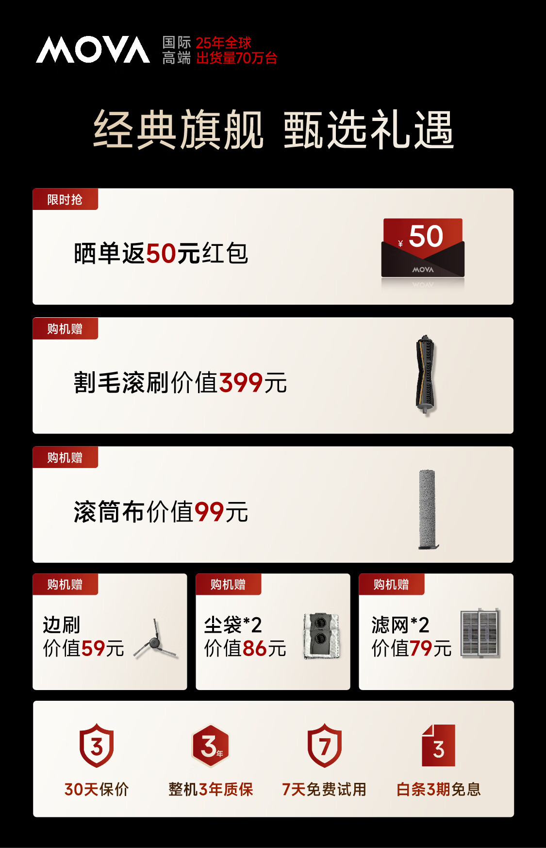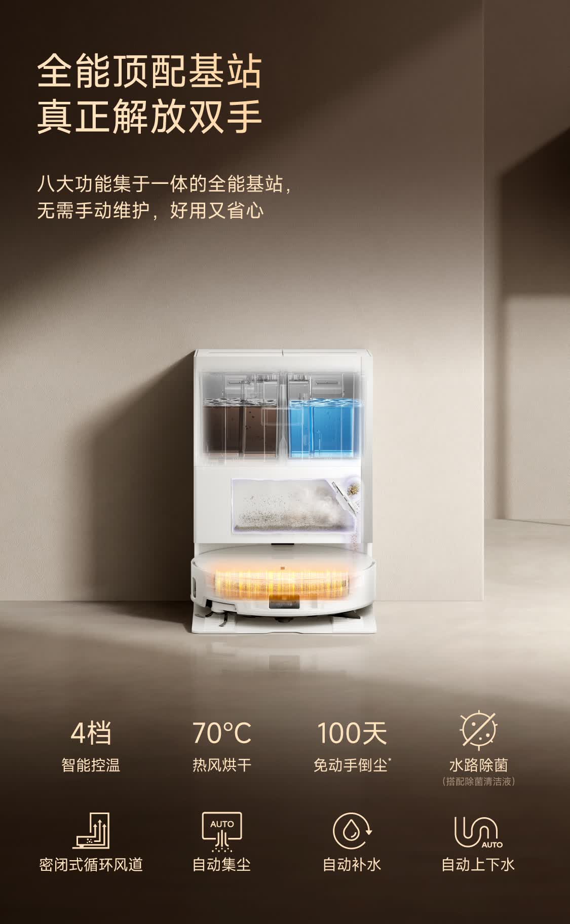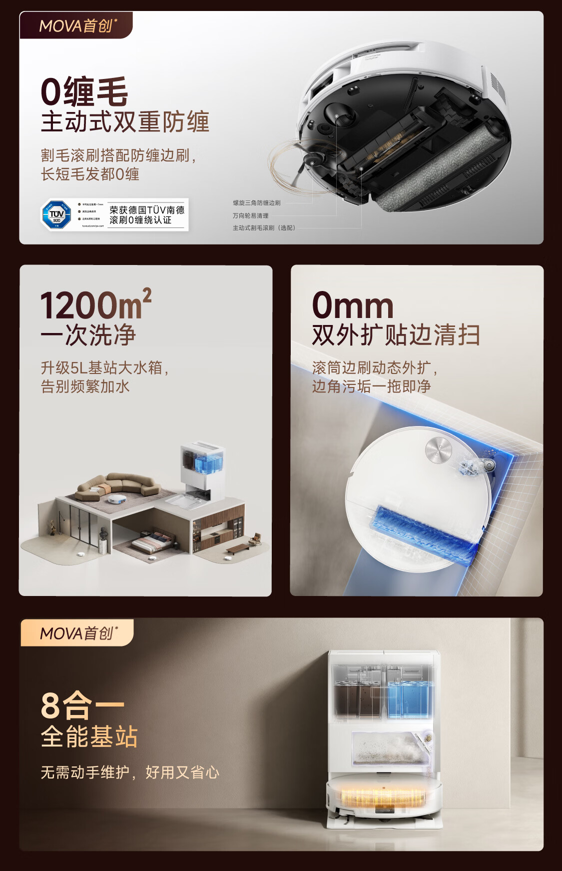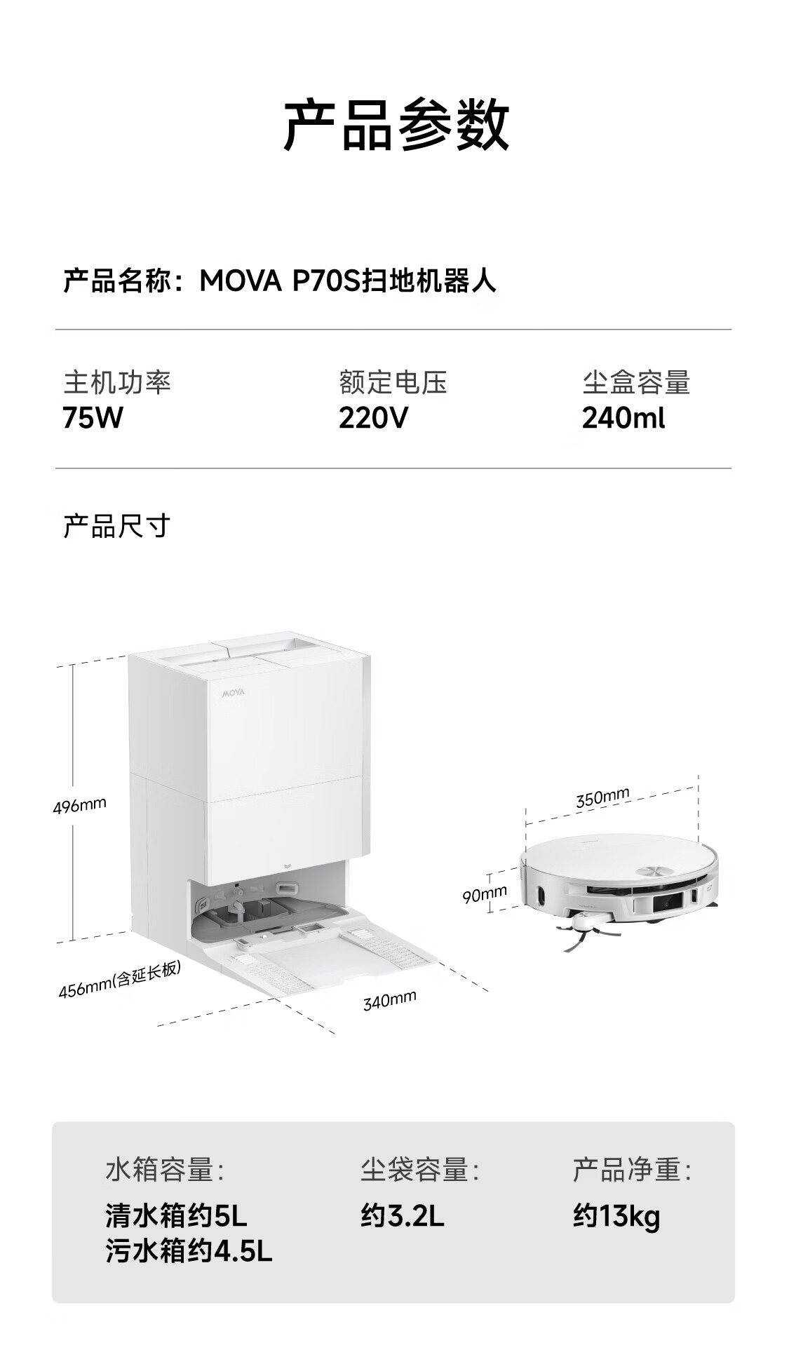 MovaP70S活水滚筒扫地机器人扫拖洗烘一体自清洁洗地机器人热水洗拖布水箱版P70S【宋威龙同款】